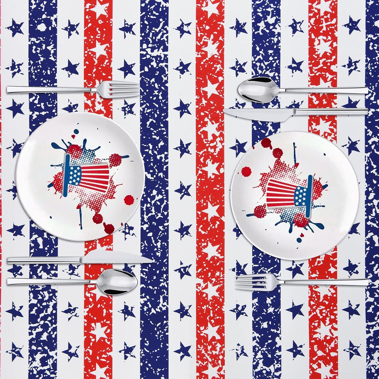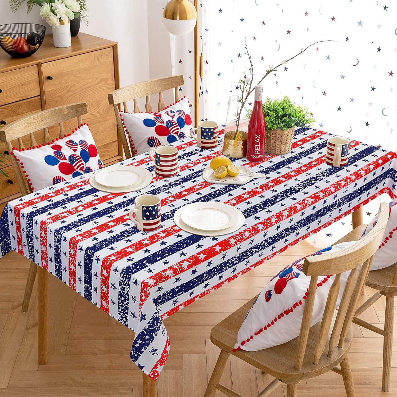 4th of July Tablecloth, Stars and Stripes Table Cloth, Patriotic American Celebration Table Cover for Outdoor Party Holiday Dining Room Kitchen Decoration, Red and Blue, Rectangular 60 x 120 inch