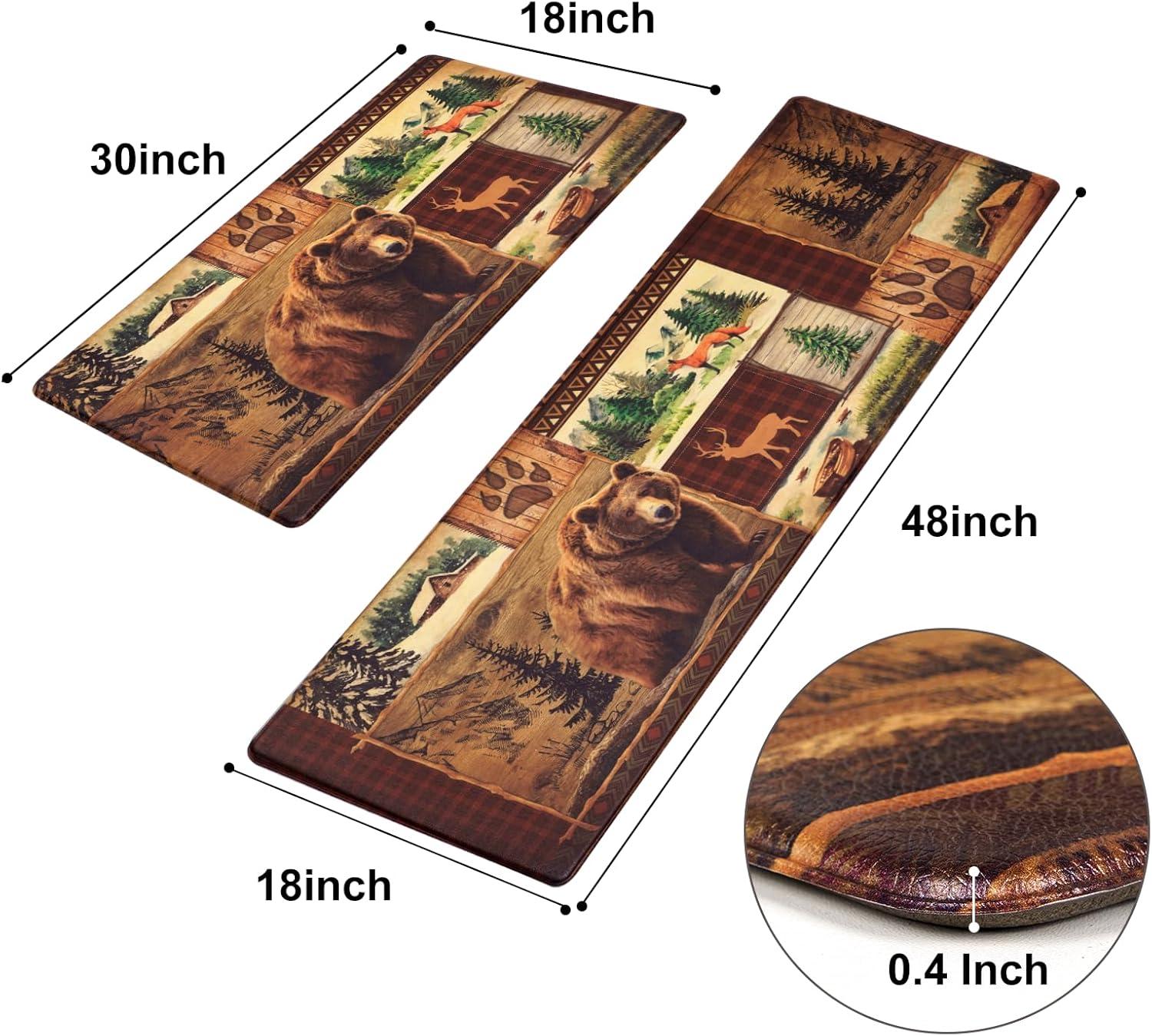 ASPMIZ 2 Pieces Farmhouse Kitchen Rugs Non Slip, Rustic Lodge Bear Moose Deer Kitchen Mats Cushioned Anti Fatigue Brown, Washable Kitchen Floor Mats for in Front of Sink, 18” x 48” + 18” x 30”(18” x 30” + 18” x 48”)