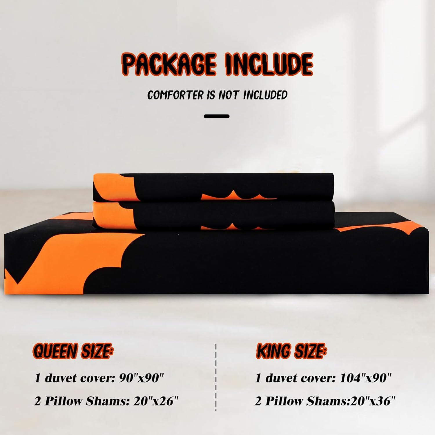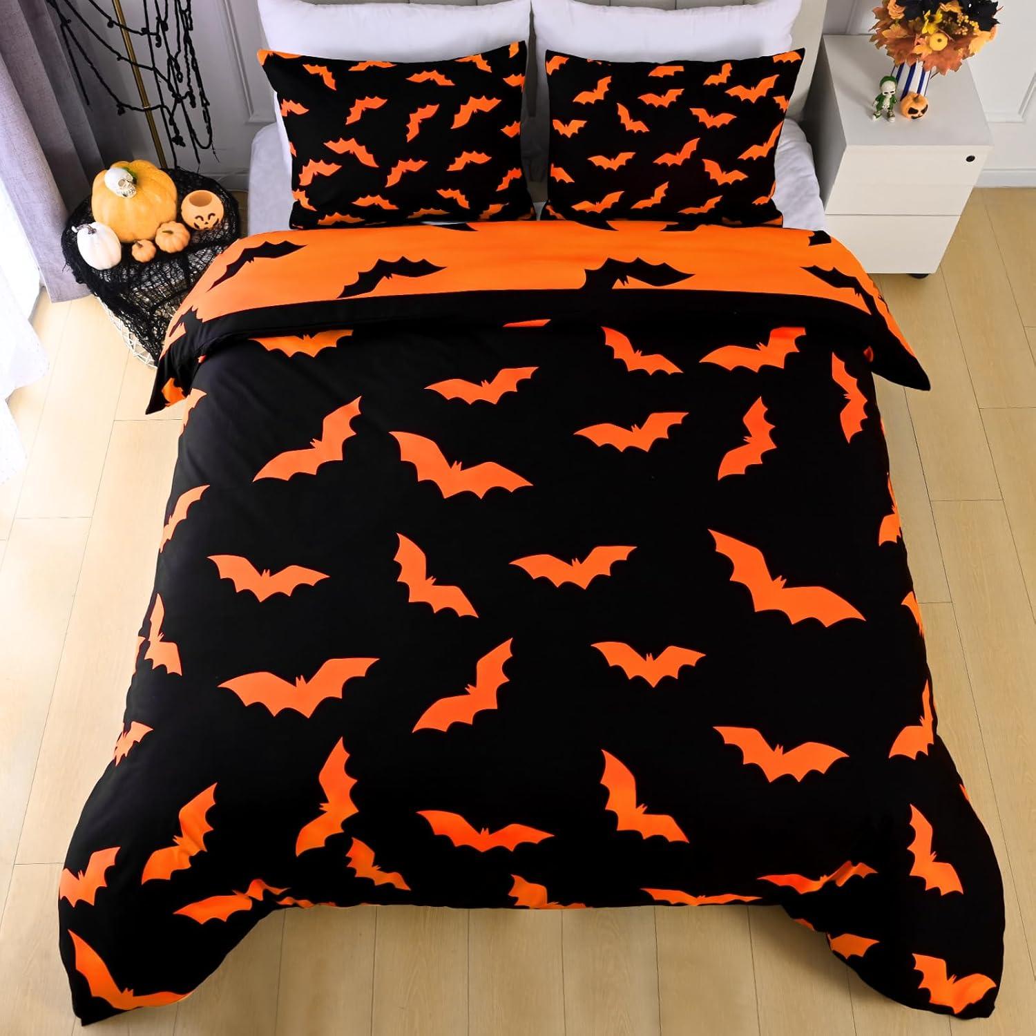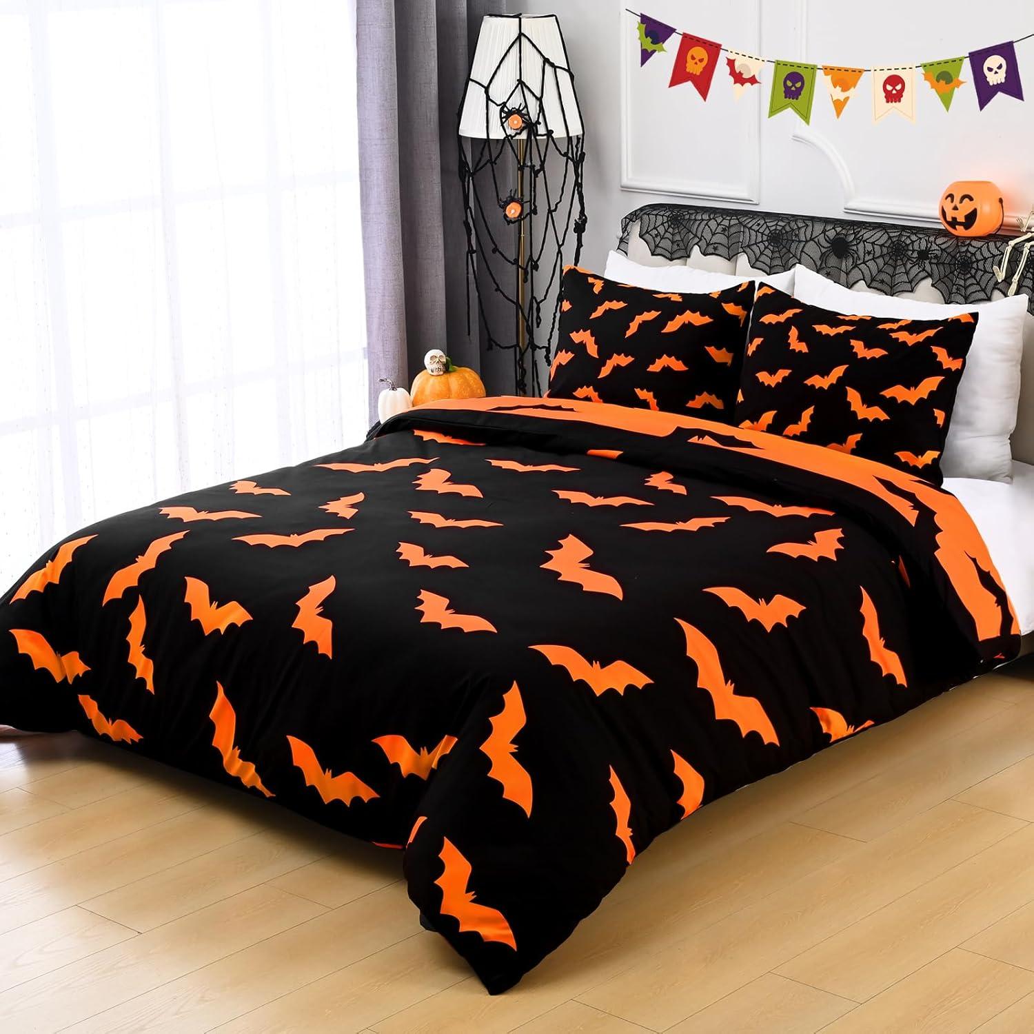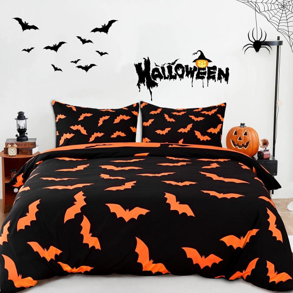 Halloween Decoration: This Halloween Duvet cover set is designed with orange bats, which can easily capture the essence of Halloween.