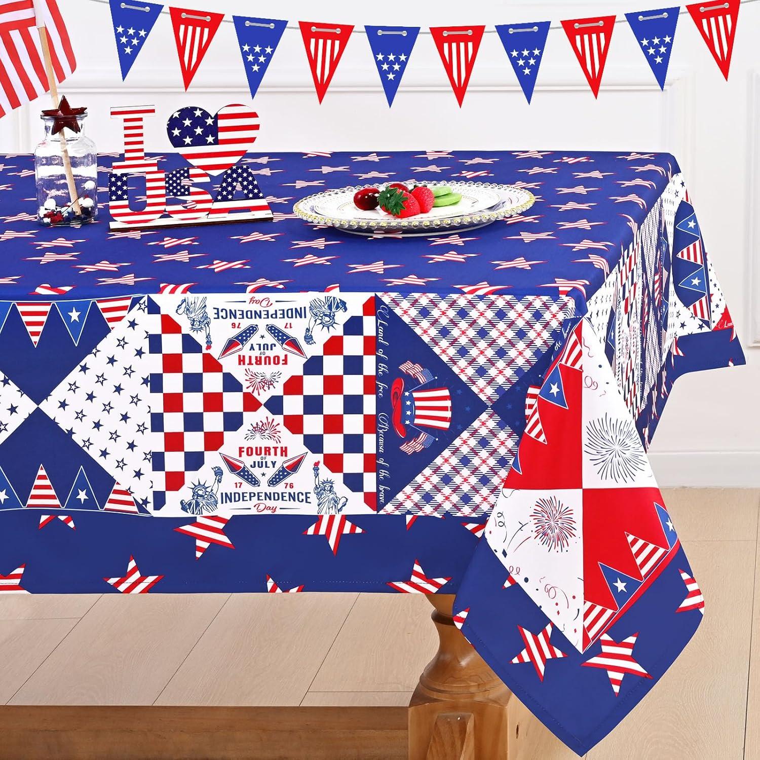 ASPMIZ 4th of July Tablecloth Square 55x55 Inch,Independence Day Table Cloth, Memorial Patriotic Tablecloths Waterproof Spillproof, American Flag Table Cover for Dinner Party Picnic Decoration