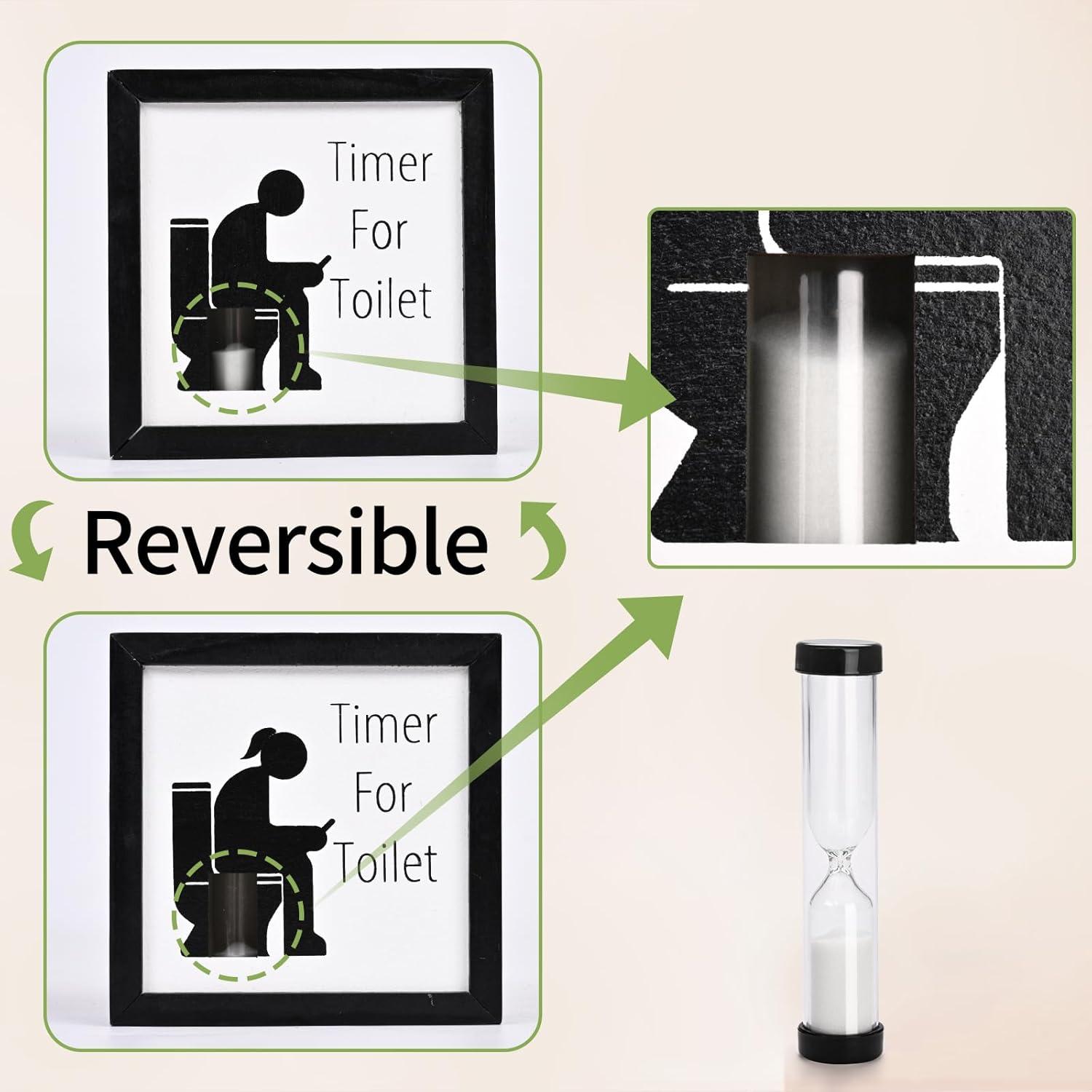 Unique Design: The reversible toilet timer has a man on one side and a woman on the other, usable either way. Its sand runs for approximately 5 minutes (4.5-5.5min). The decorative books sport “Hello Sweet Cheeks” for a fun touch