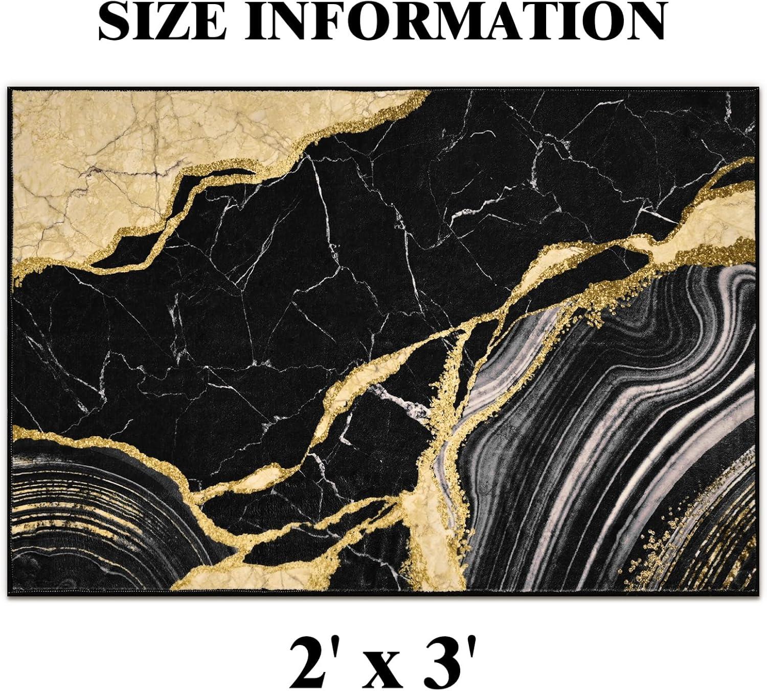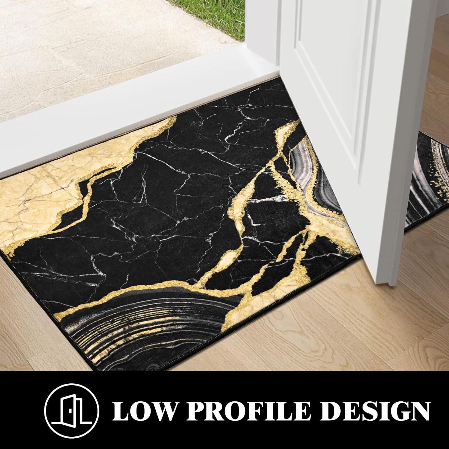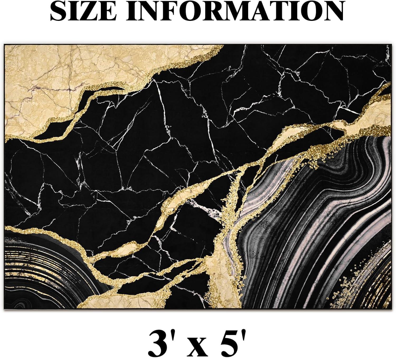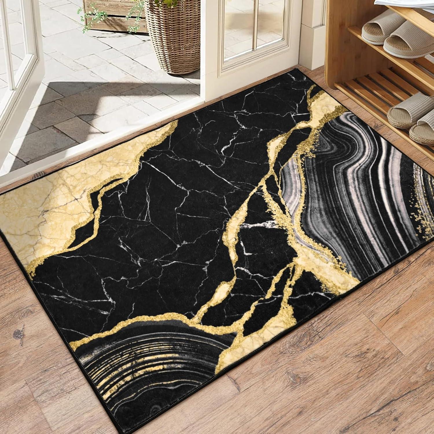 Modern Marble Aesthetic: Small rug has bold black and gold marble pattern adding a touch of contemporary elegance, effortlessly complementing minimalist, industrial, or mid-century decor styles. Its neutral tones hide dirt and lint between cleanings