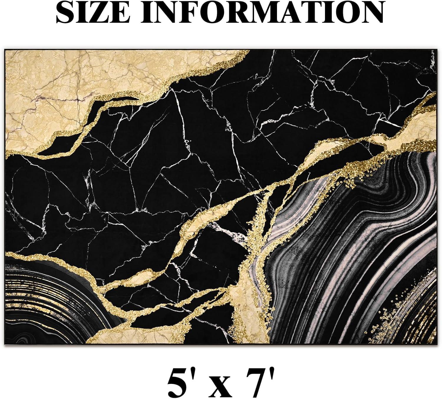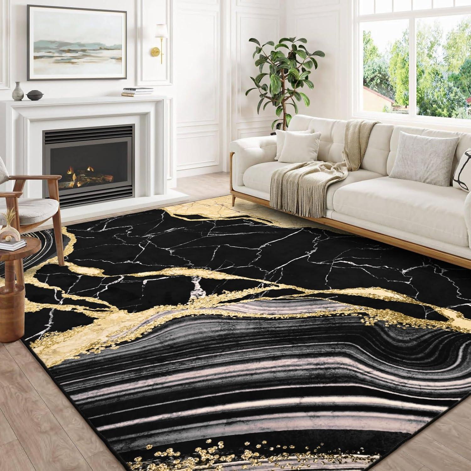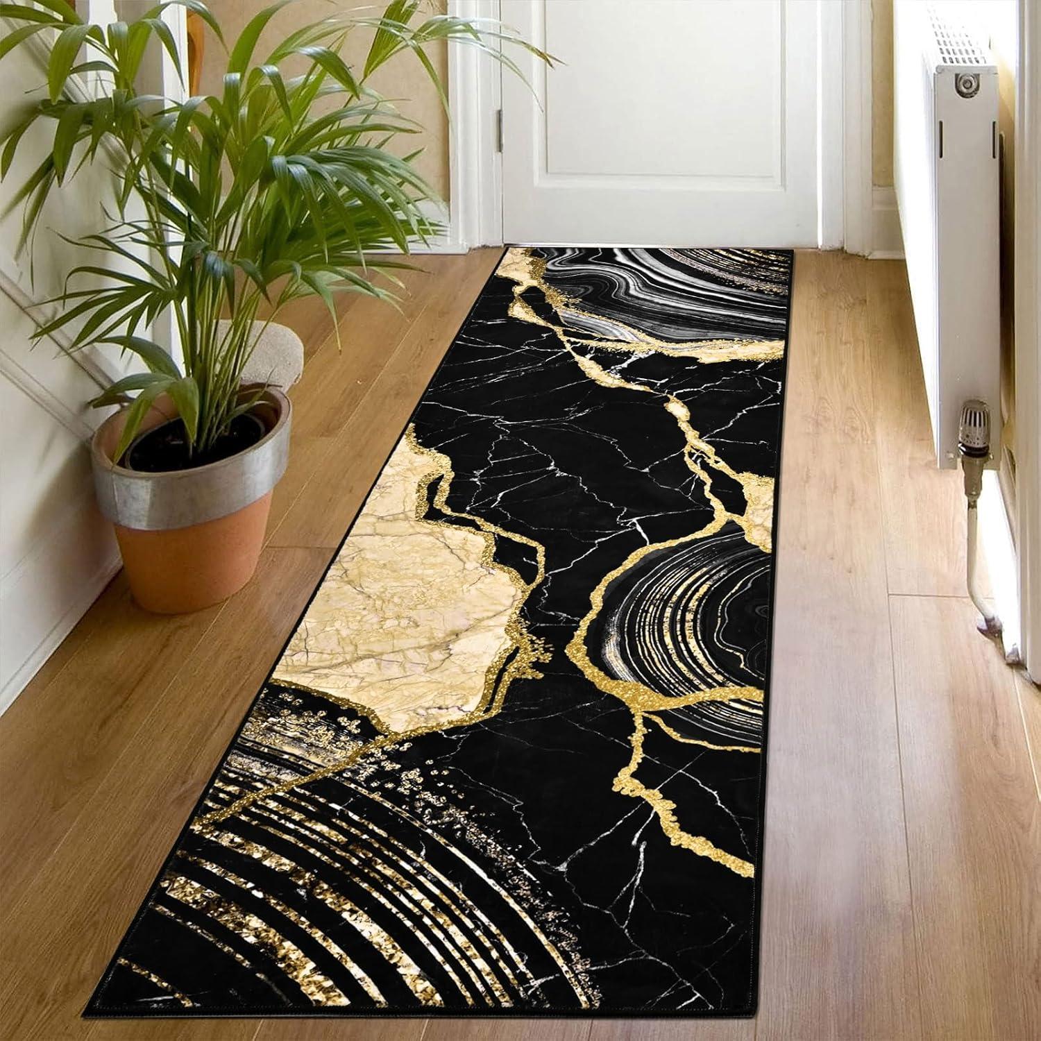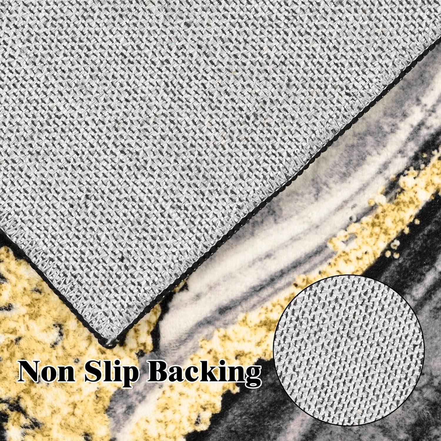 Modern Marble Aesthetic: Small rug has bold black and gold marble pattern adding a touch of contemporary elegance, effortlessly complementing minimalist, industrial, or mid-century decor styles. Its neutral tones hide dirt and lint between cleanings