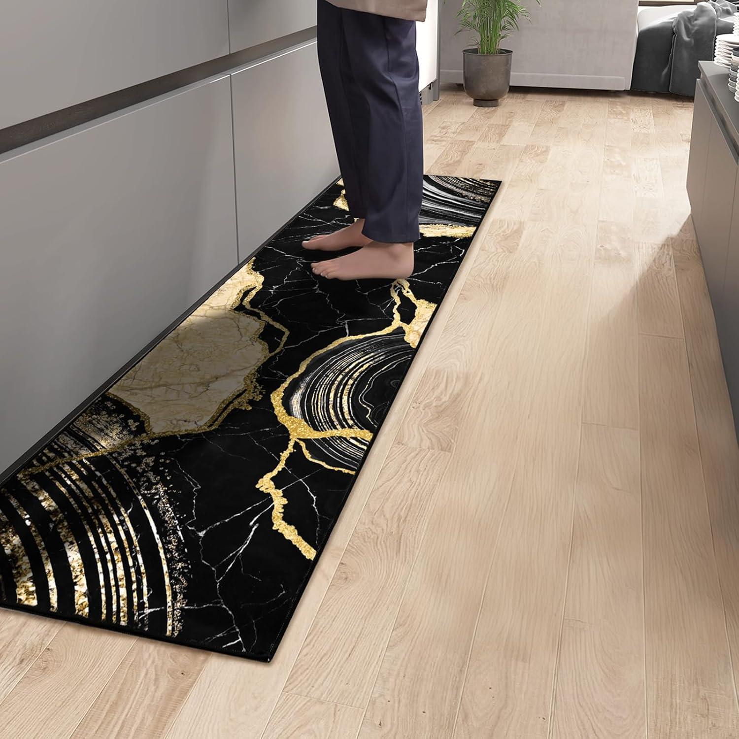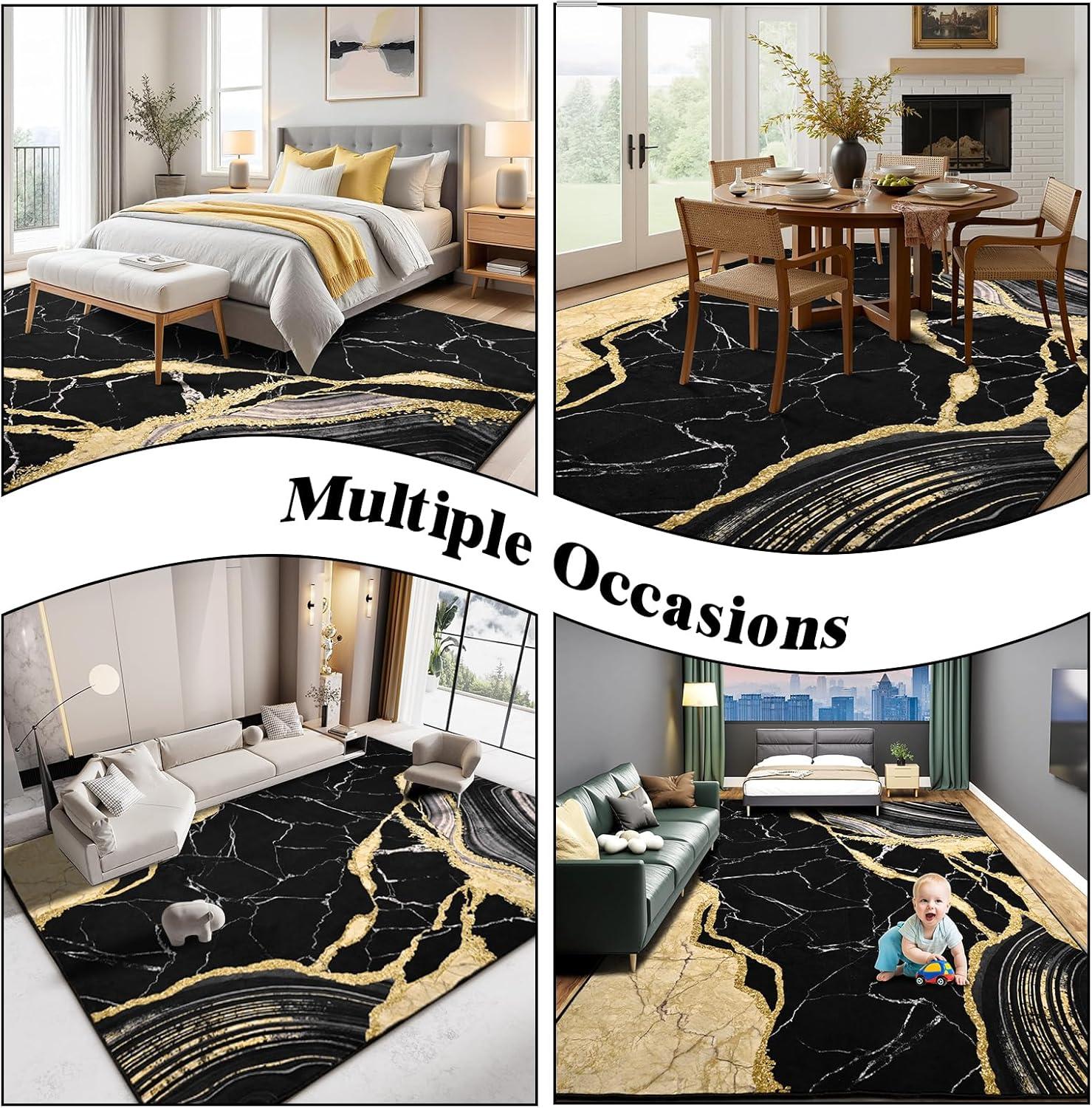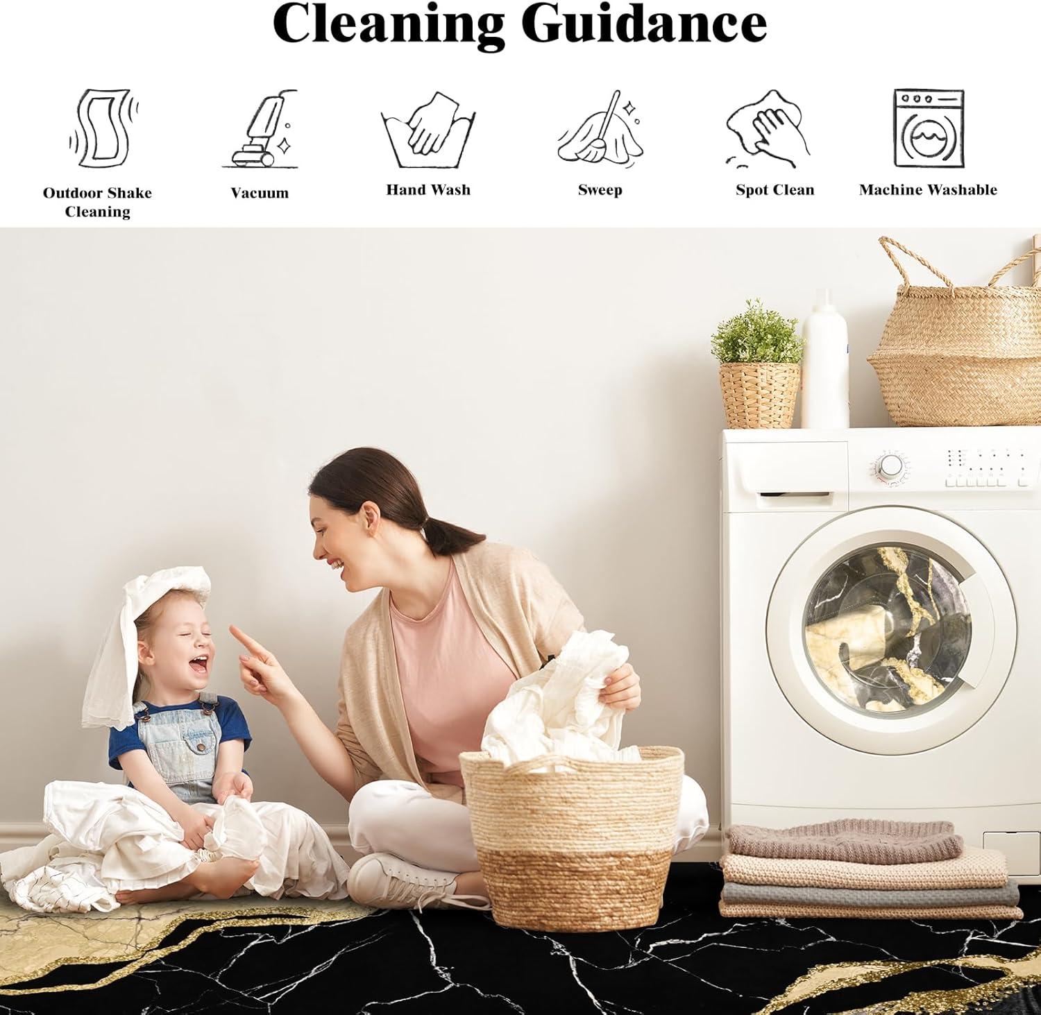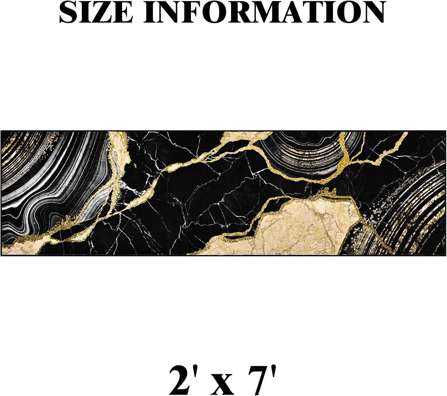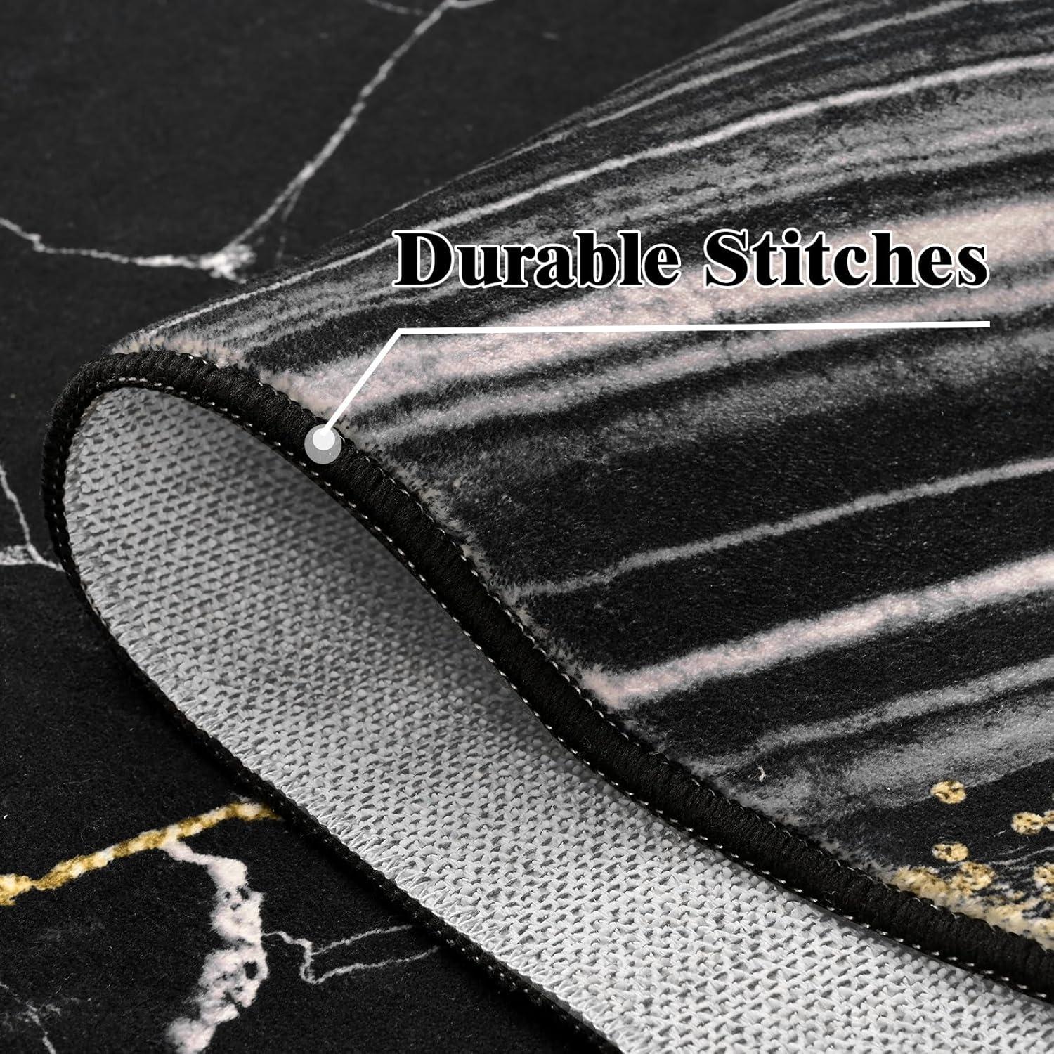 Modern Marble Aesthetic: Small rug has bold black and gold marble pattern adding a touch of contemporary elegance, effortlessly complementing minimalist, industrial, or mid-century decor styles. Its neutral tones hide dirt and lint between cleanings
