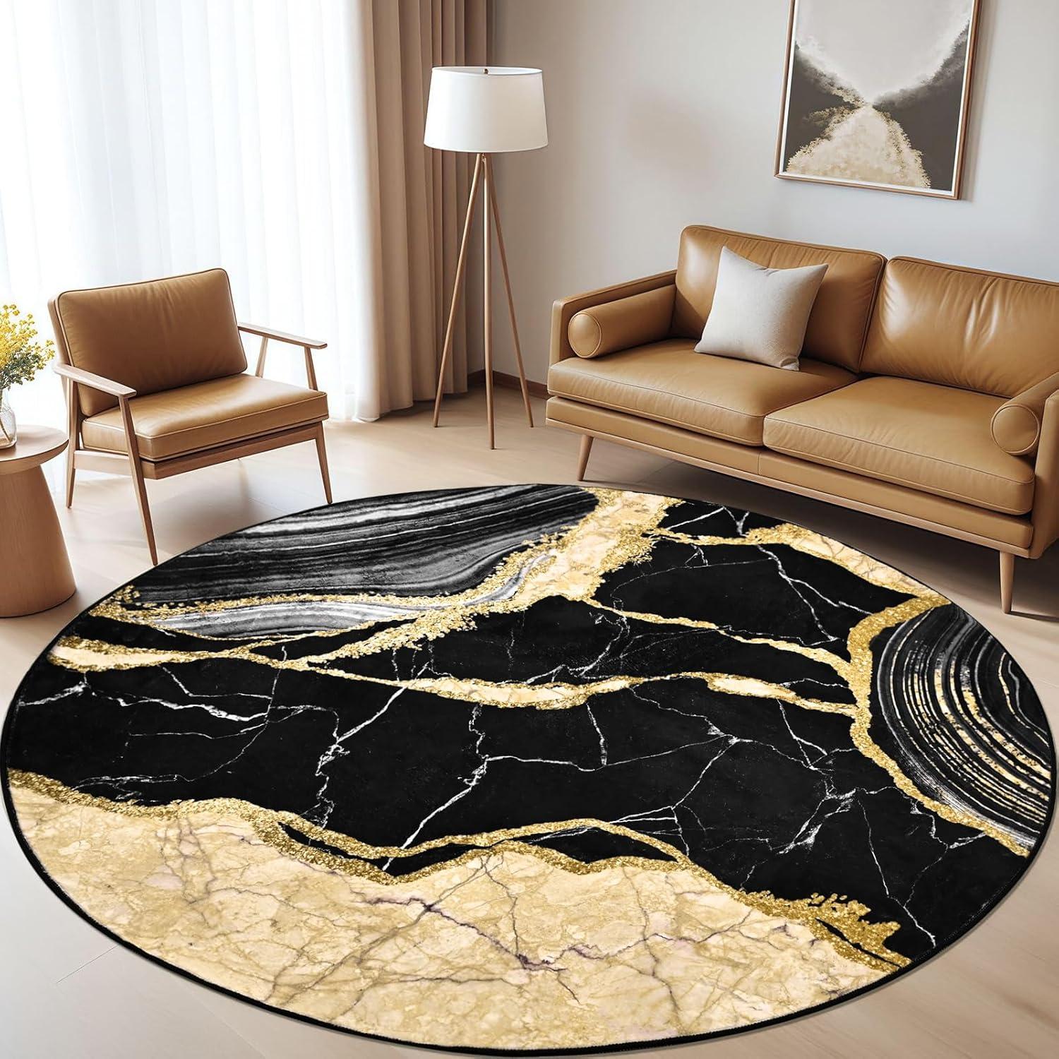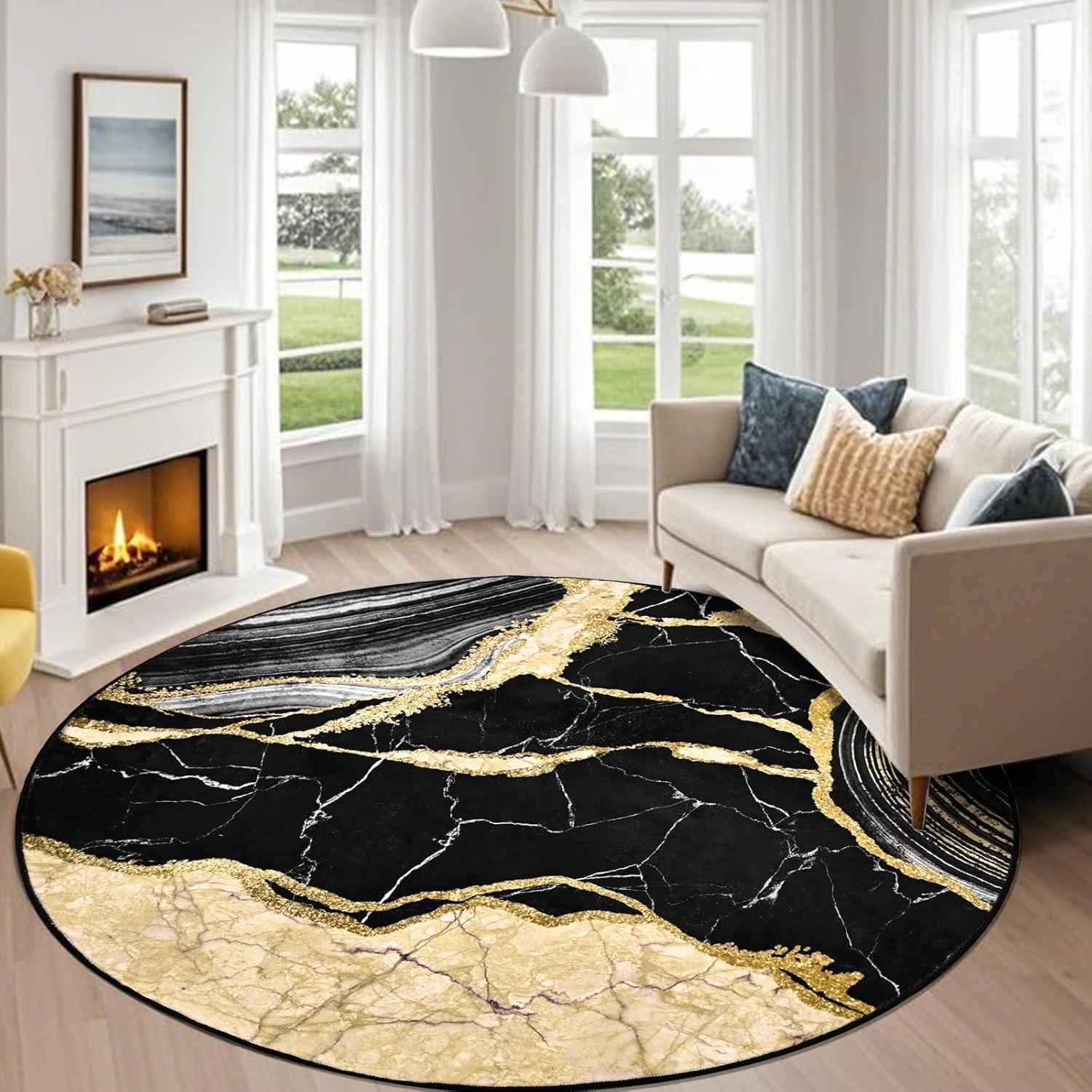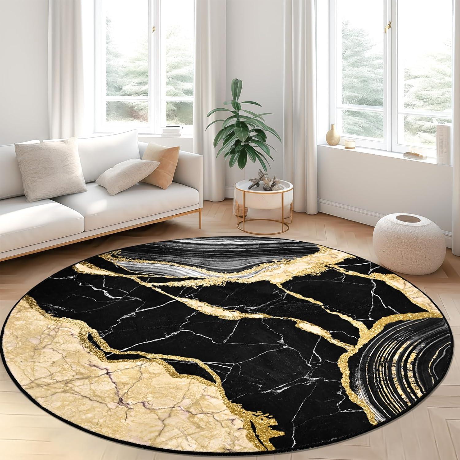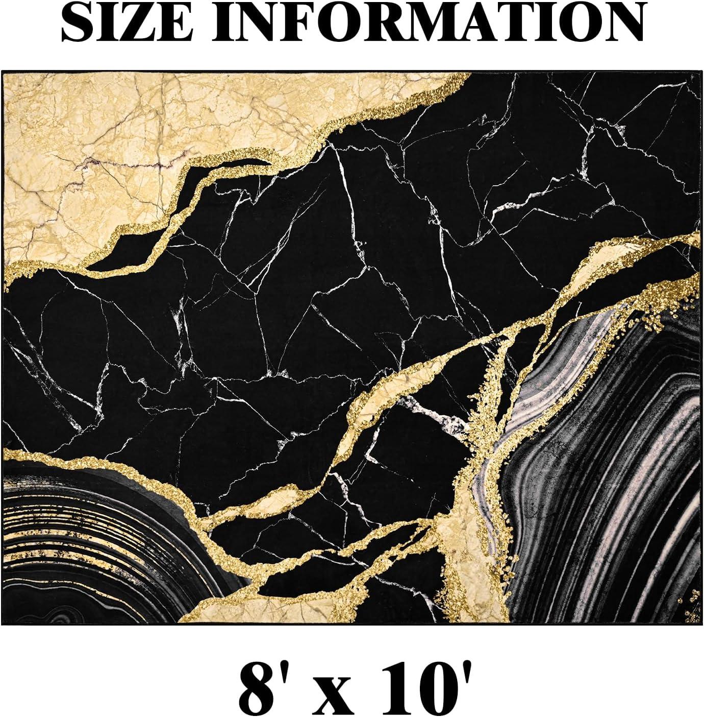 Modern Marble Aesthetic: Small rug has bold black and gold marble pattern adding a touch of contemporary elegance, effortlessly complementing minimalist, industrial, or mid-century decor styles. Its neutral tones hide dirt and lint between cleanings