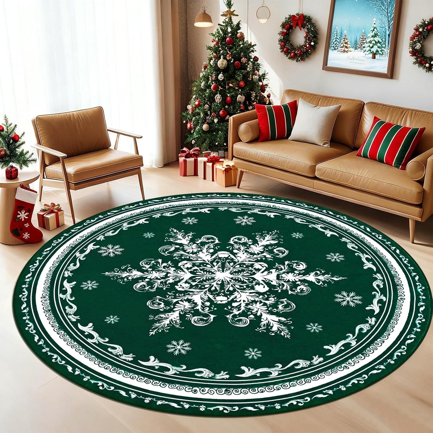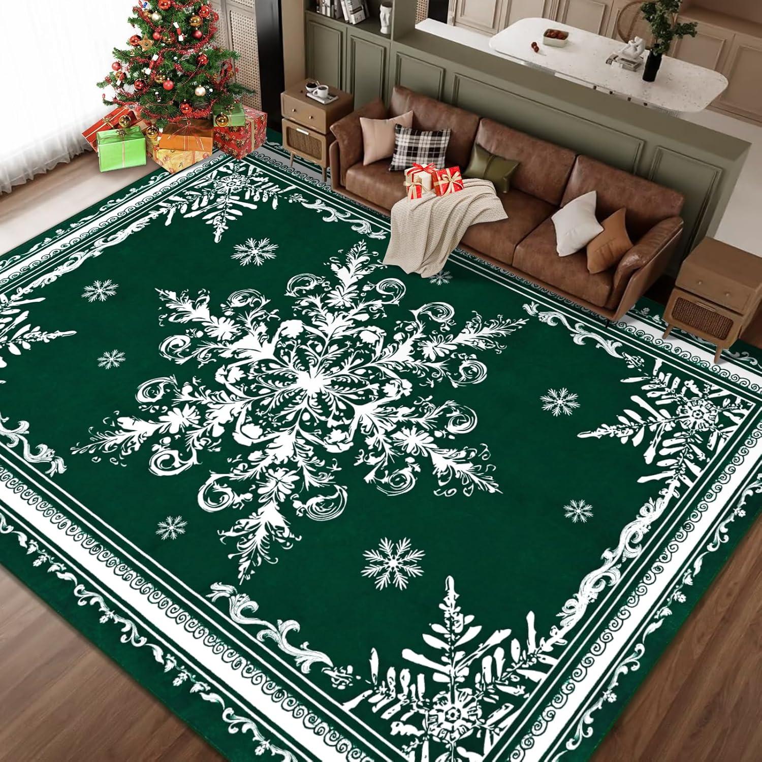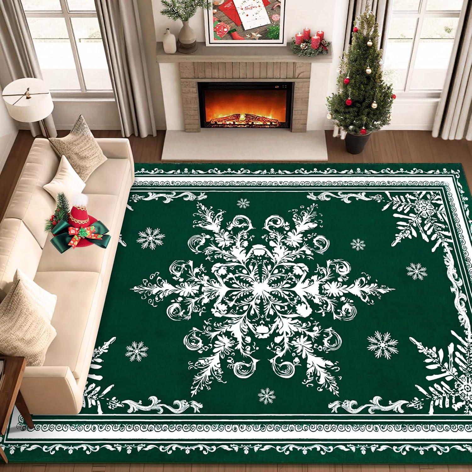 Stress-Free Spill Management: Christmas living room rug is crafted for holiday messes. The stain-resistant, machine-washable surface effortlessly handles spills from Christmas drinks, cookie icing, and treats, making cleanup a breeze