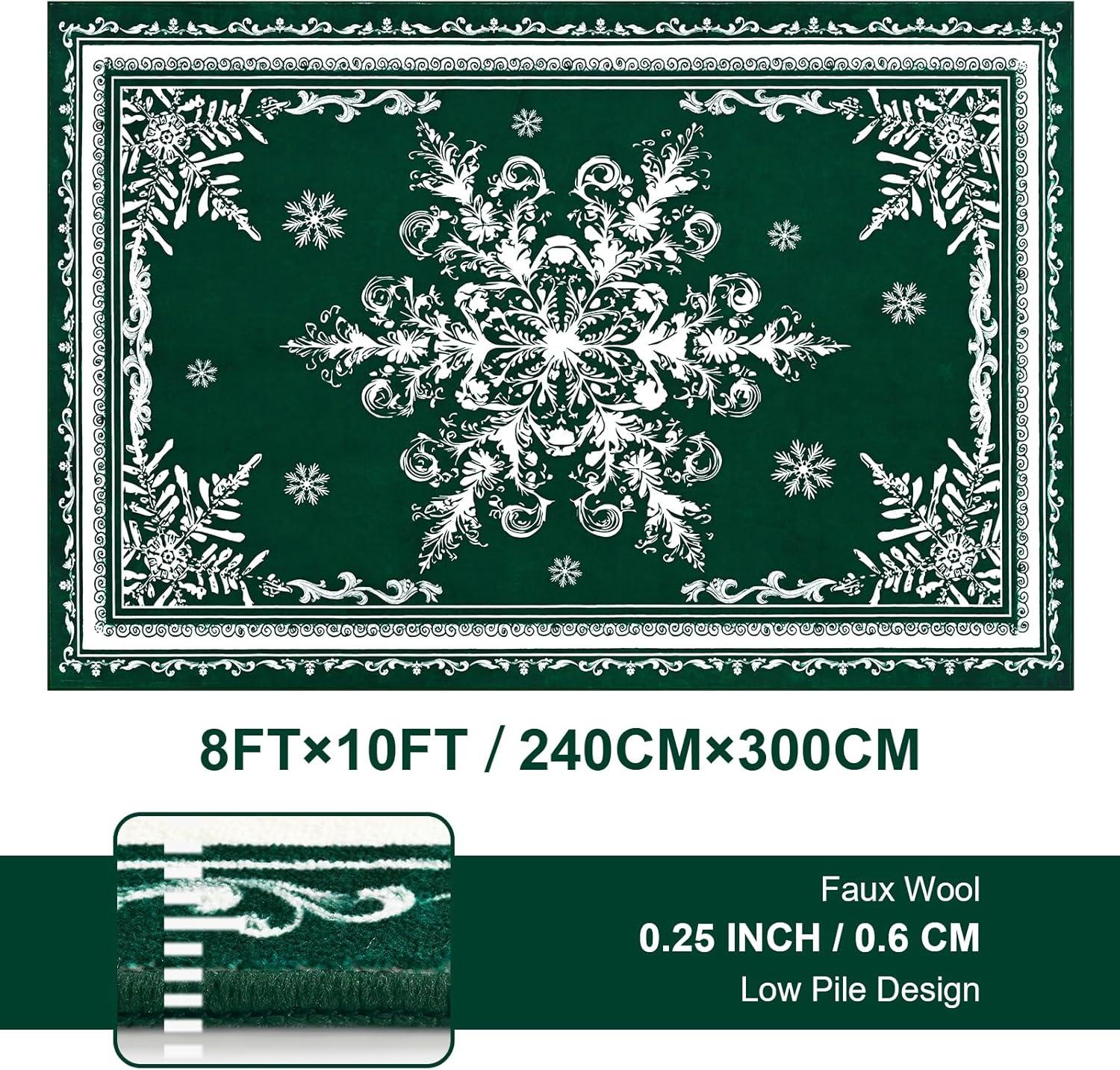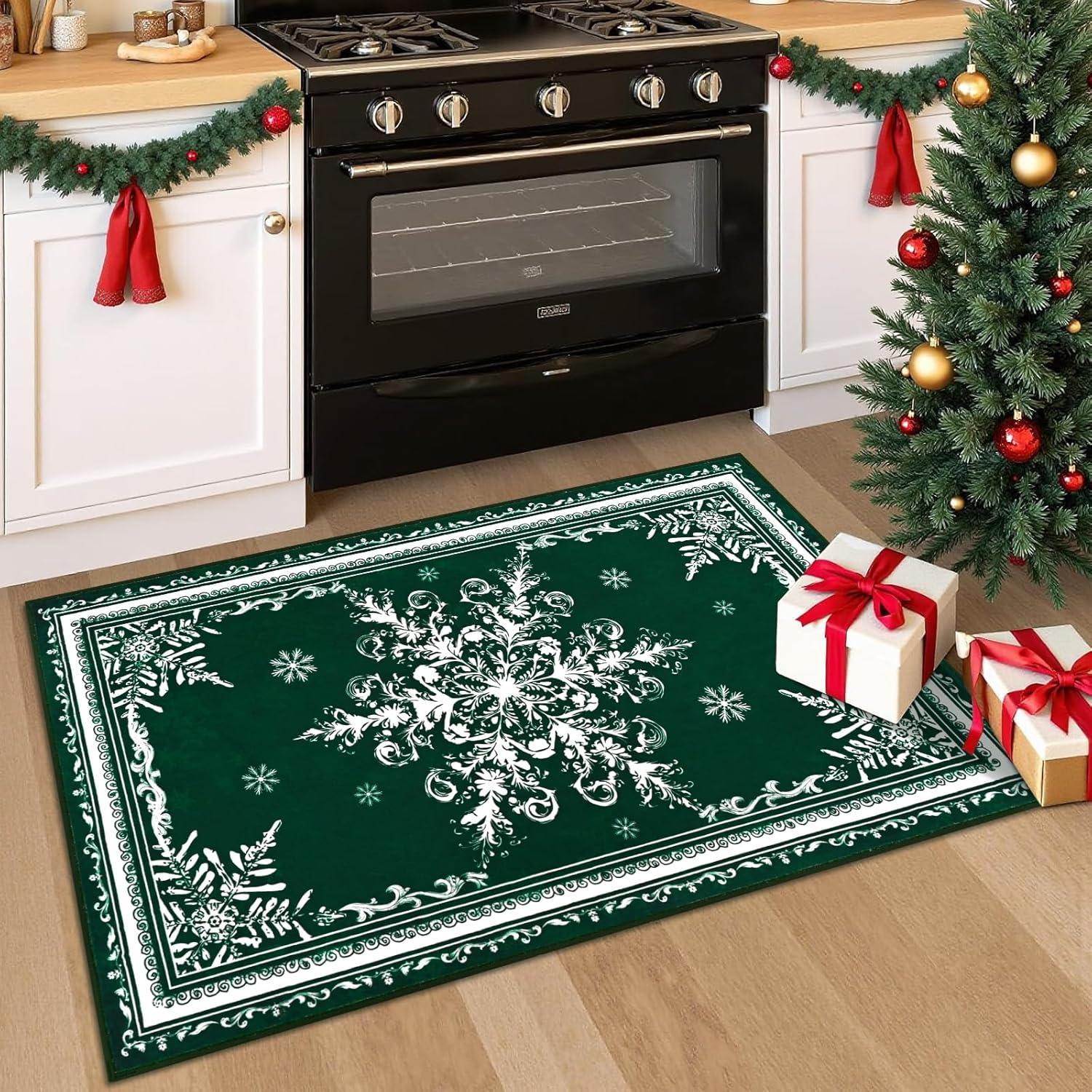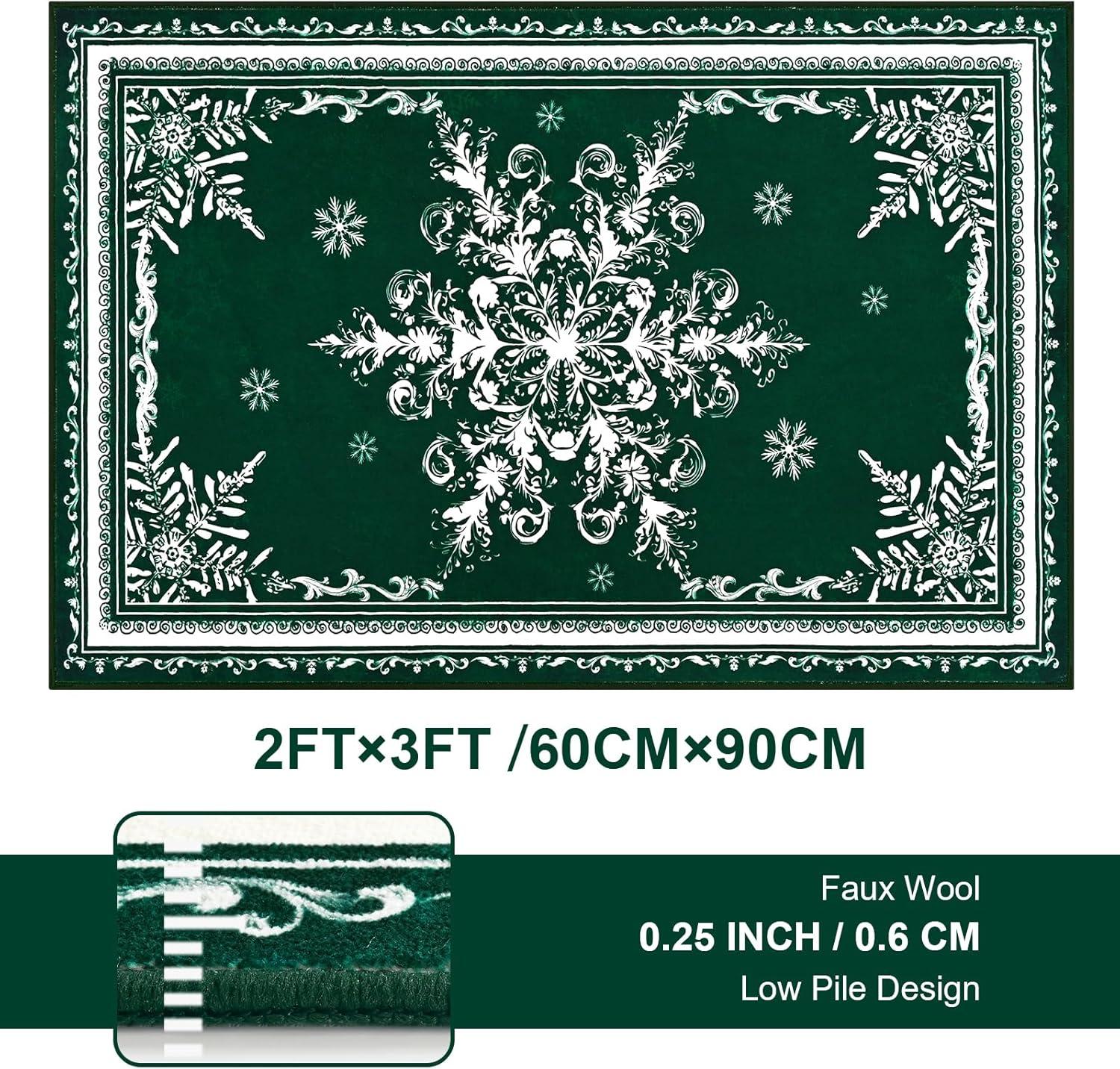 ASPMIZ Christmas Area Rug 3x5, Snowflake Entryway Rug Non Slip Washable Rugs Low Pile Floor Mat, Soft Faux Wool Rugs for Living Room, Bedroom, Kitchen, Holiday Christmas Decorations, Red(Green)