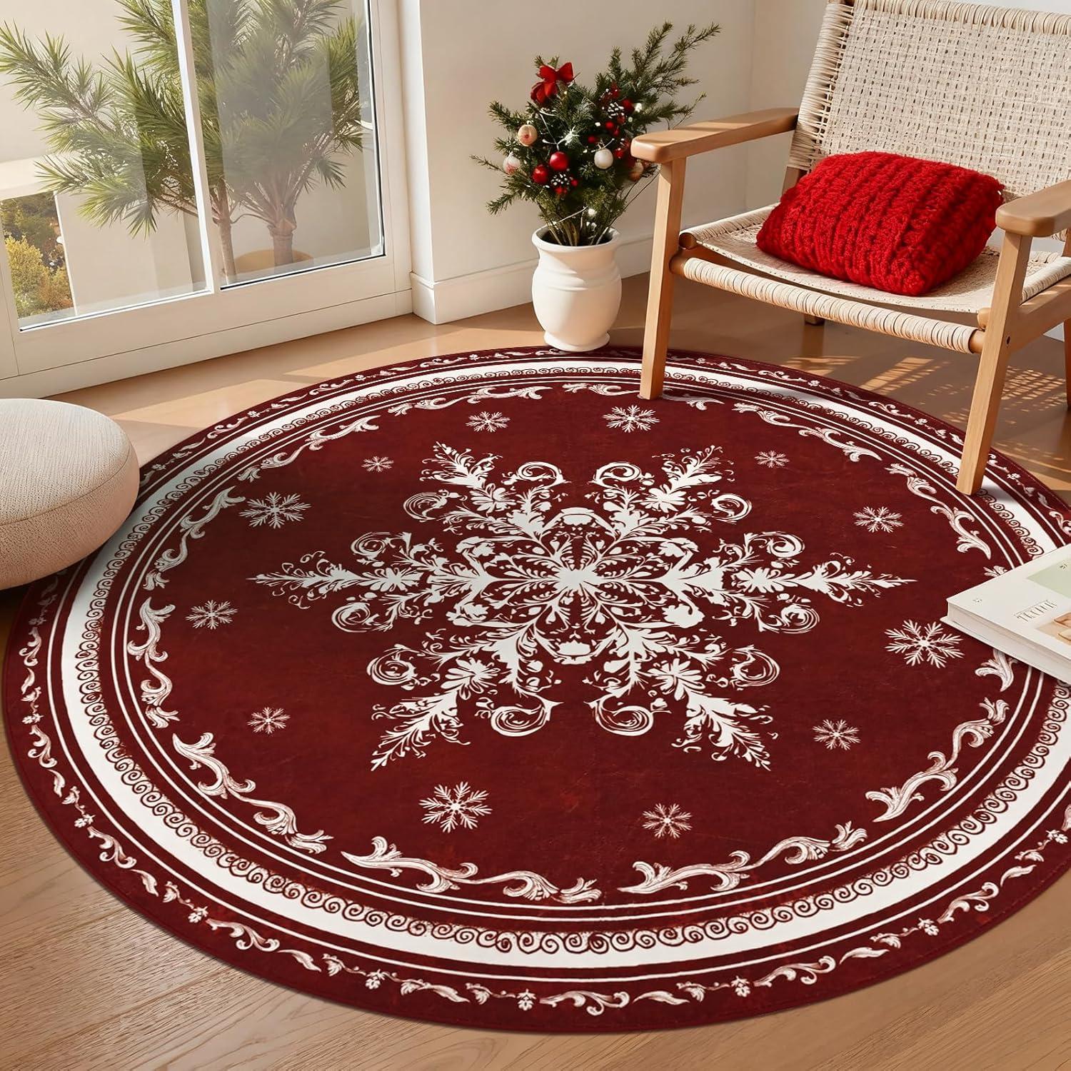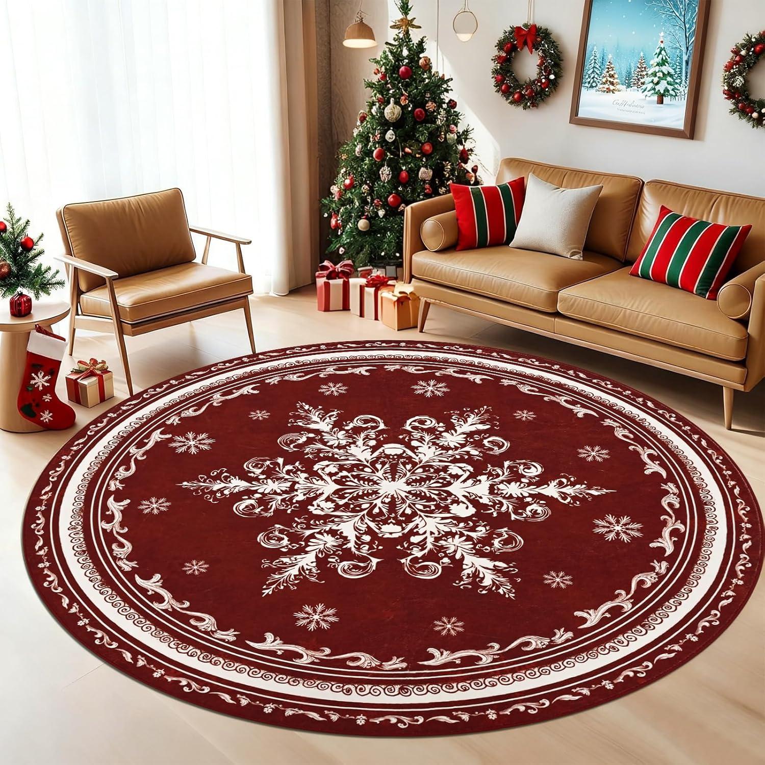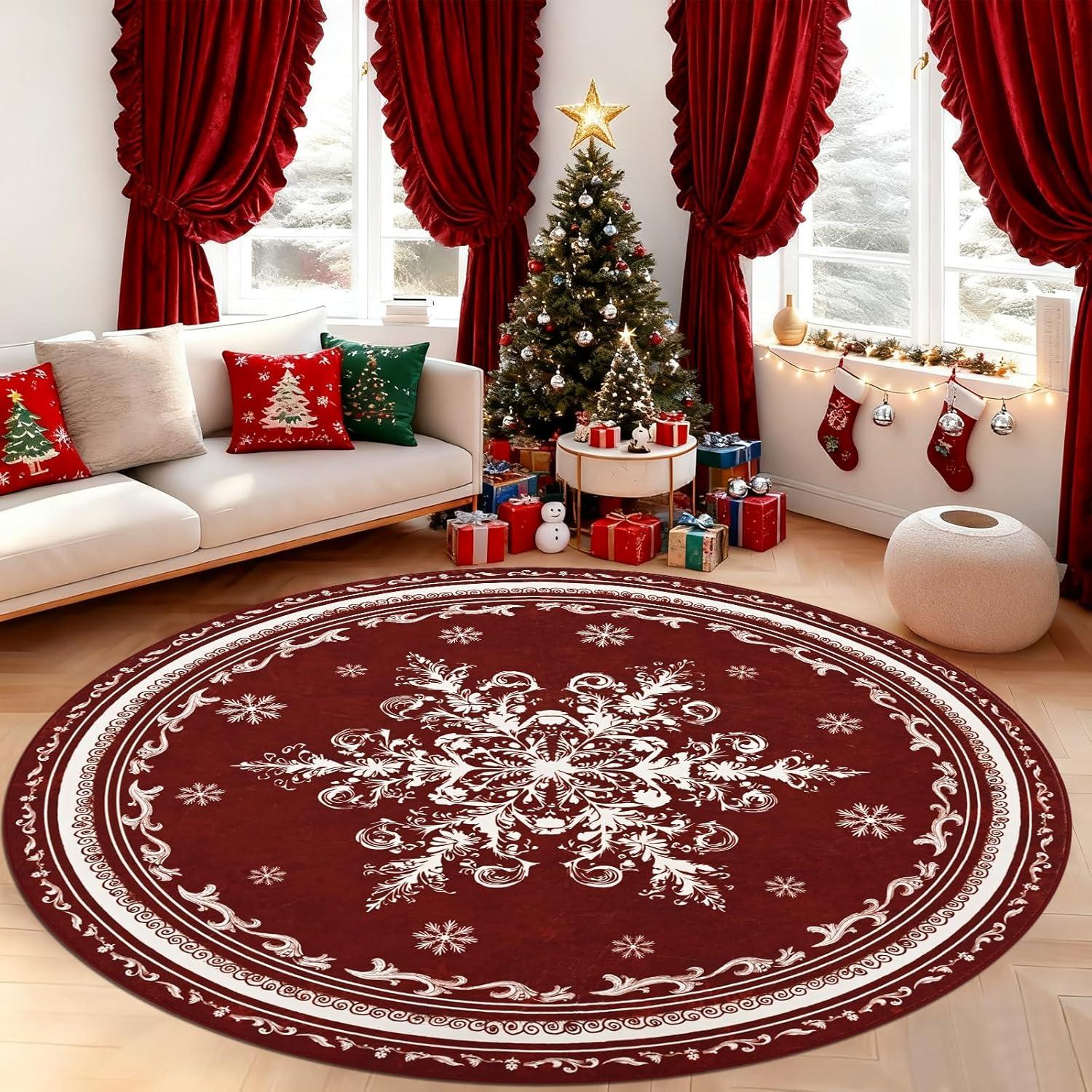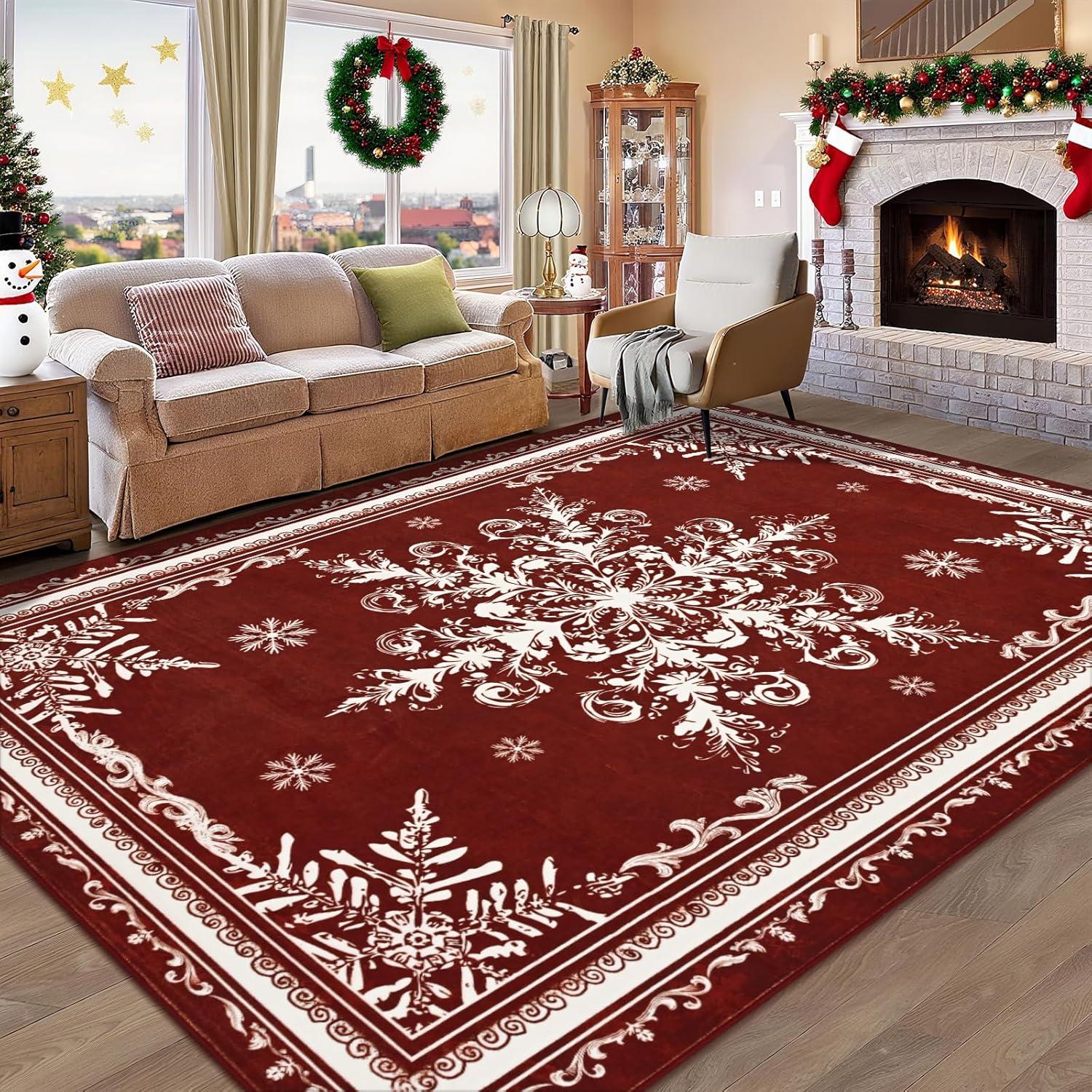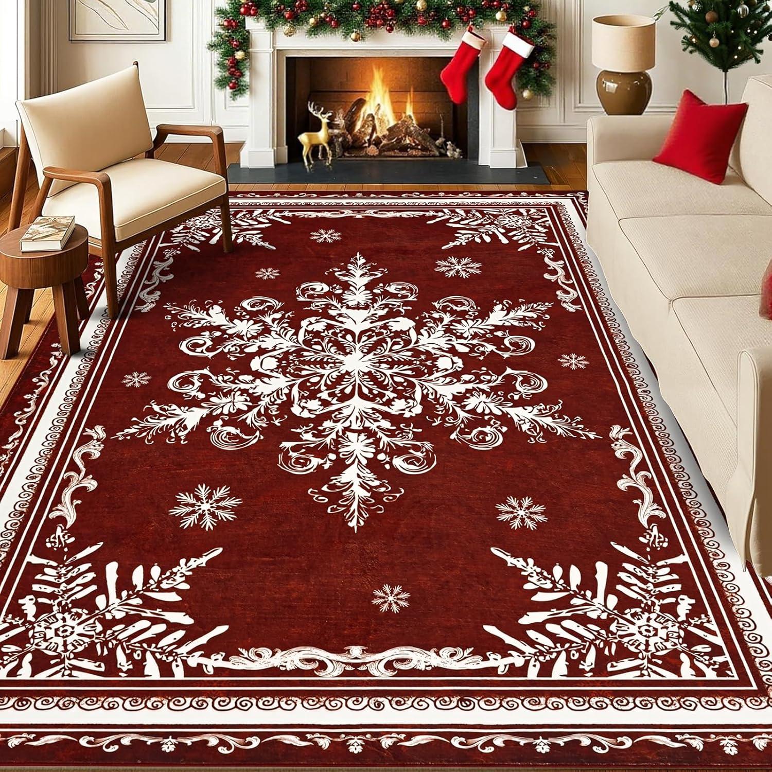 Stress-Free Spill Management: Christmas living room rug is crafted for holiday messes. The stain-resistant, machine-washable surface effortlessly handles spills from Christmas drinks, cookie icing, and treats, making cleanup a breeze