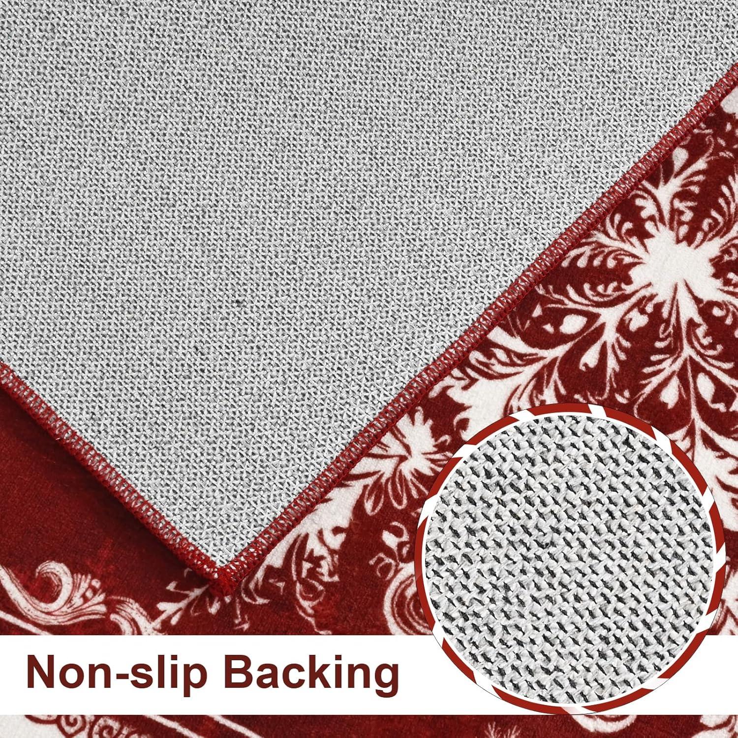 Total Household Safety: Family gatherings worry-free! The full-coverage TPR non-slip backing of washable Christmas area rug provides unwavering stability on hard floors, protecting your family and guests from slips during busy holiday activities