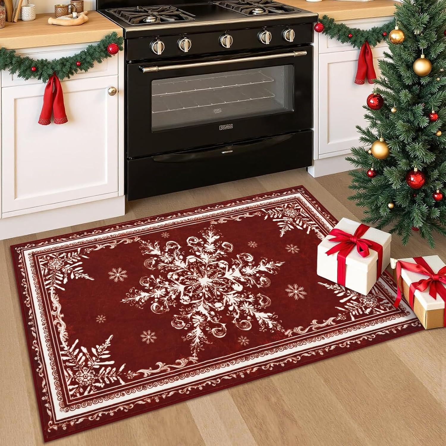 Versatile Christmas Decorations: Tie your holiday décor together! This perfectly sized 3×5 Christmas rug anchors your space under a kitchen table, in front of a sofa, or beside a bed, spreading Christmas warmth throughout your home