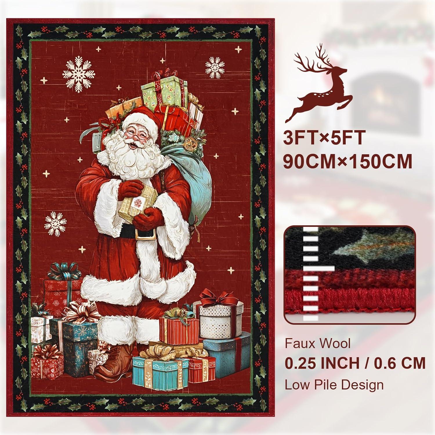 ASPMIZ Christmas Area Rug 5x7, Santa Claus Living Room Rug Washable Rugs Non Slip for Bedroom, Low Pile Faux Wool Soft Rugs for Dining Room, Home Office, Holiday Christmas Decorations, Red(Red)