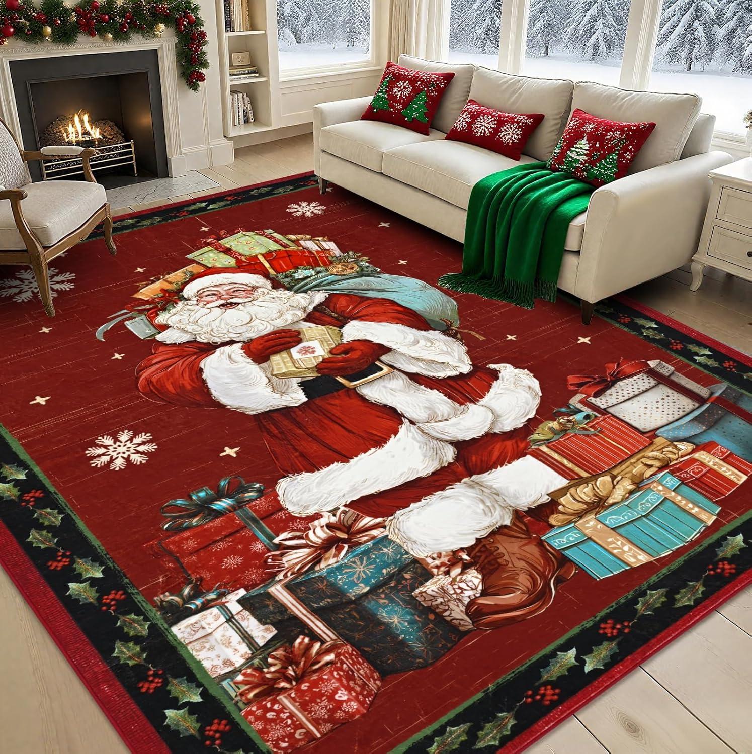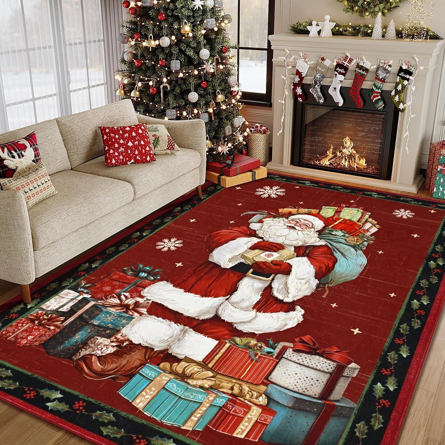 Christmas Decorations: Elevate your holiday decor with our classic Santa Claus pattern, available in traditional Christmas Red and Black. This Christmas rug instantly adds a warm, festive charm to any room, making it the perfect centerpiece for your seasonal celebrations