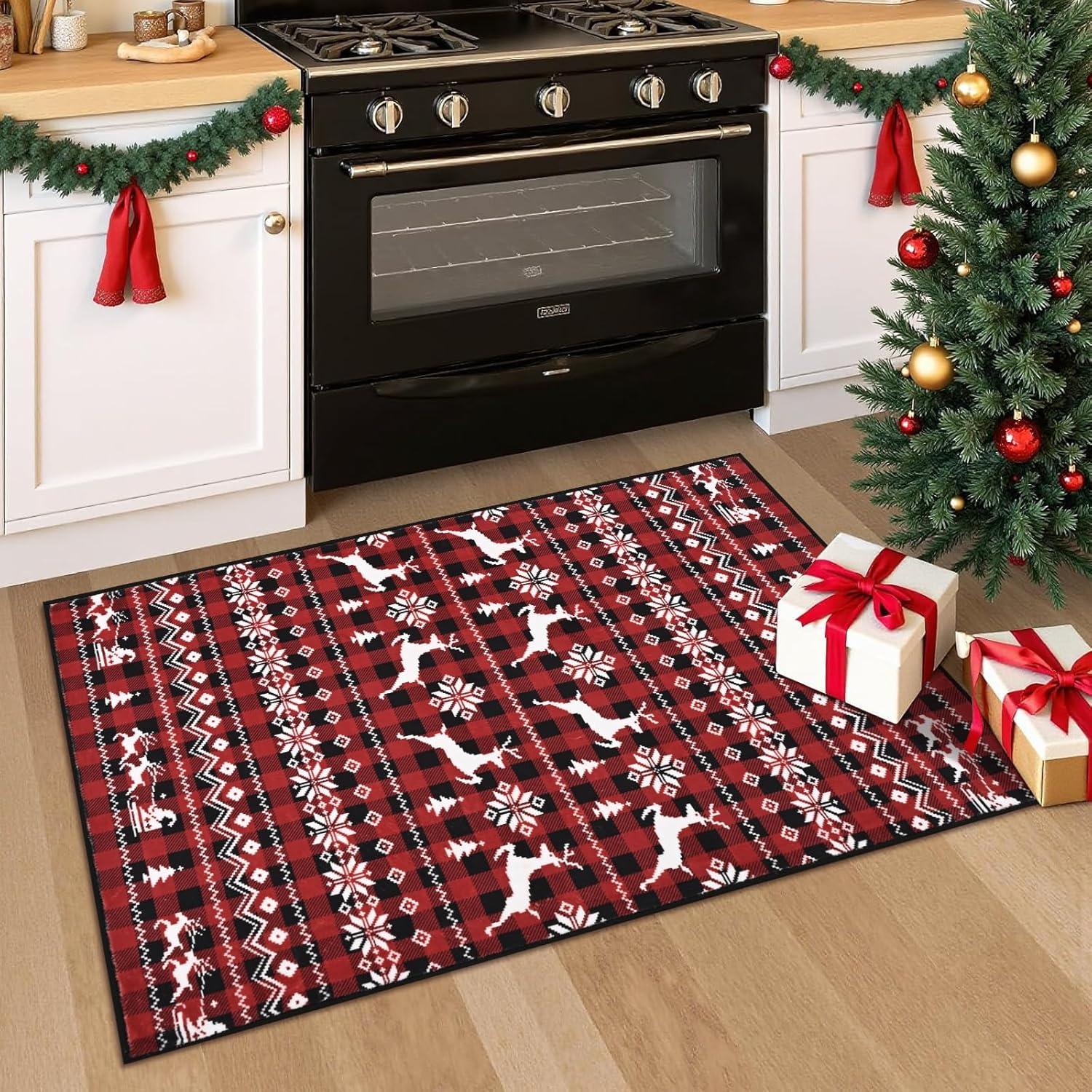 Non-Slip TPR Backing: Our Christmas plaid rug is equipped with a TPE non-slip base to stay put. Ideal for homes with pets, kids, or seniors, bringing safe use to your Christmas holiday setting