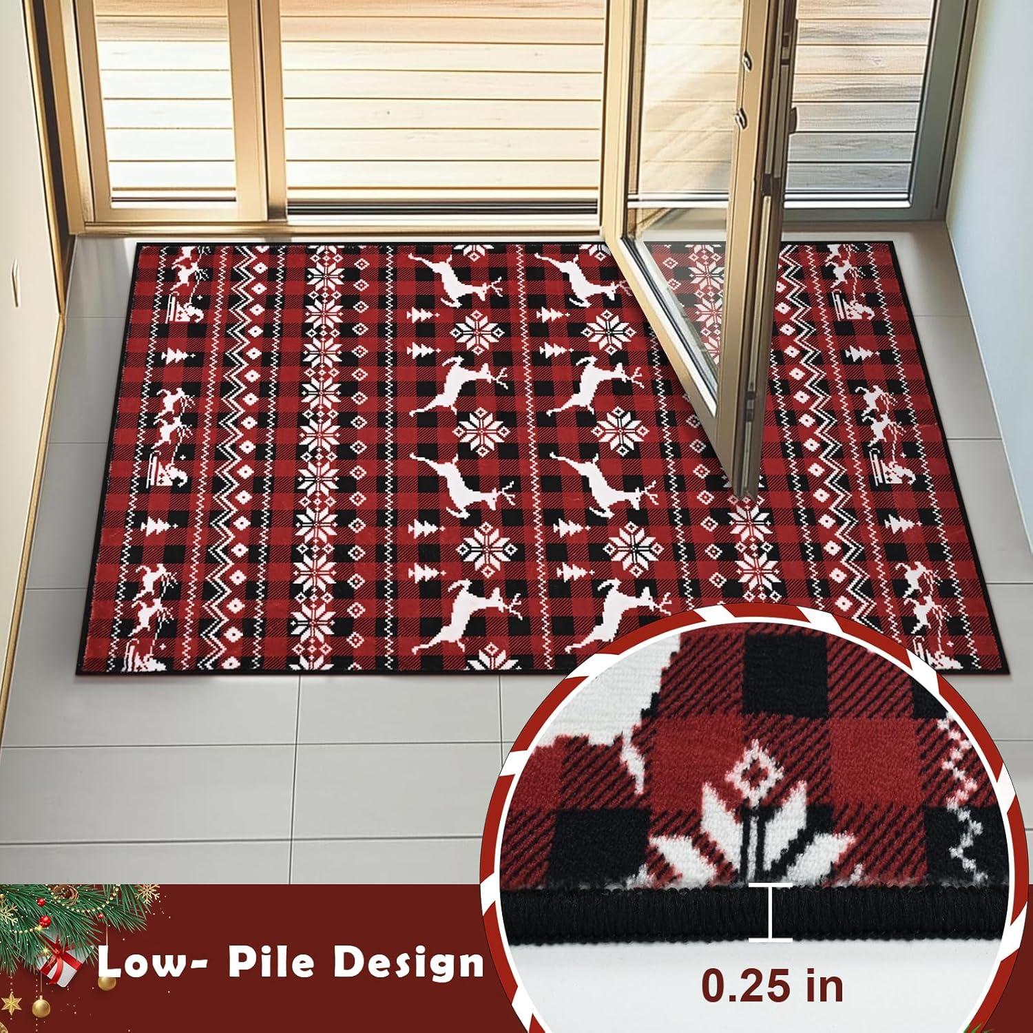 Low-Pile Cashmere-Like Feel: Features a 0.25-inch low pile, avoiding trips. Fits easily in entryways or under furniture. Soft on bare feet, great for daily Christmas use