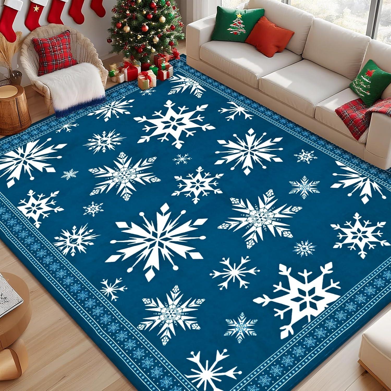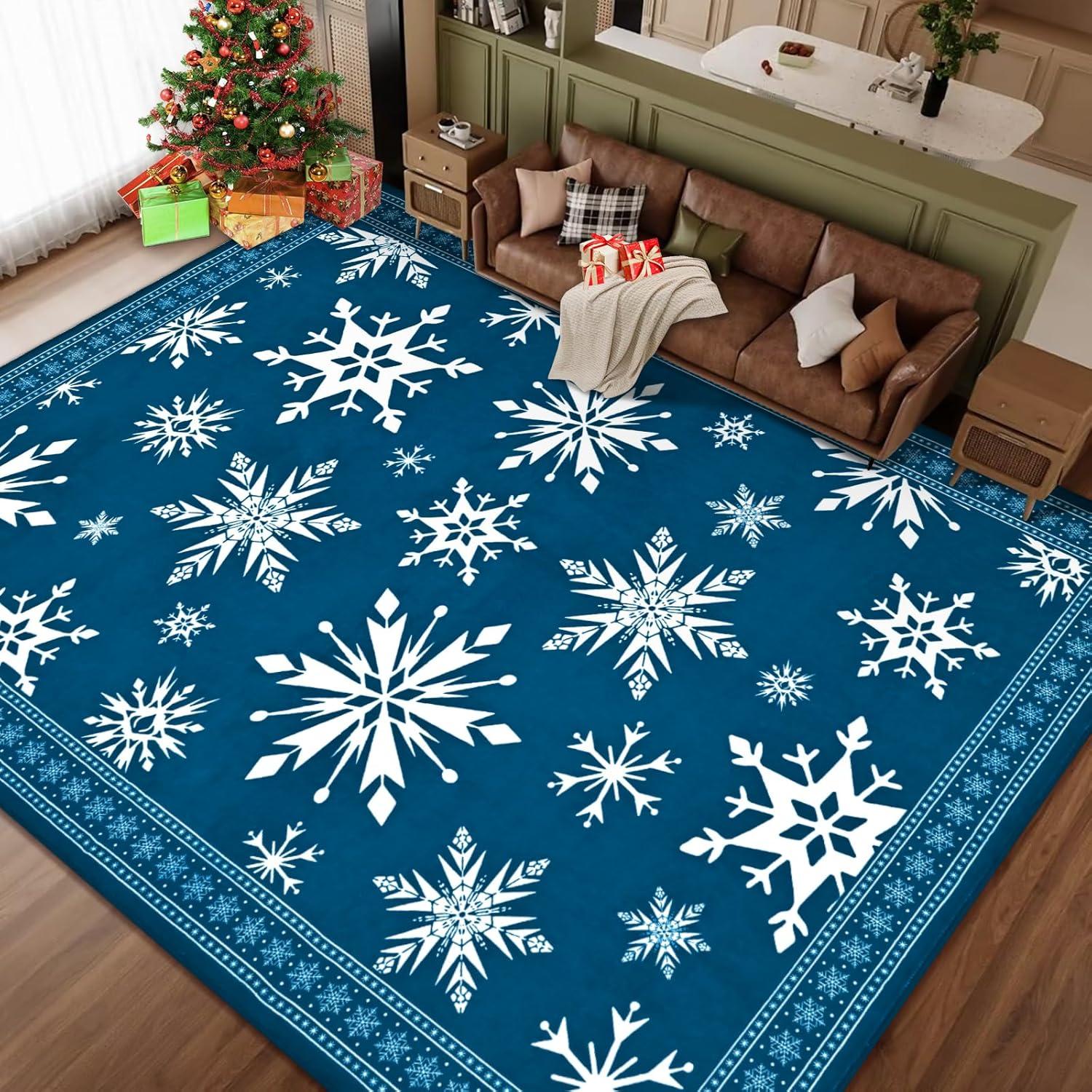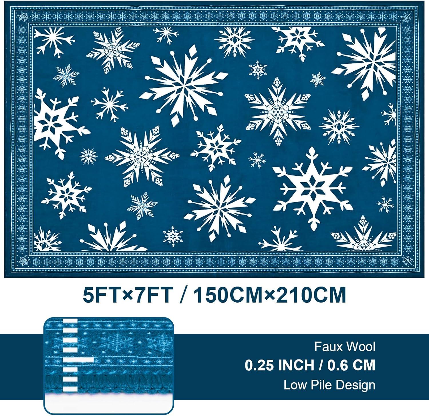 ASPMIZ Christmas Area Rugs 8x10 Living Room Rug, Snowflake Rugs for Bedroom, Red Washable Rug Low Pile Winter, Non Slip Carpet Soft Faux Wool Throw Carpet for Entryway, Office, Nursery, Red(Blue)