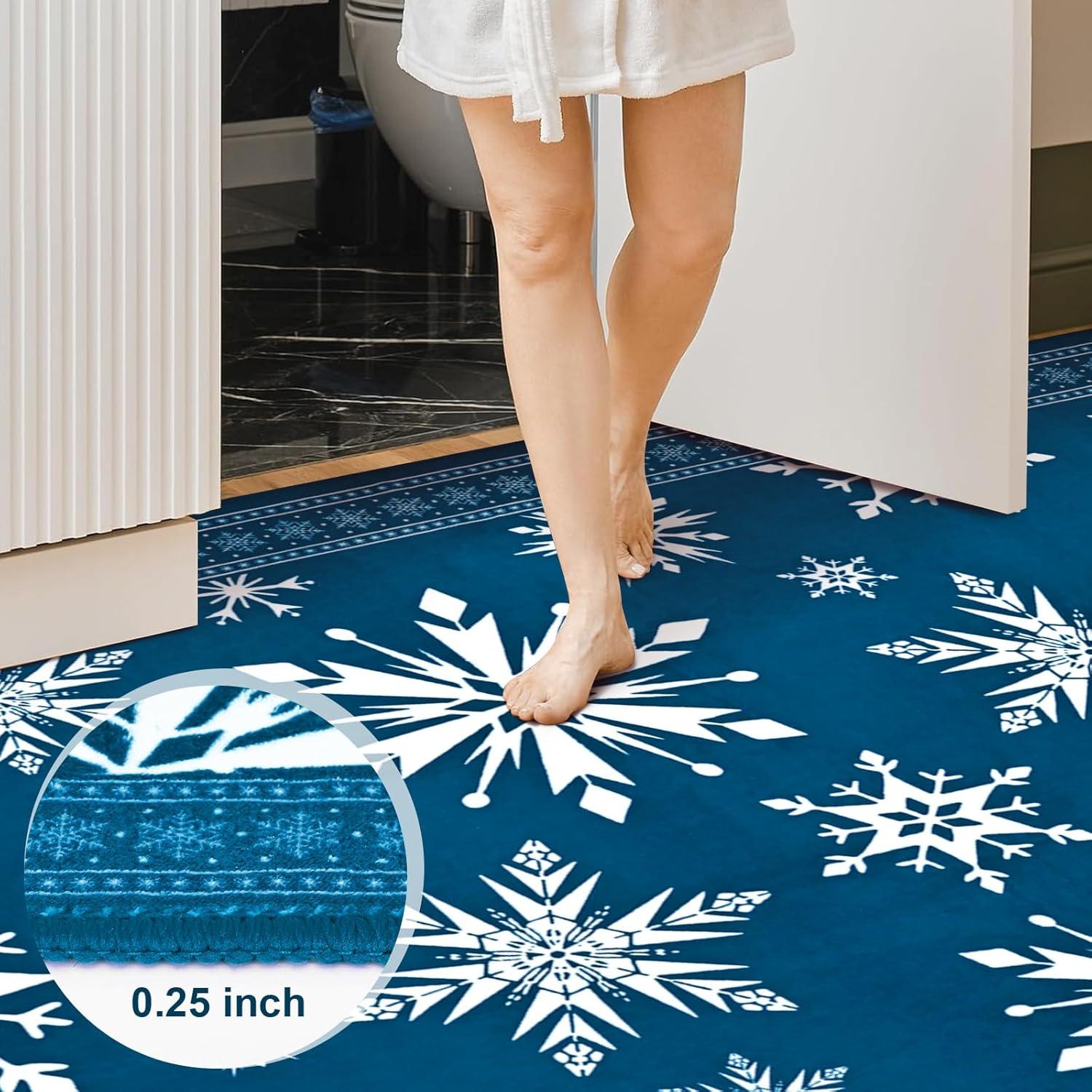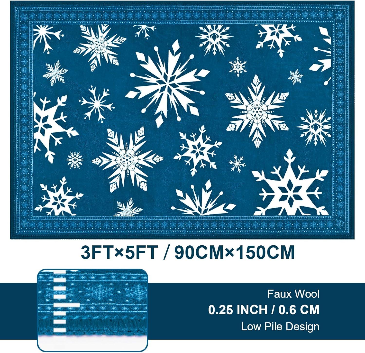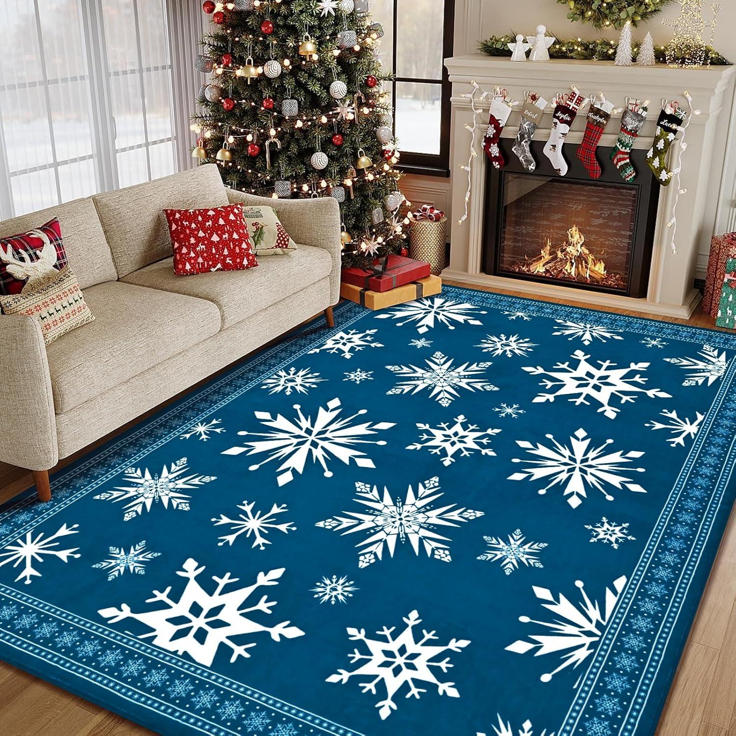 ASPMIZ Christmas Area Rugs 8x10 Living Room Rug, Snowflake Rugs for Bedroom, Red Washable Rug Low Pile Winter, Non Slip Carpet Soft Faux Wool Throw Carpet for Entryway, Office, Nursery, Red(Blue)