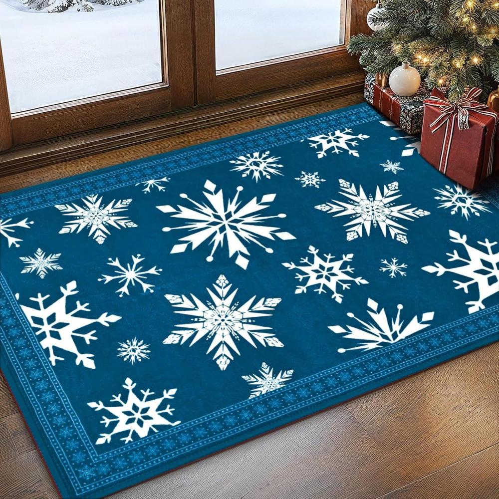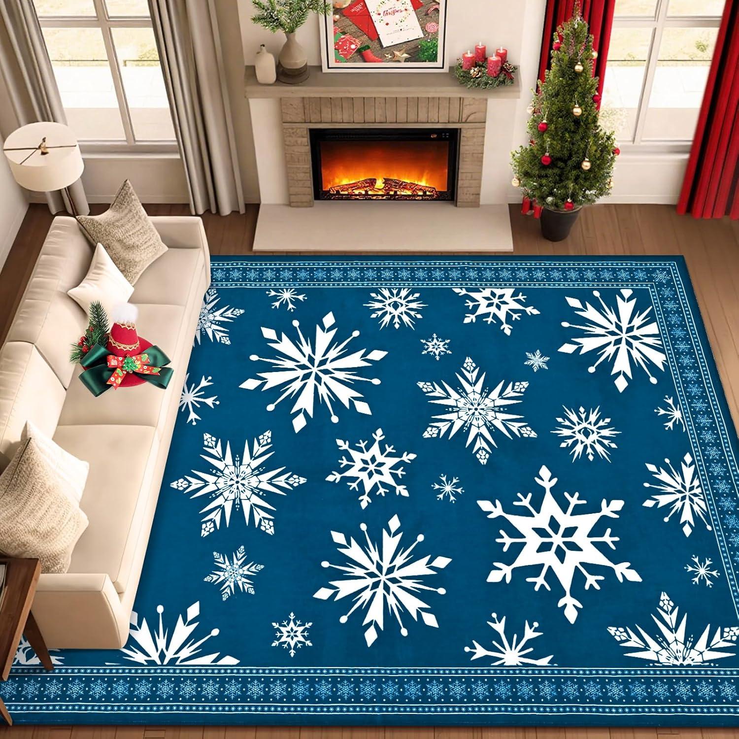 Christmas Snowflake Design: This Christmas area rug's classic snowflake design stays true to photos, complements couches and Christmas trees, and instantly boosts Christmas magic