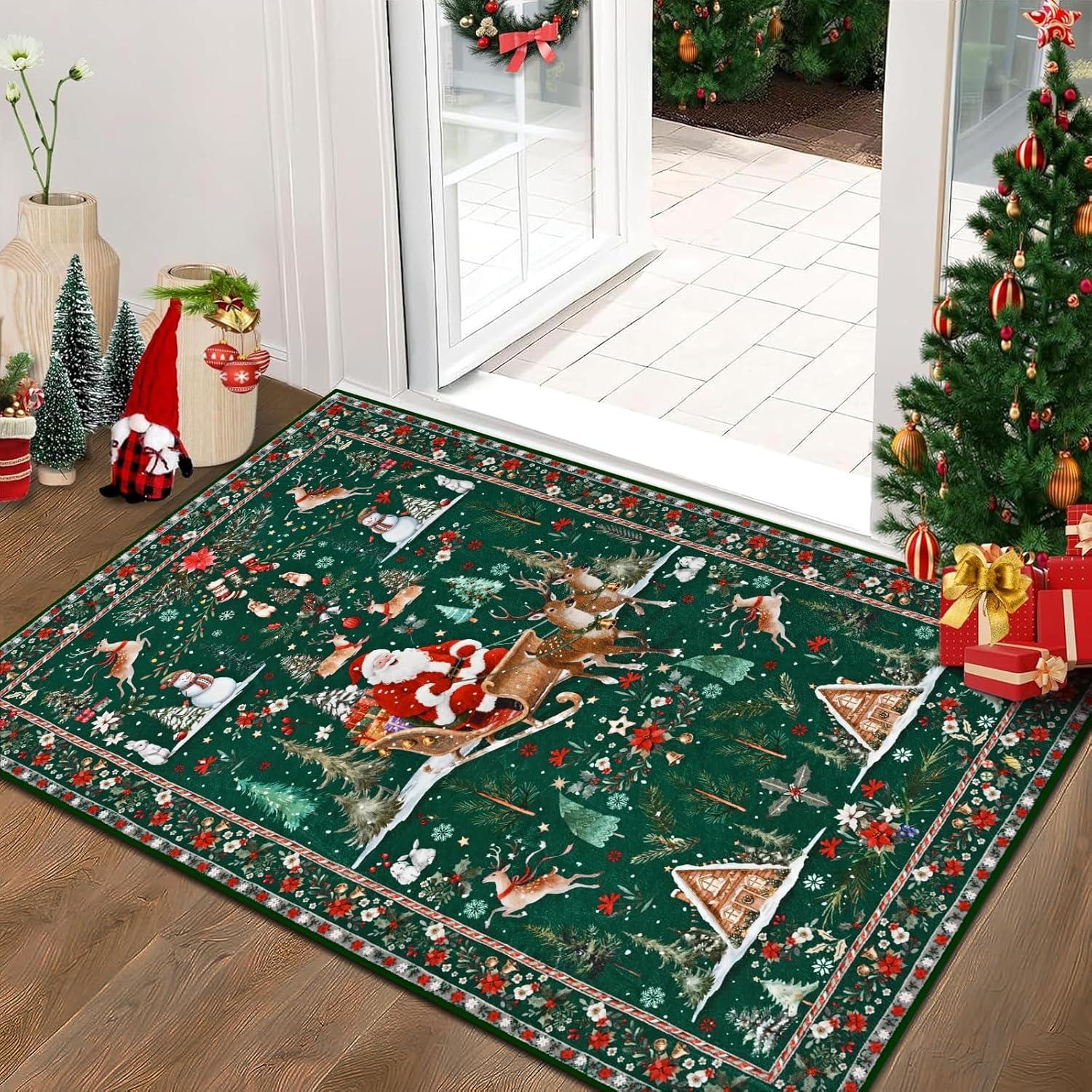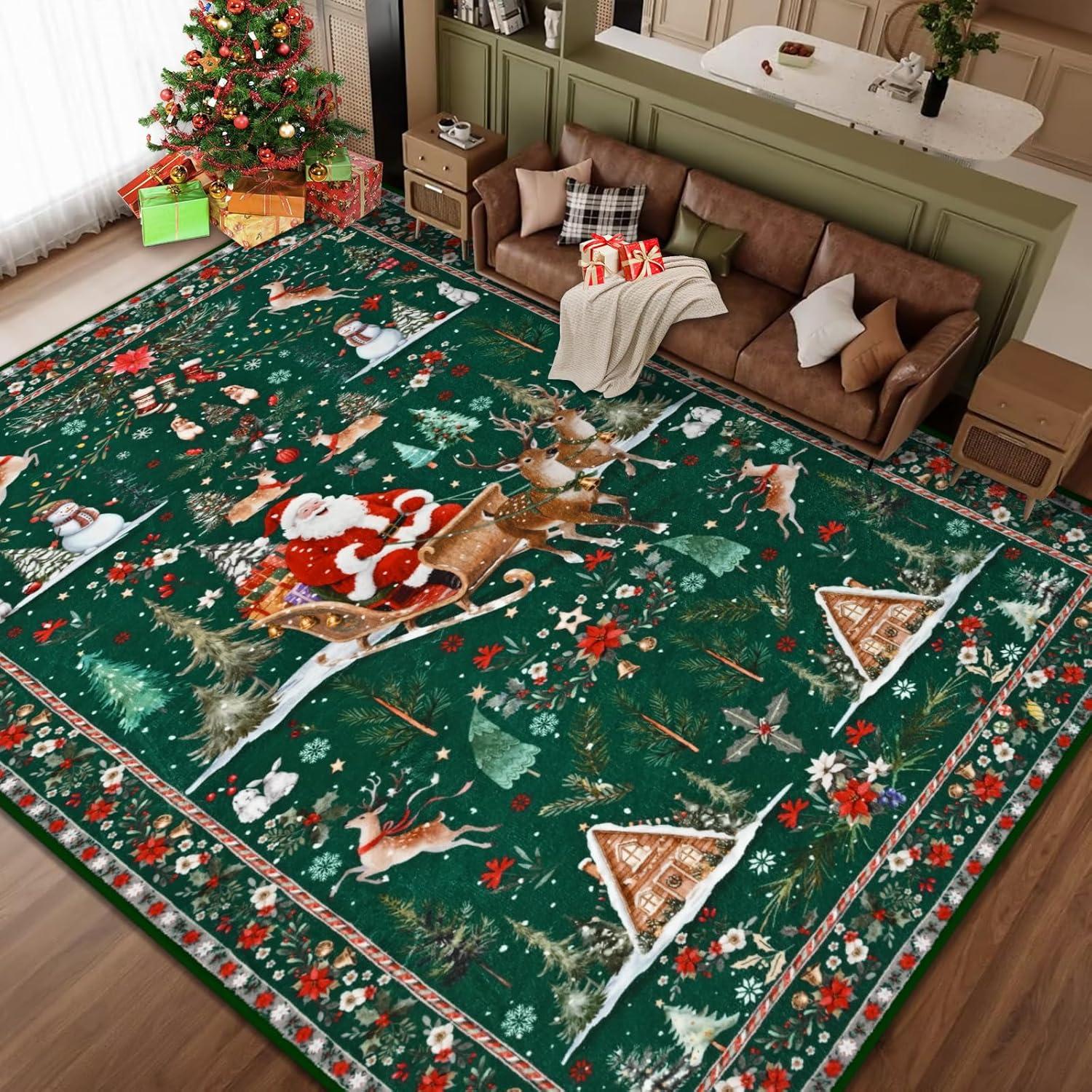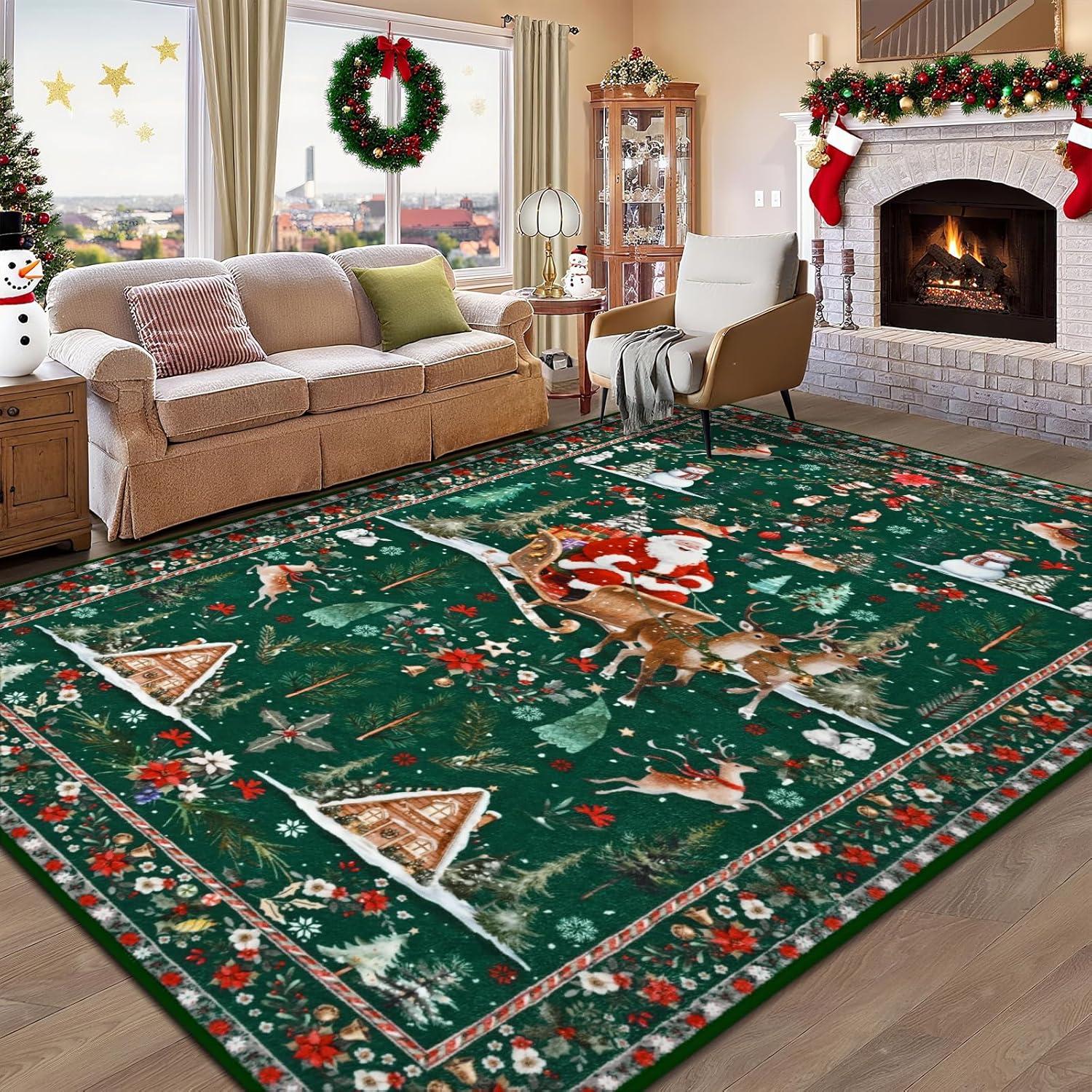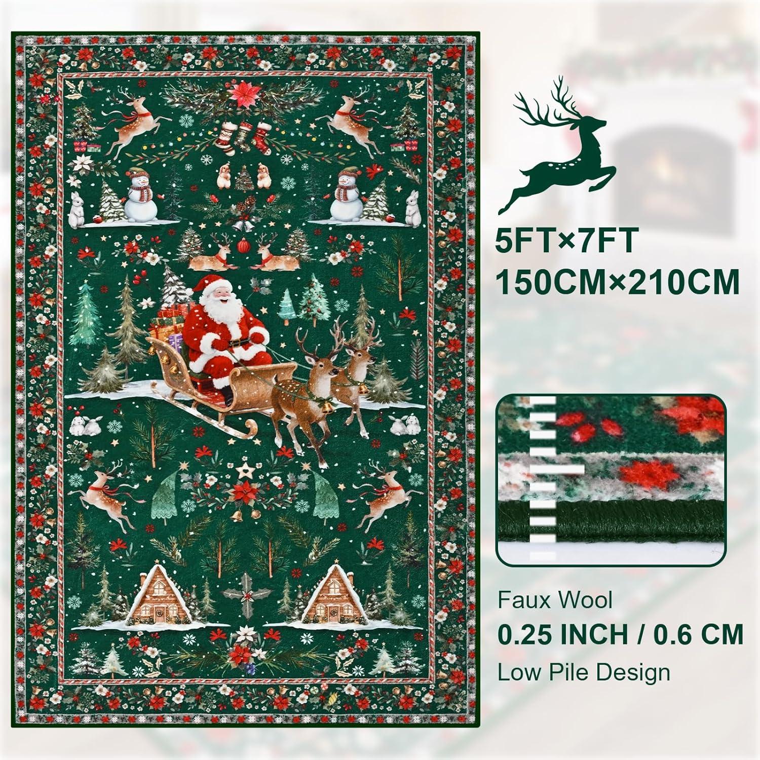 Soft Christmas Rug: Our christmas area rug for bedroom are made from durable and soft faux wool, providing a soft touch for both your feet and pets, creating a relaxing area for children and your family