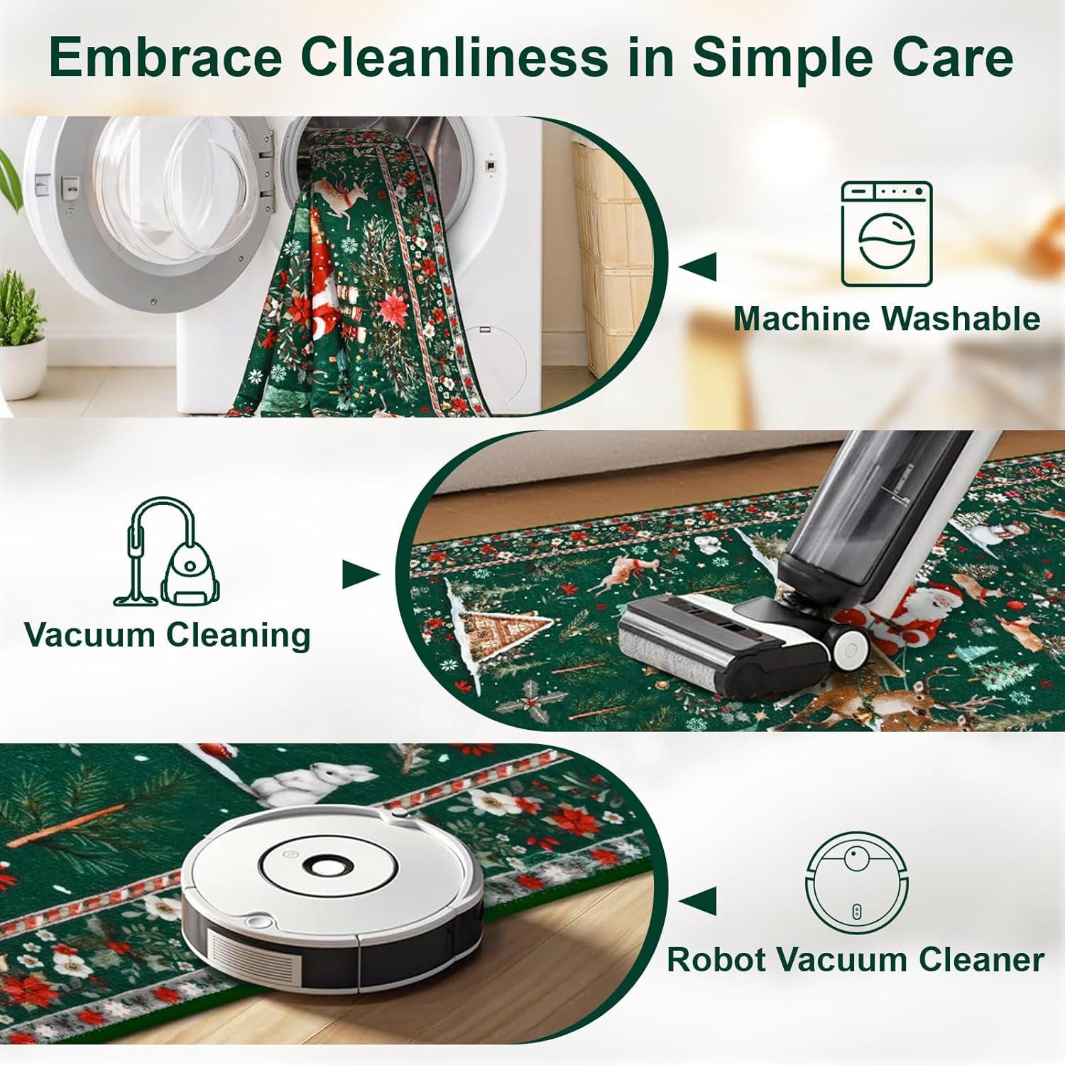 Non-slip & Non-shedding: The Christmas washable rug are made with a non-slip TPR rubber backing that grips securely on a variety of floor surfaces including tile, vinyl and hardwood floors. Reinforced overlock edges ensure virtually no shedding and durability