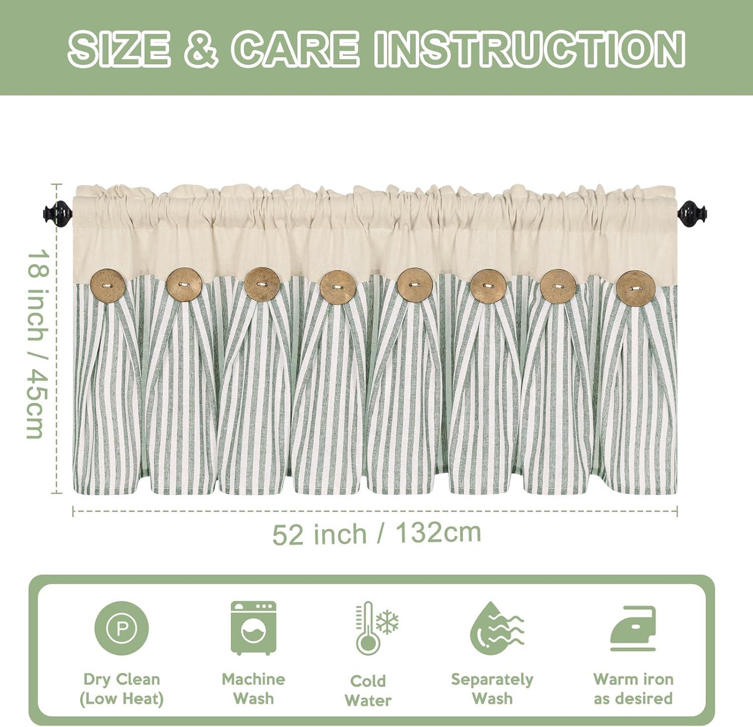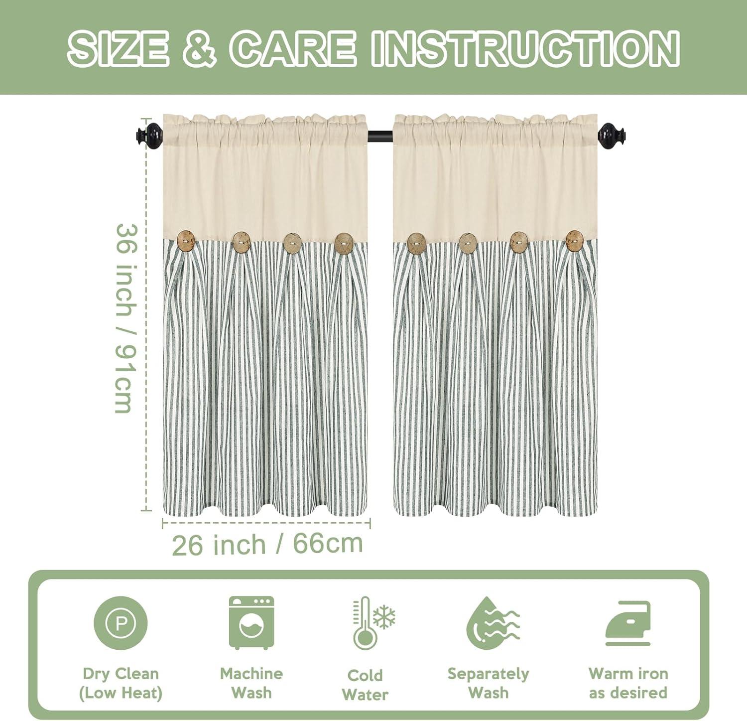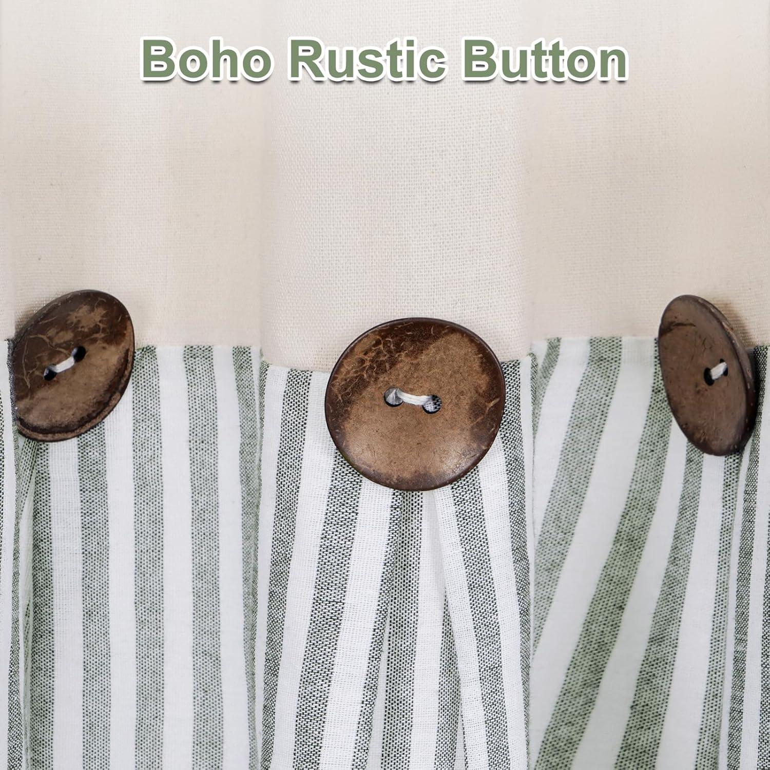 BOHO COTTON LINE CURTAINS: These premium farmhouse curtains are crafted from natural cotton linen fabric. Each boho curtain pannel has 8 exquisite brown decorative buttons. These green stripe line curtains create a neutral style and add a classic look to your home