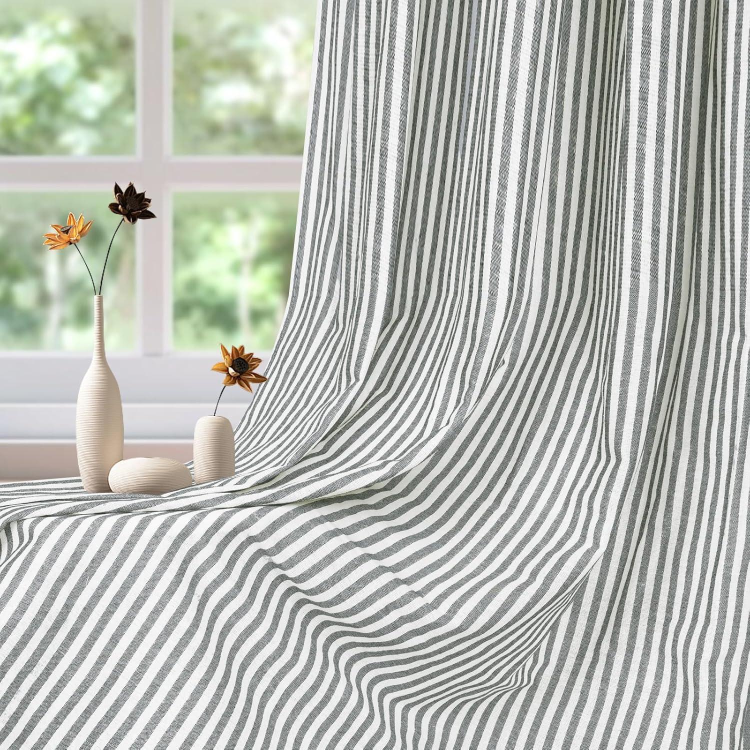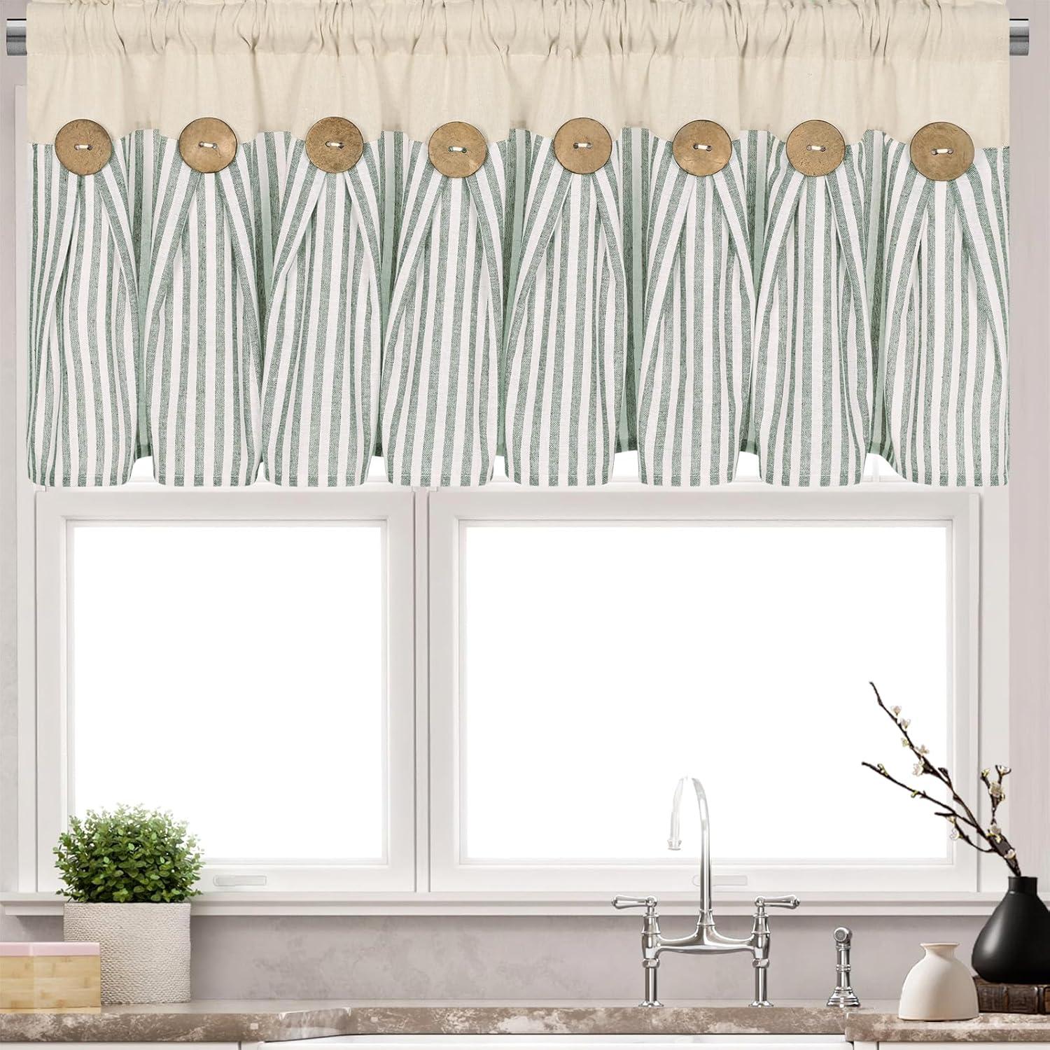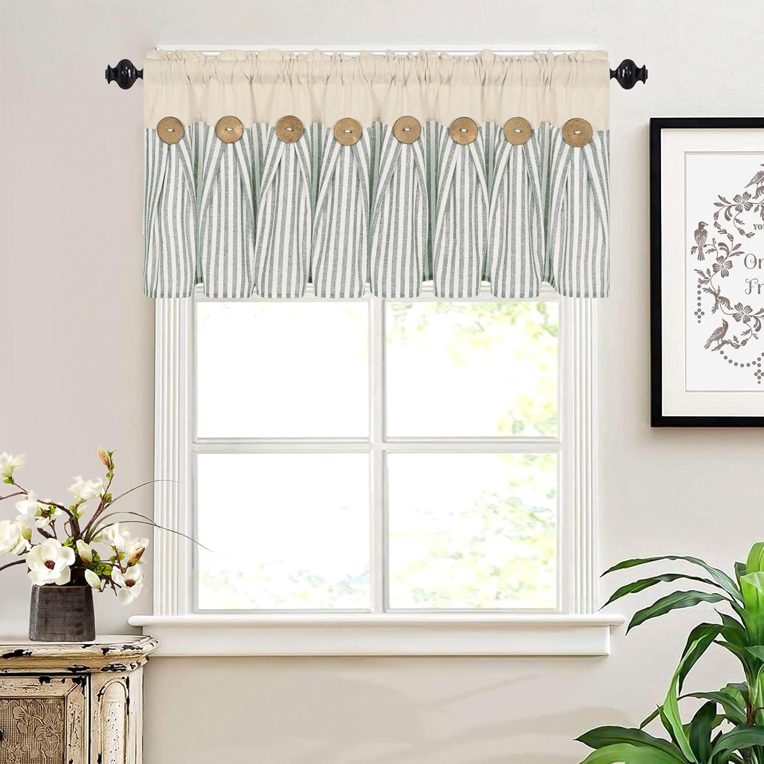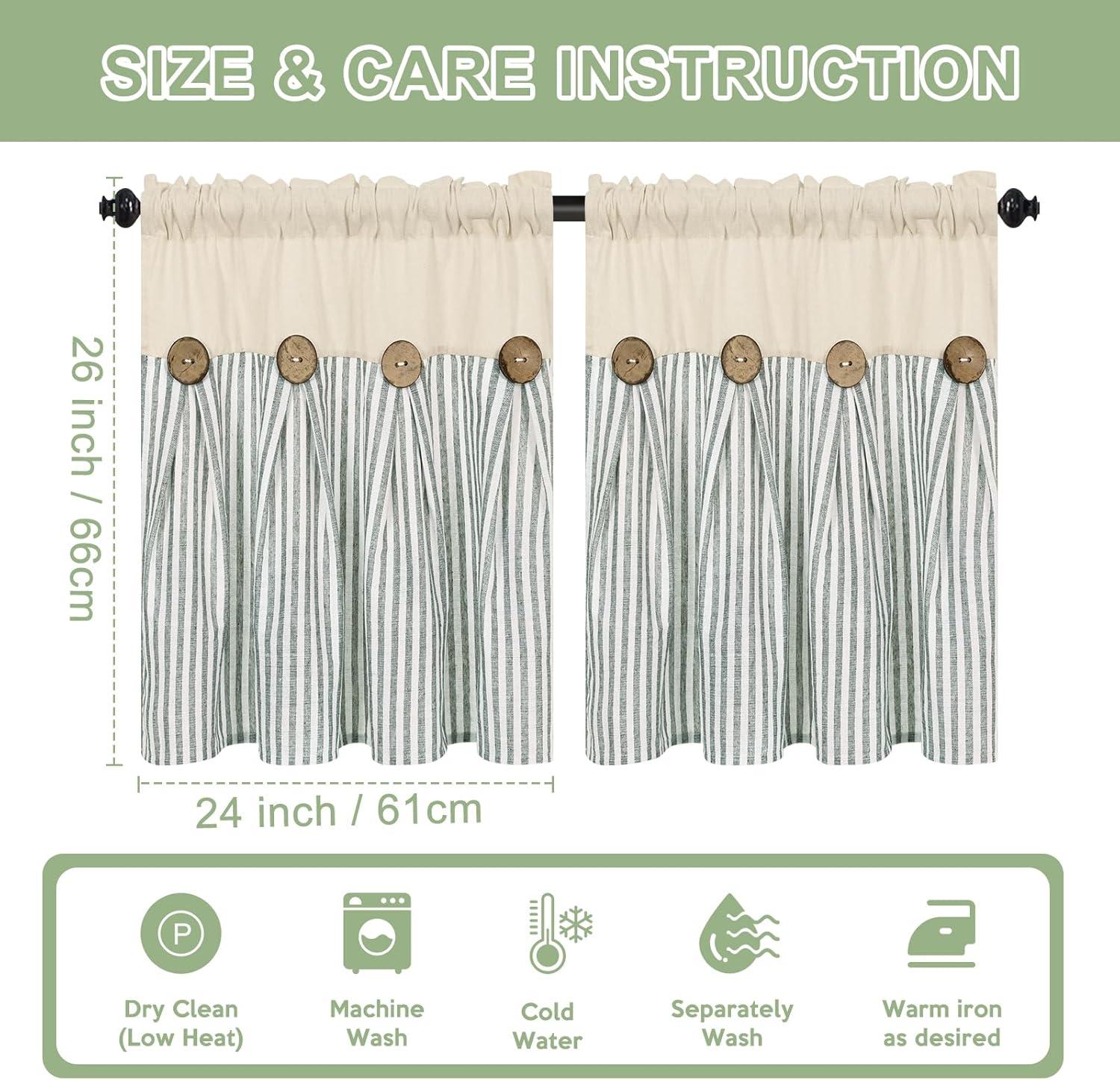 BOHO COTTON LINE CURTAINS: These premium farmhouse curtains are crafted from natural cotton linen fabric. Each boho curtain pannel has 8 exquisite brown decorative buttons. These green stripe line curtains create a neutral style and add a classic look to your home