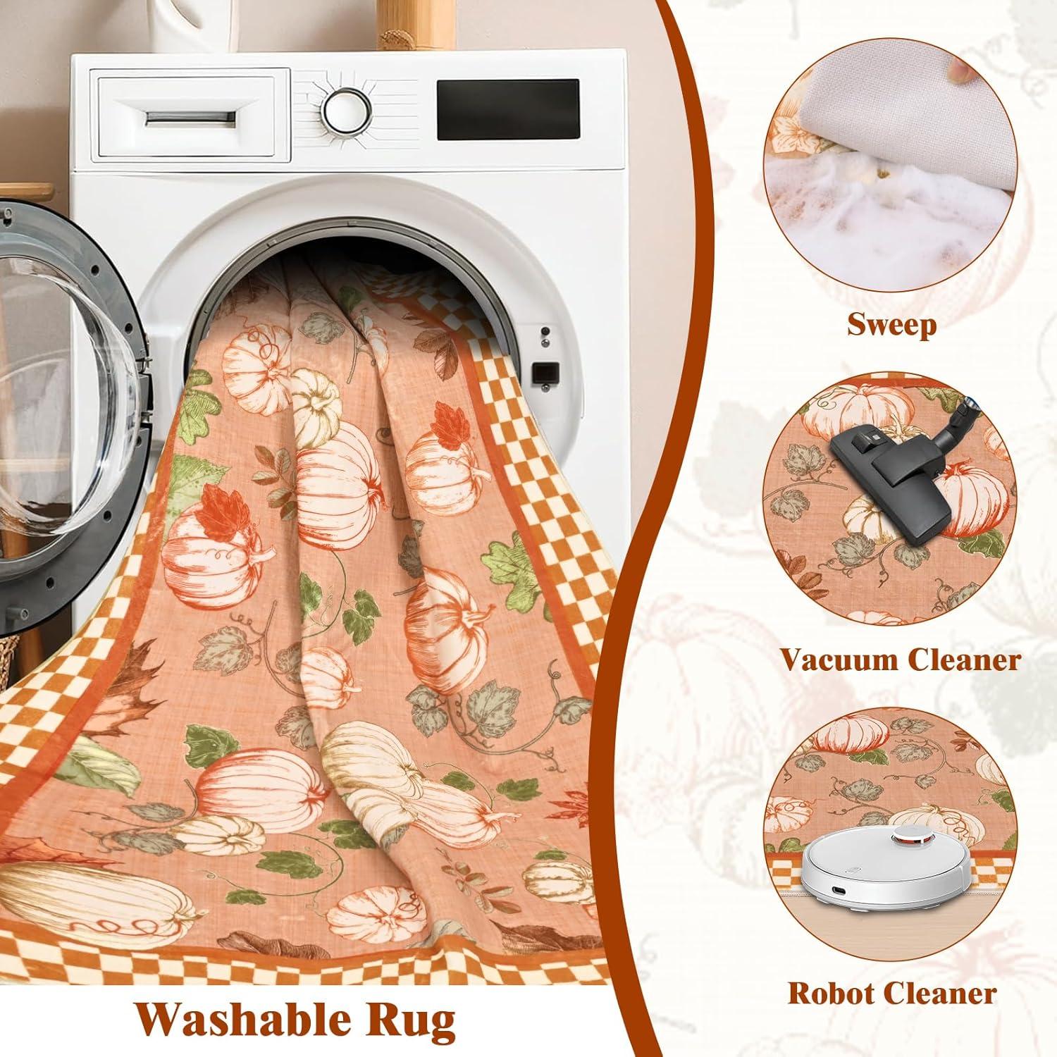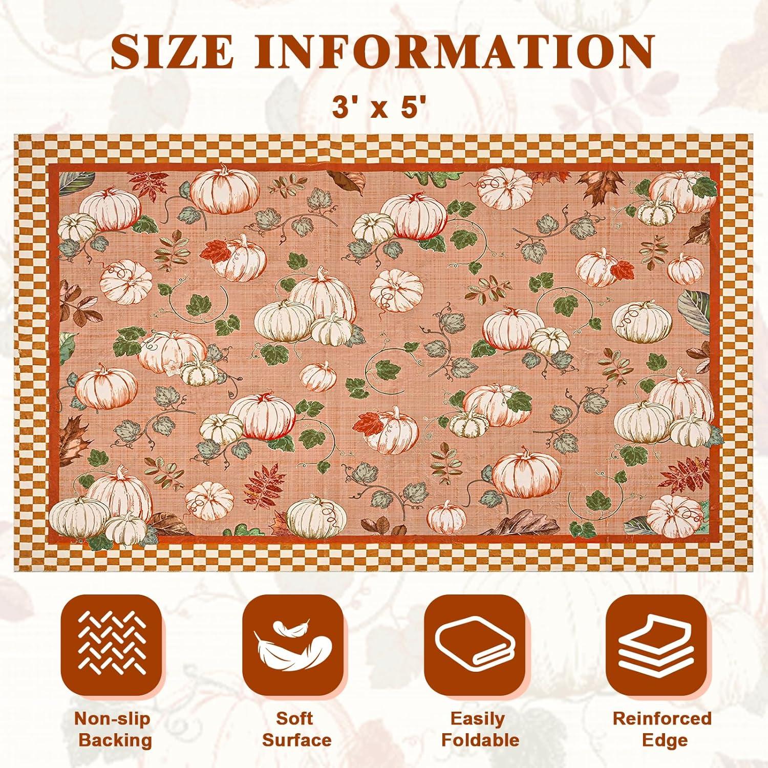 Non Slip Backing: This 3×5 rug's backing is made from high-quality TPE material, which keeps it securely in place on any type of floor. The strong grip of our Thanksgiving rugs effectively prevents slips and falls