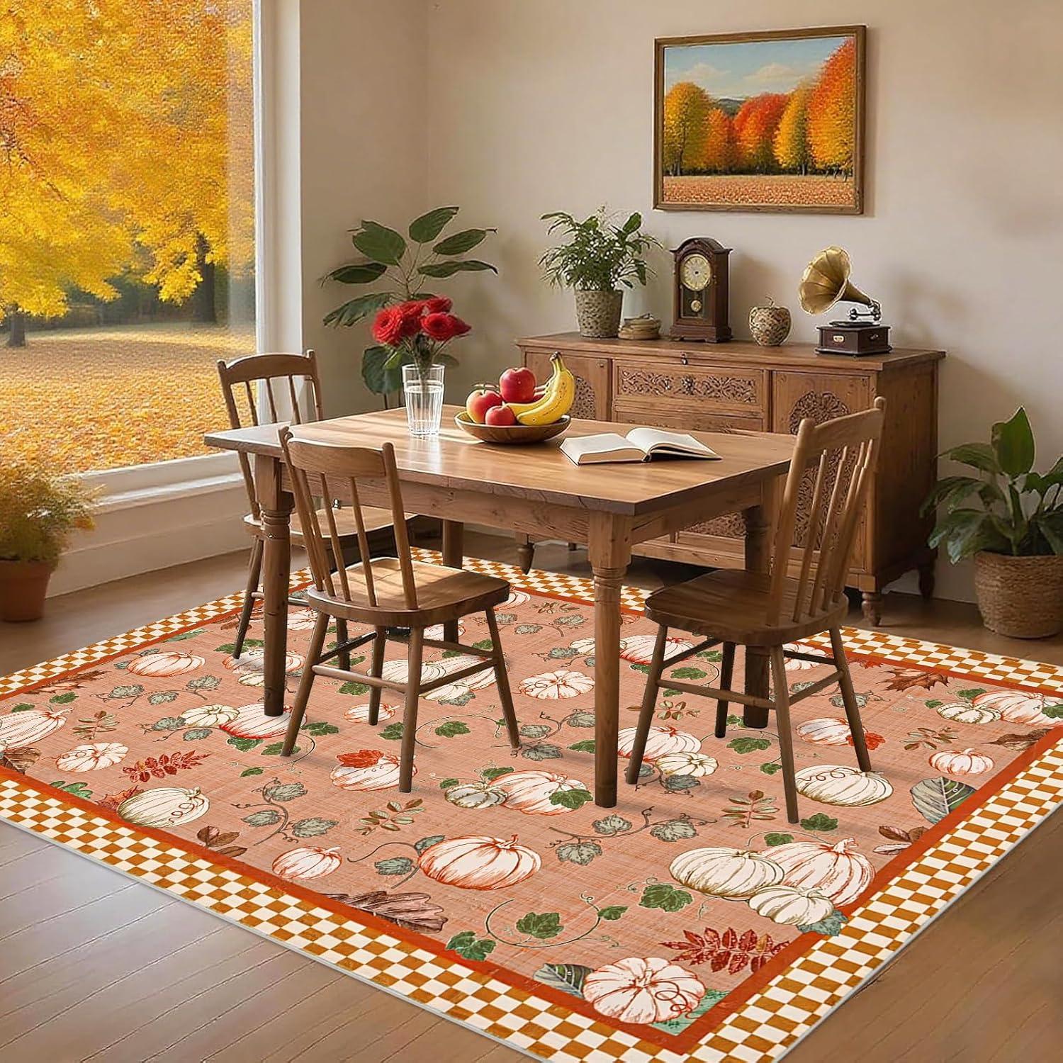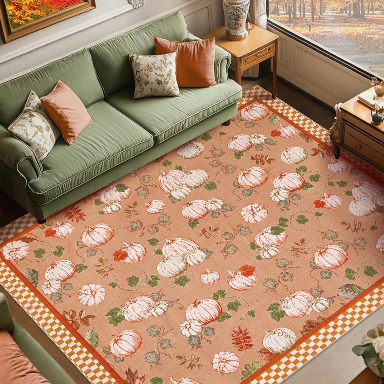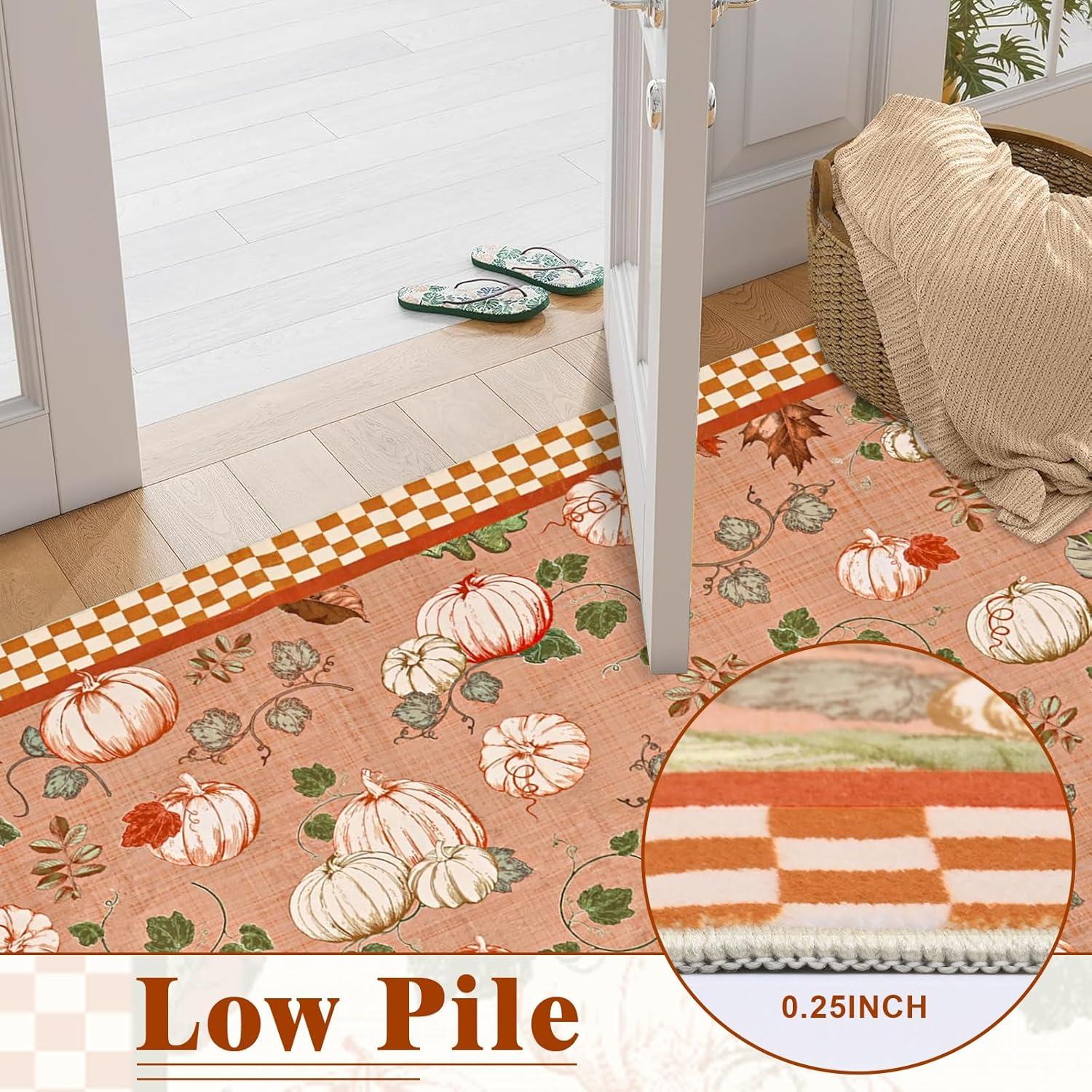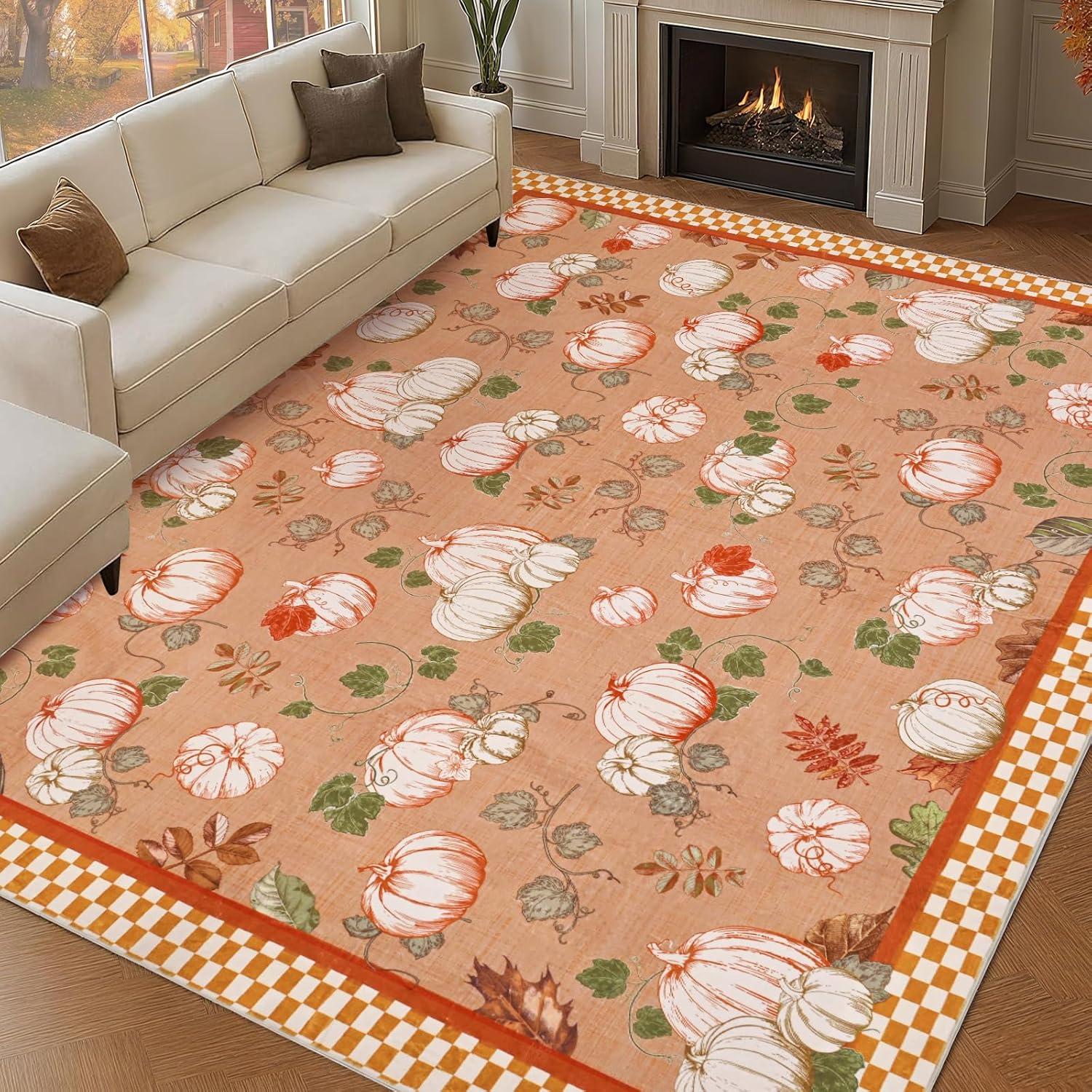 Low Pile Design: With a 0.25-inch low pile, this fall rug for living room fits easily in entryways or under furniture. The durable pile resists shedding and won't trap crumbs or hair, making it safe for kids and pets