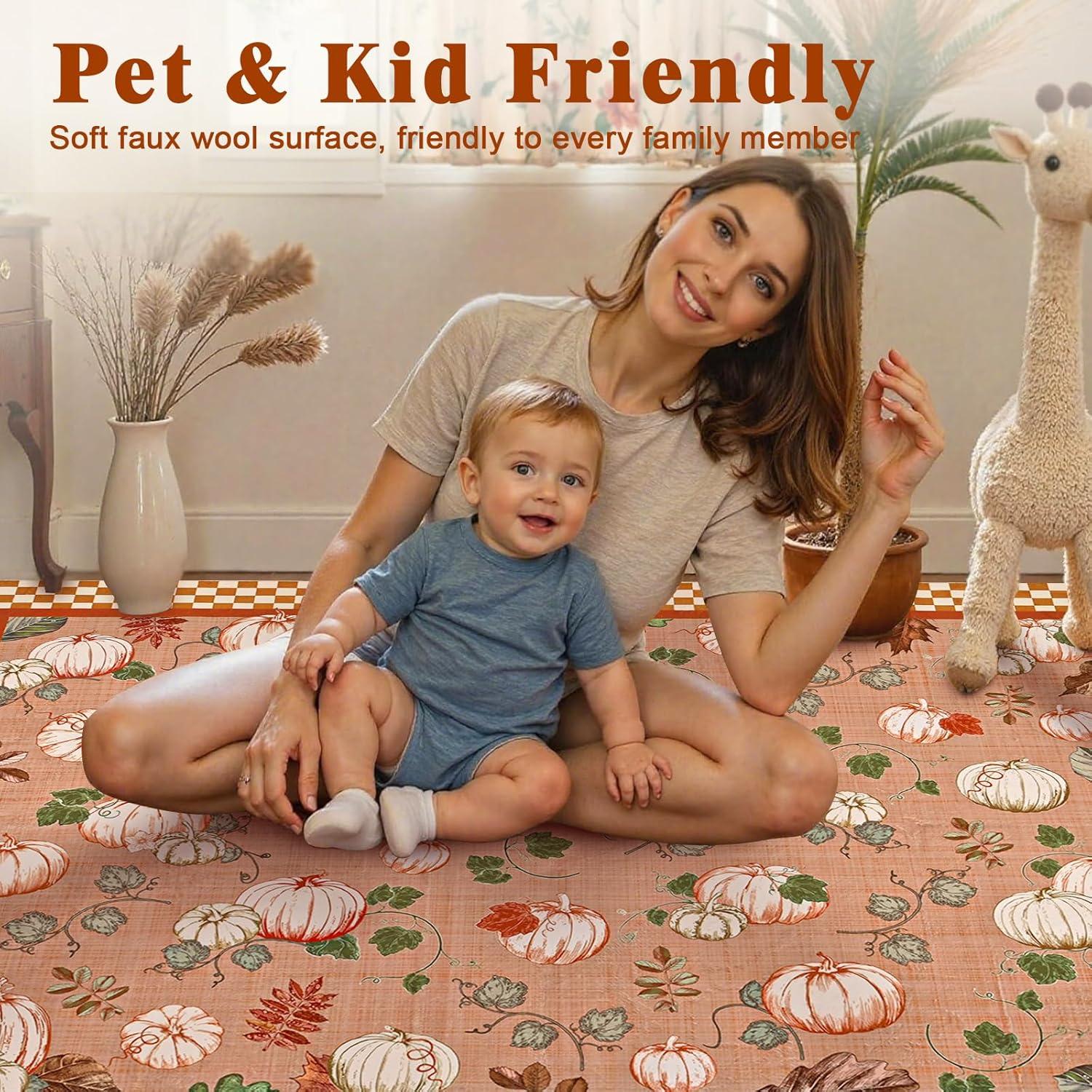 Soft Faux Wool Material: Crafted from premium faux wool, the surface of our fall plaid rug for bedroom is super soft and skin-friendly—ideal for kids to play on, pets to lounge, and everyone to enjoy cozy comfort