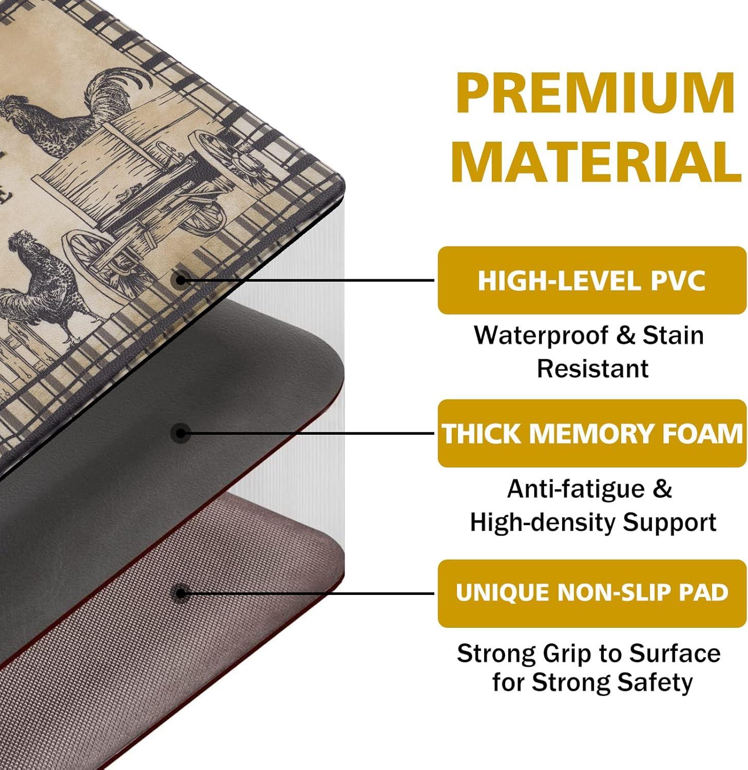 imageASPMIZ Farmhouse Kitchen Mat 3 Piece Cushioned AntiFatigue Kitchen Rugs Non Slip Memory Foam Kitchen Mats and Rugs Waterproof Kitchen Floor Comfort Mats Rooster 18quot x 30quot  18 x 48  18 x 60
