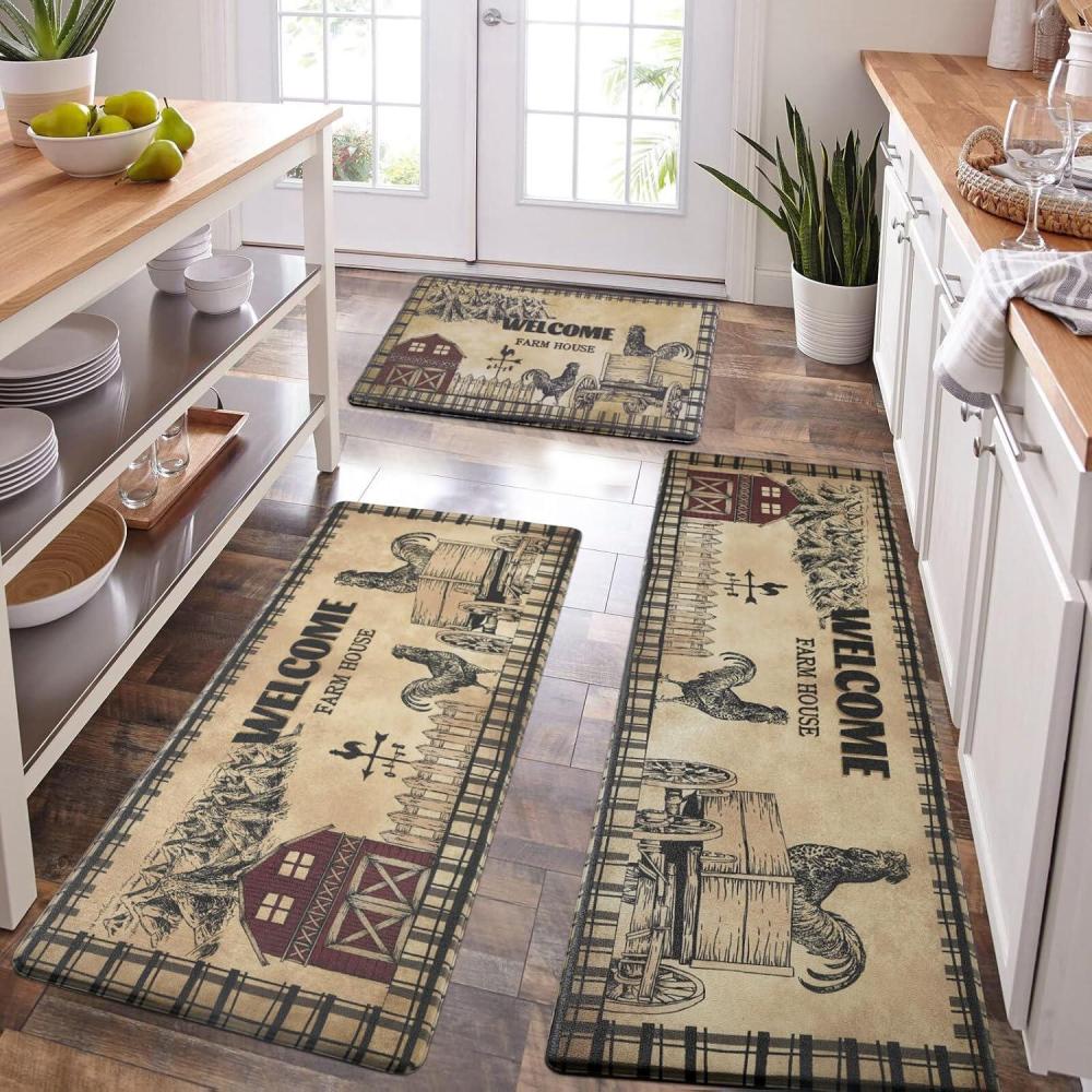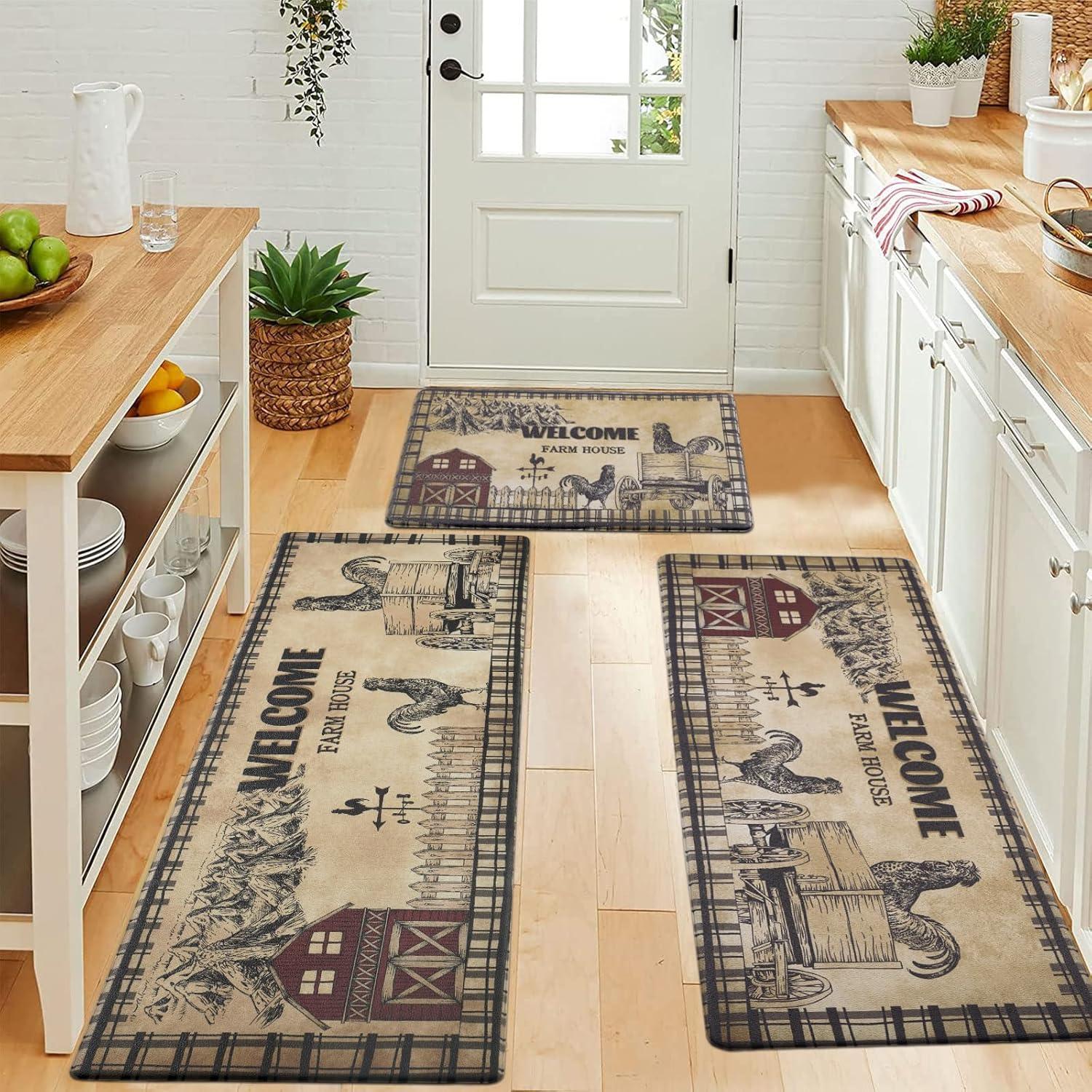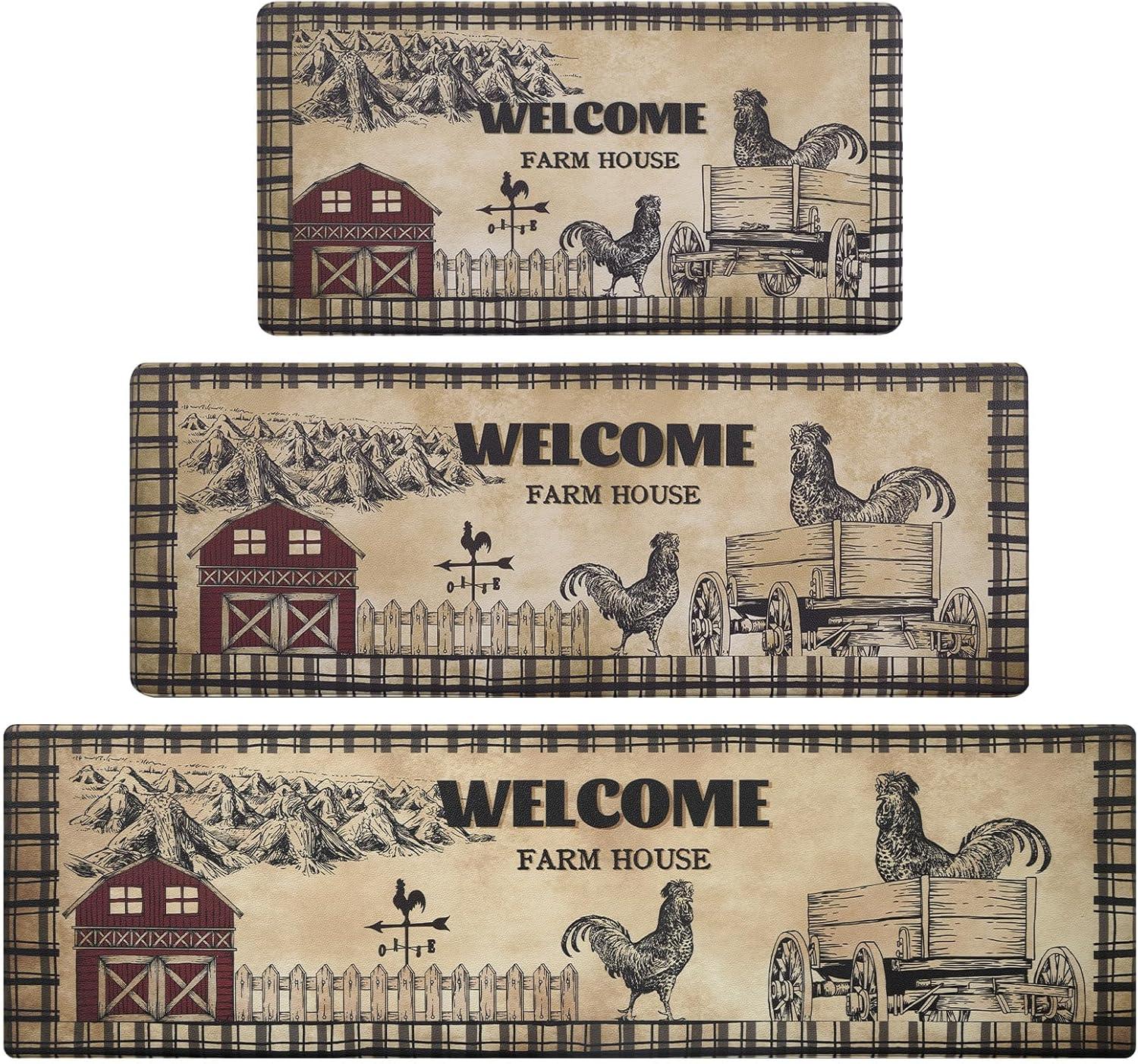 ASPMIZ Farmhouse Kitchen Mat 3 Piece, Cushioned Anti-Fatigue Kitchen Rugs Non Slip Memory Foam Kitchen Mats and Rugs Waterproof Kitchen Floor Comfort Mats Rooster 18" x 30" + 18'' x 48'' + 18'' x 60''