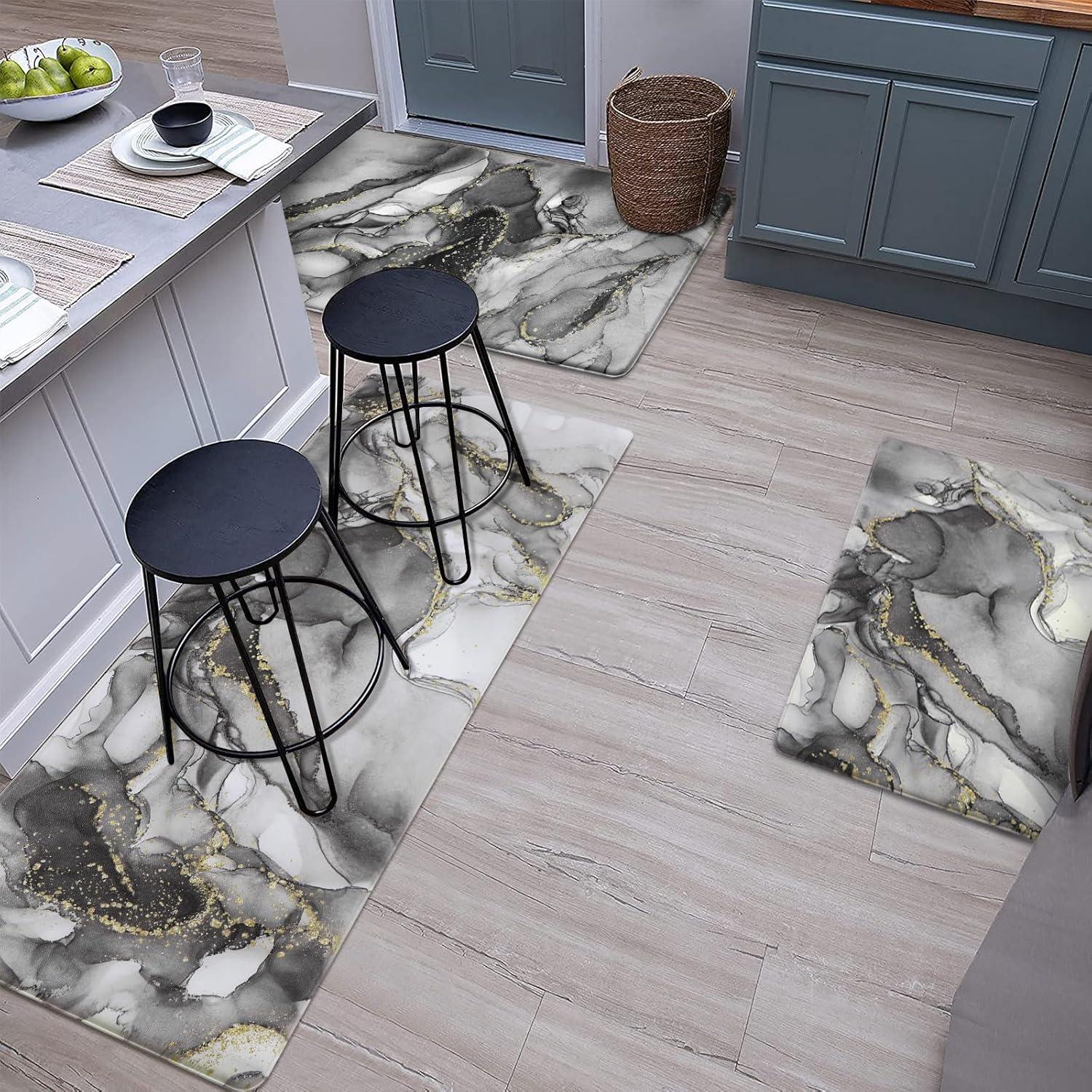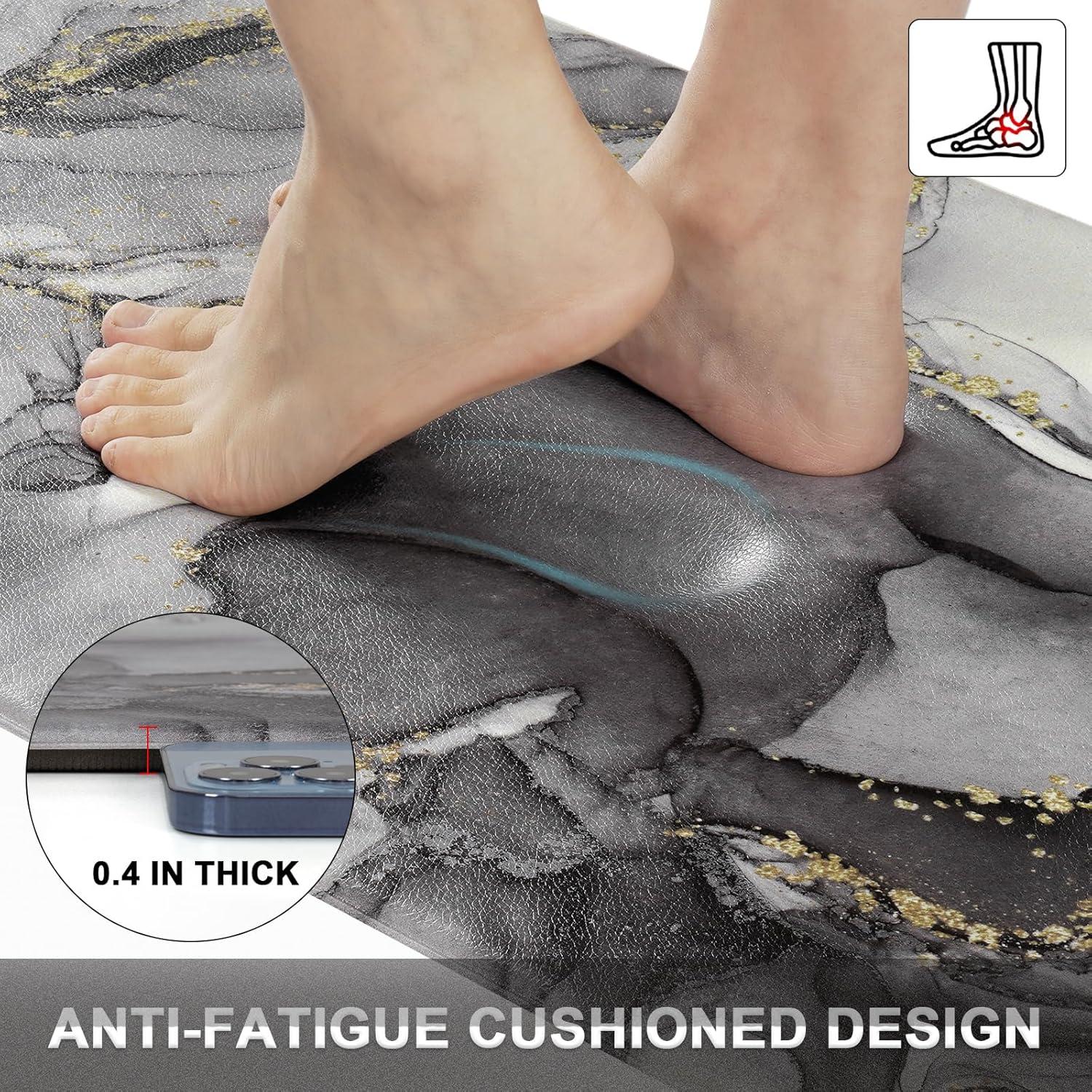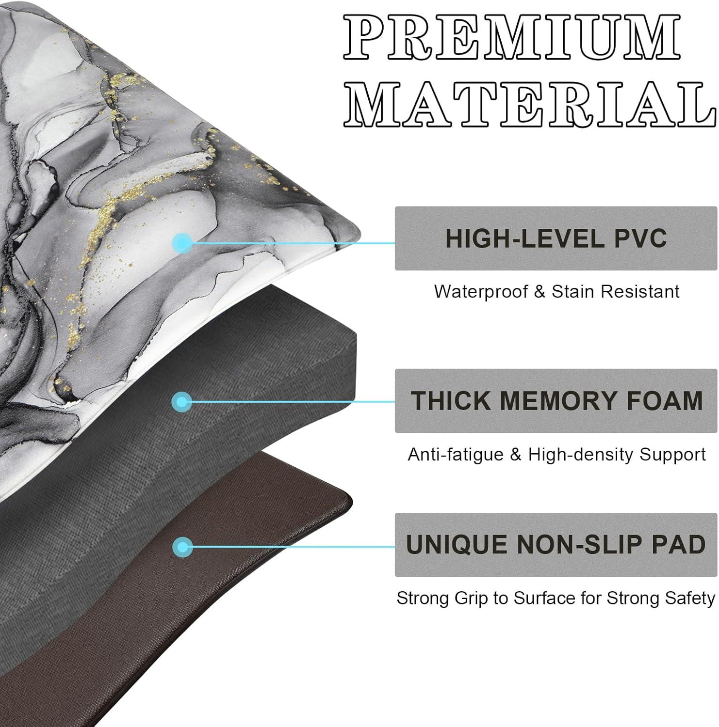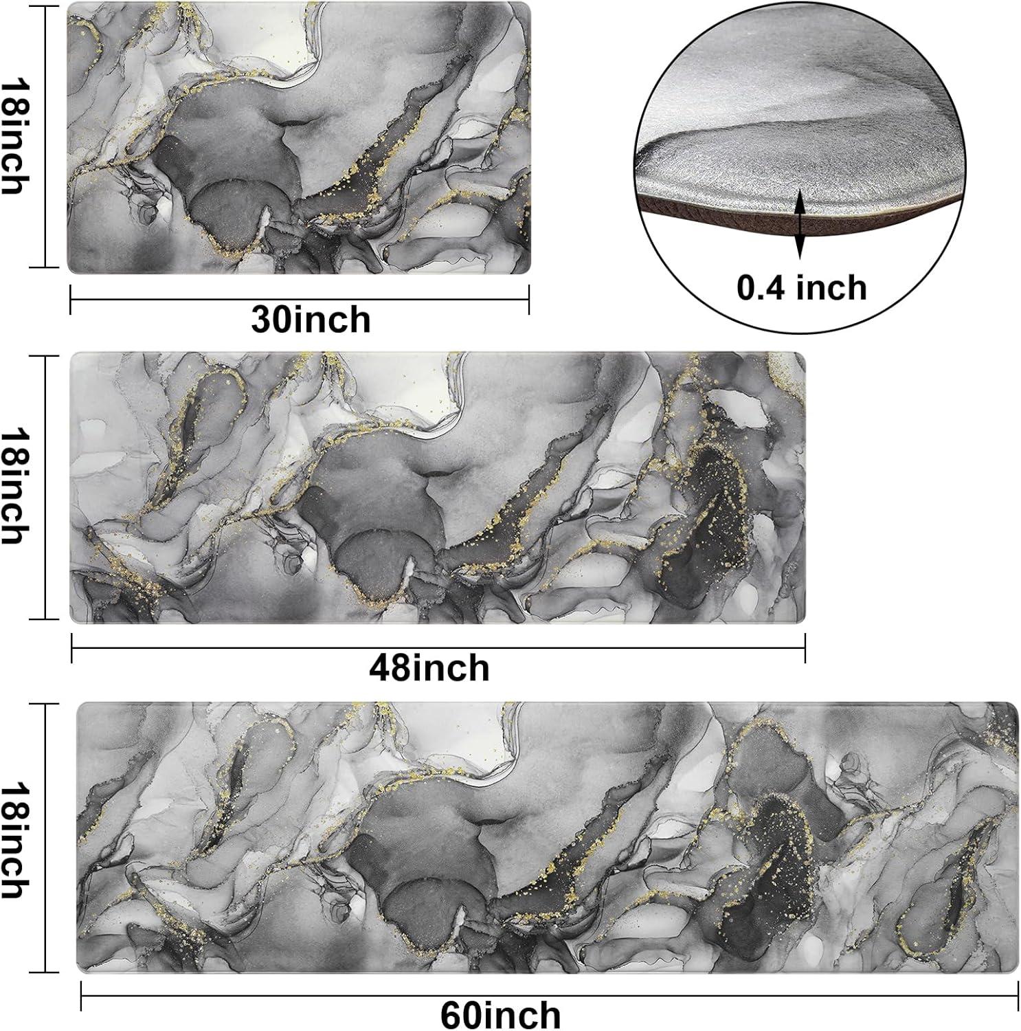 3 Pieces Set: Compared to regular kitchen floor mats, we have upgraded the size and thickness. Modern marble kitchen mats cushioned anti fatigue sizes is 60'' x 18'' + 48'' x 18'' + 30'' x 18'', with thicknesses of 0.4 inches (10 mm), bringing beautiful colors to your kitchen and bringing more joy and comfort to your cooking time.