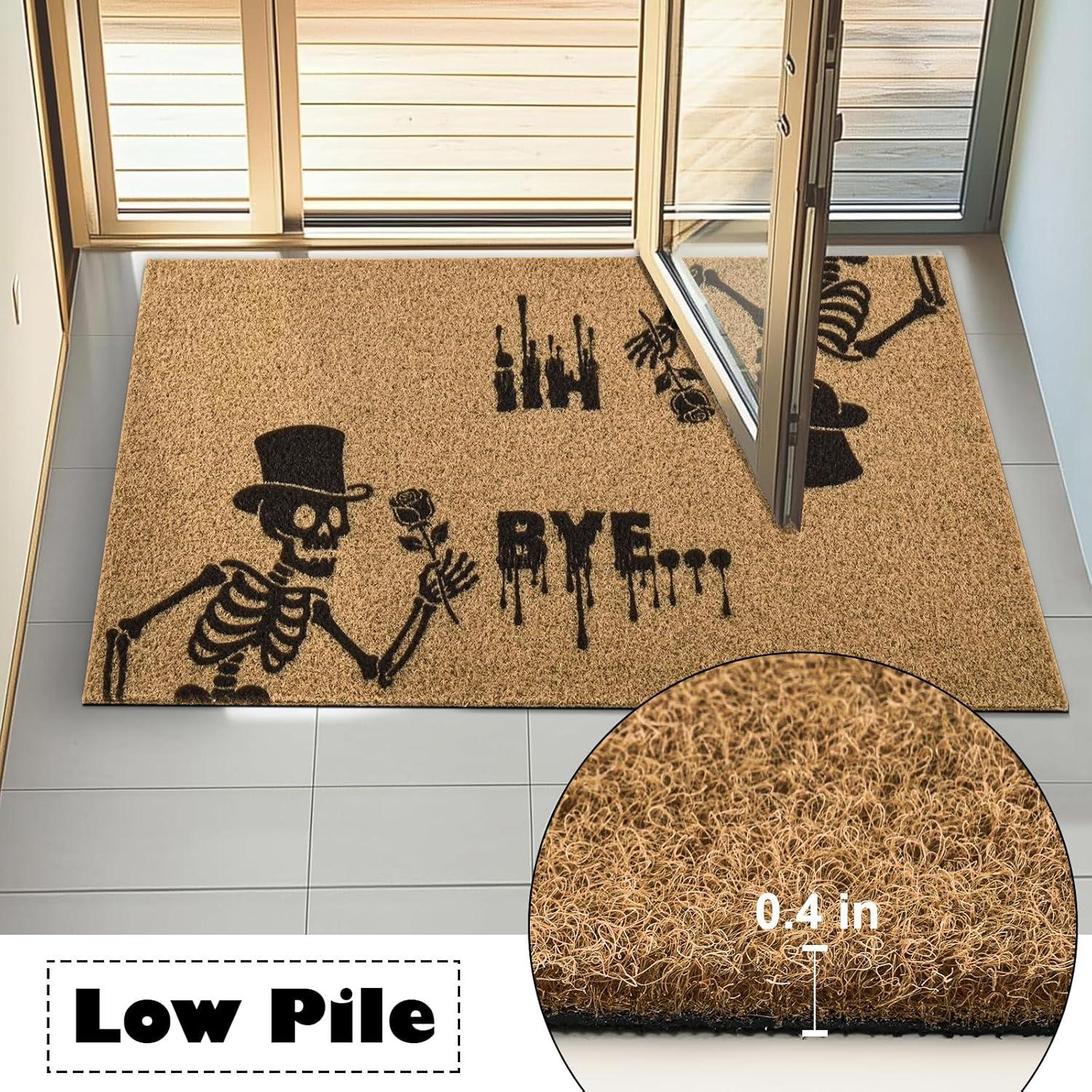 ASPMIZ Halloween Door Mat, Skull Coir Doormat Non Slip, Skeleton Front Door Mat Outside Entrance, Funny Welcome Mats Entryway Rug for Outdoor/Indoor Halloween Decorations, 18″ x 30″(Felt and Rubber)