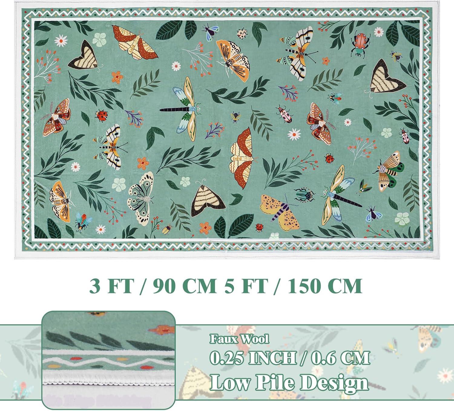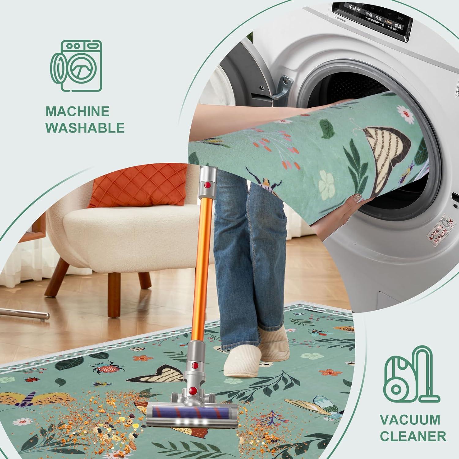 Insect Design: Our insect area rug features a stunning design with a variety of beautiful insects and delicate floral patterns. Every time you look at this bedroom rug, you'll feel like you're stepping into a charming garden, experiencing the beauty and wonder of nature right in your own home