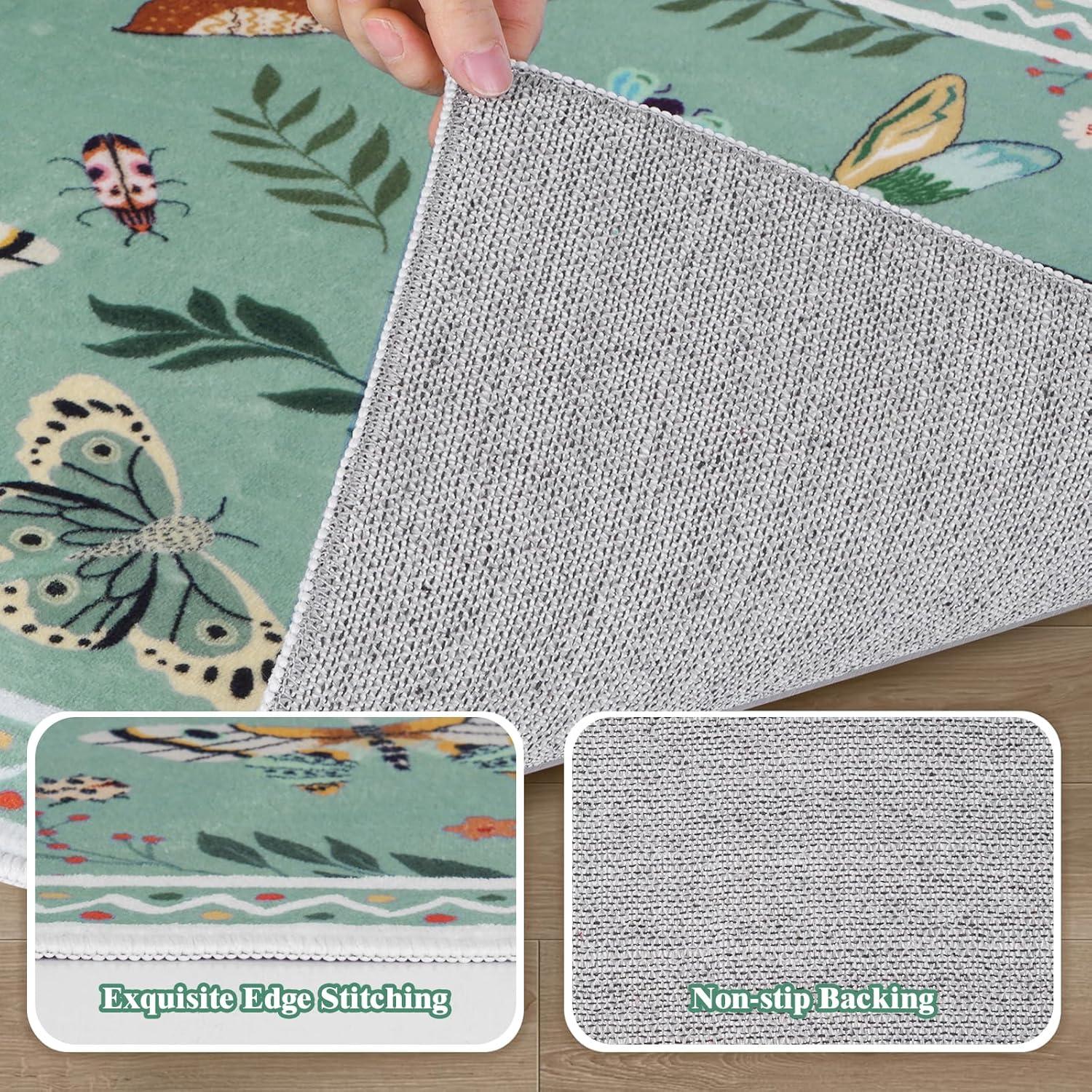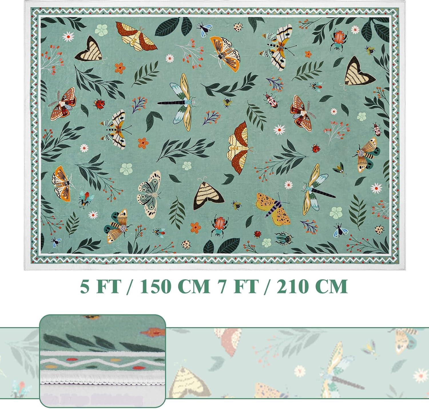 ASPMIZ Insect Area Rug 5X7, Green Bedroom Rug Non Slip, Spring Summer Washable Rug Farmhouse Butterfly Living Room Rugs Low Pile, Soft Faux Wool Throw Carpet for Dining Room Office Nursery, Green