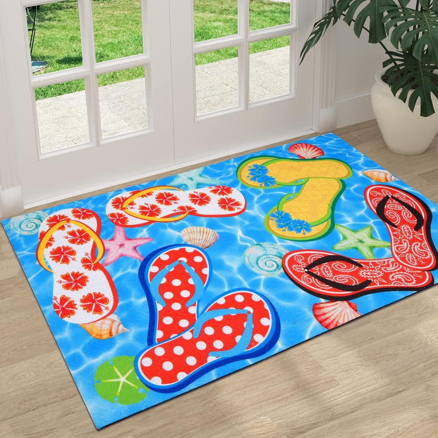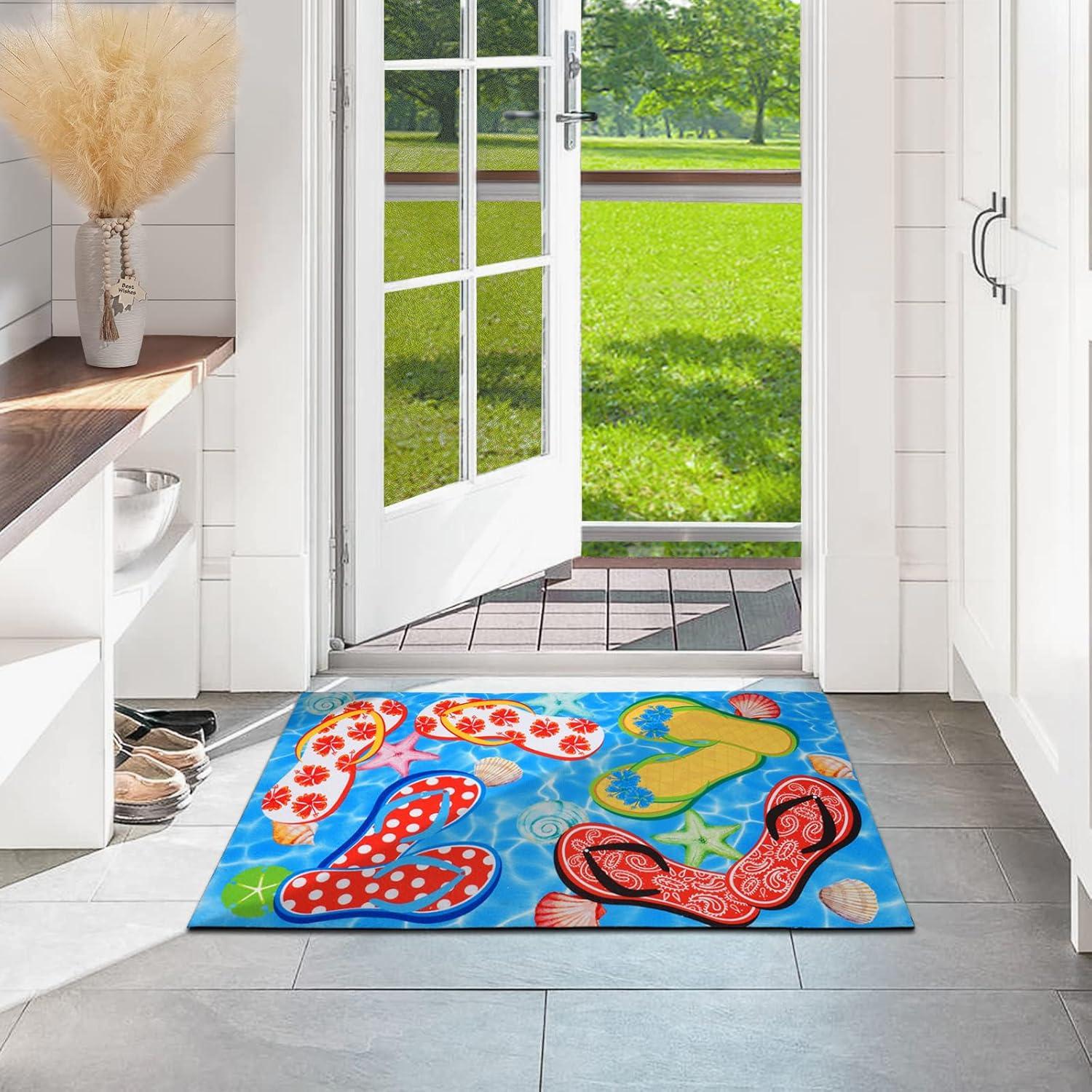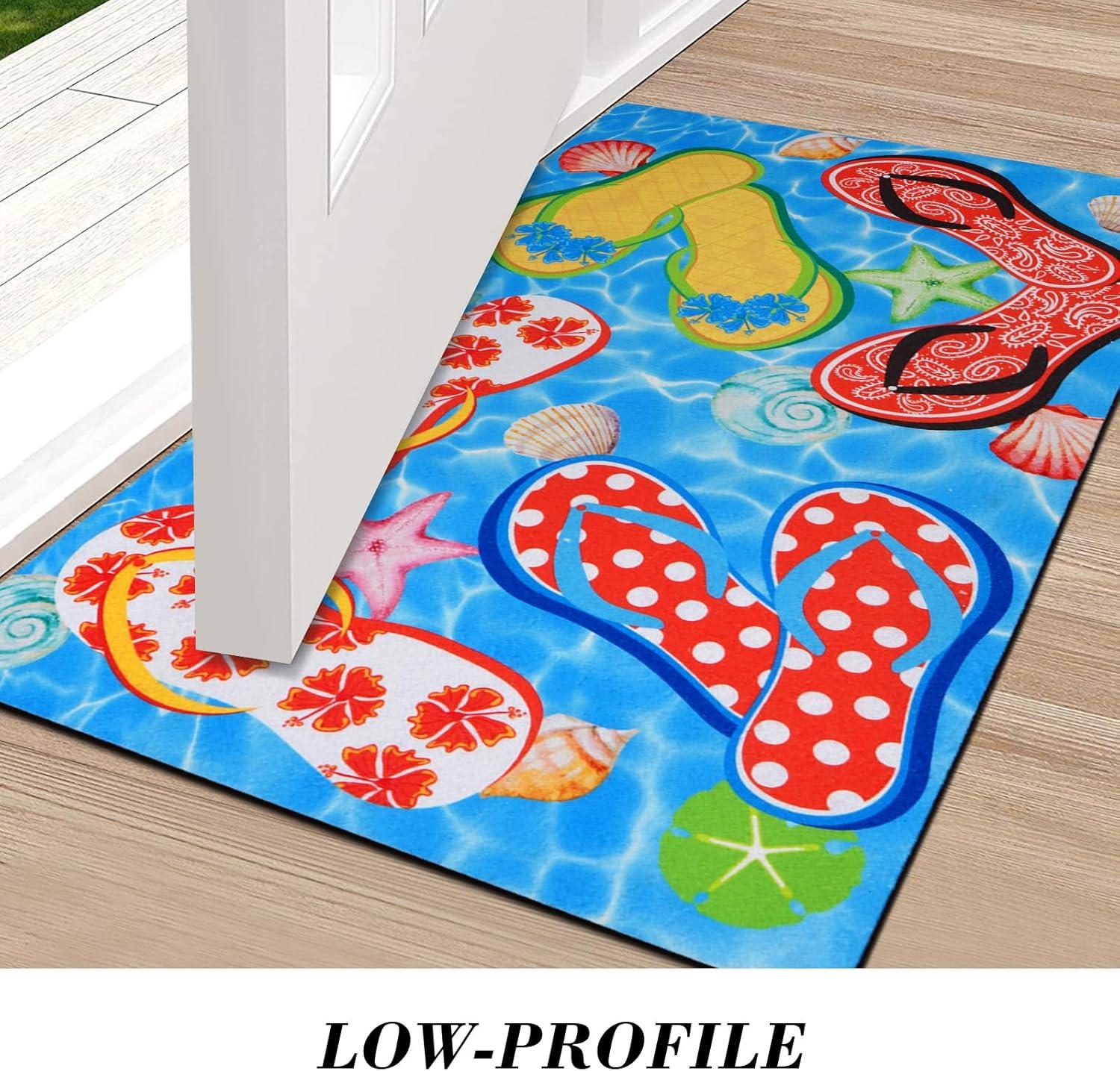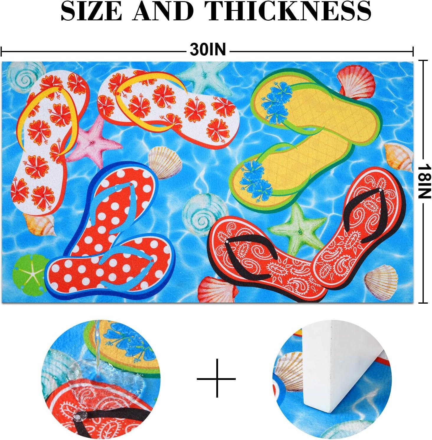 ASPMIZ Summer Flip Flops Door Mat, Beach Outdoor Doormat for Entryway Nautical Indoor Entrance, Non Slip Doormat Rug with Rubber Backing, Absorbent Ocean Areas Mats Outside Patio Home, 18" x 30"
