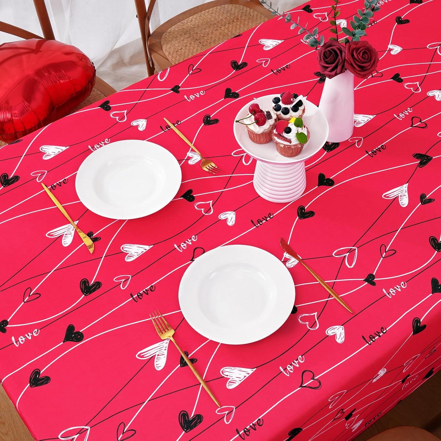 ASPMIZ Valentine's Day Table Cloth Rectangle 60x84 Inch, Red White Vines Love Heart Tablecloth, Polyester Tablecloths Waterproof Spillproof Tablecloth for Valentines Day Wedding Party Decoration