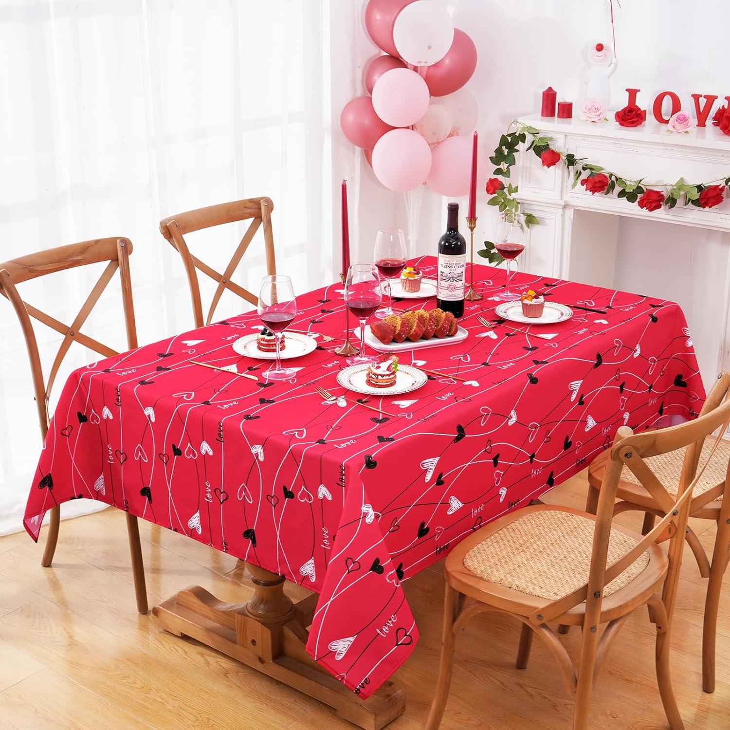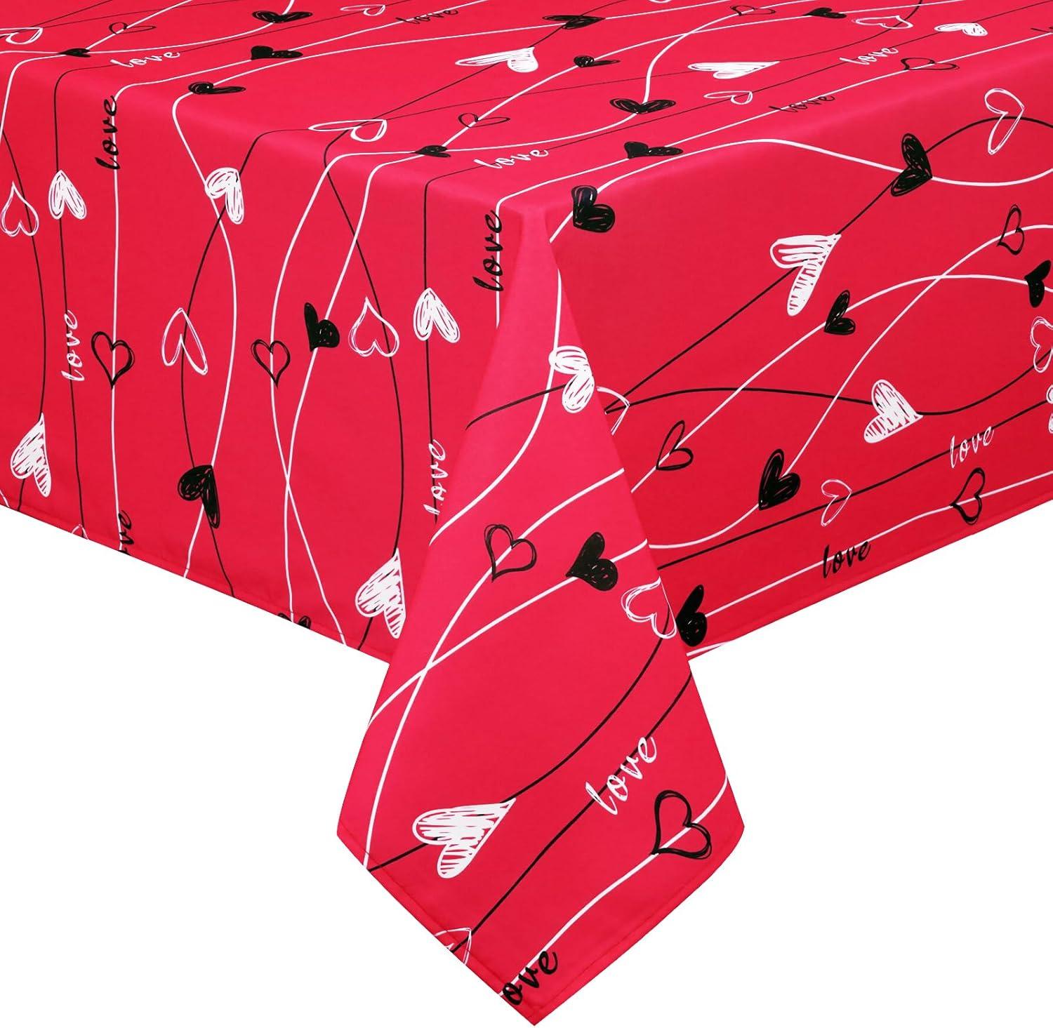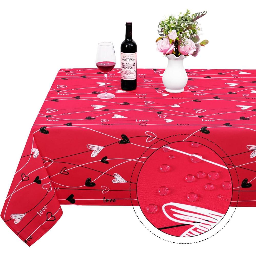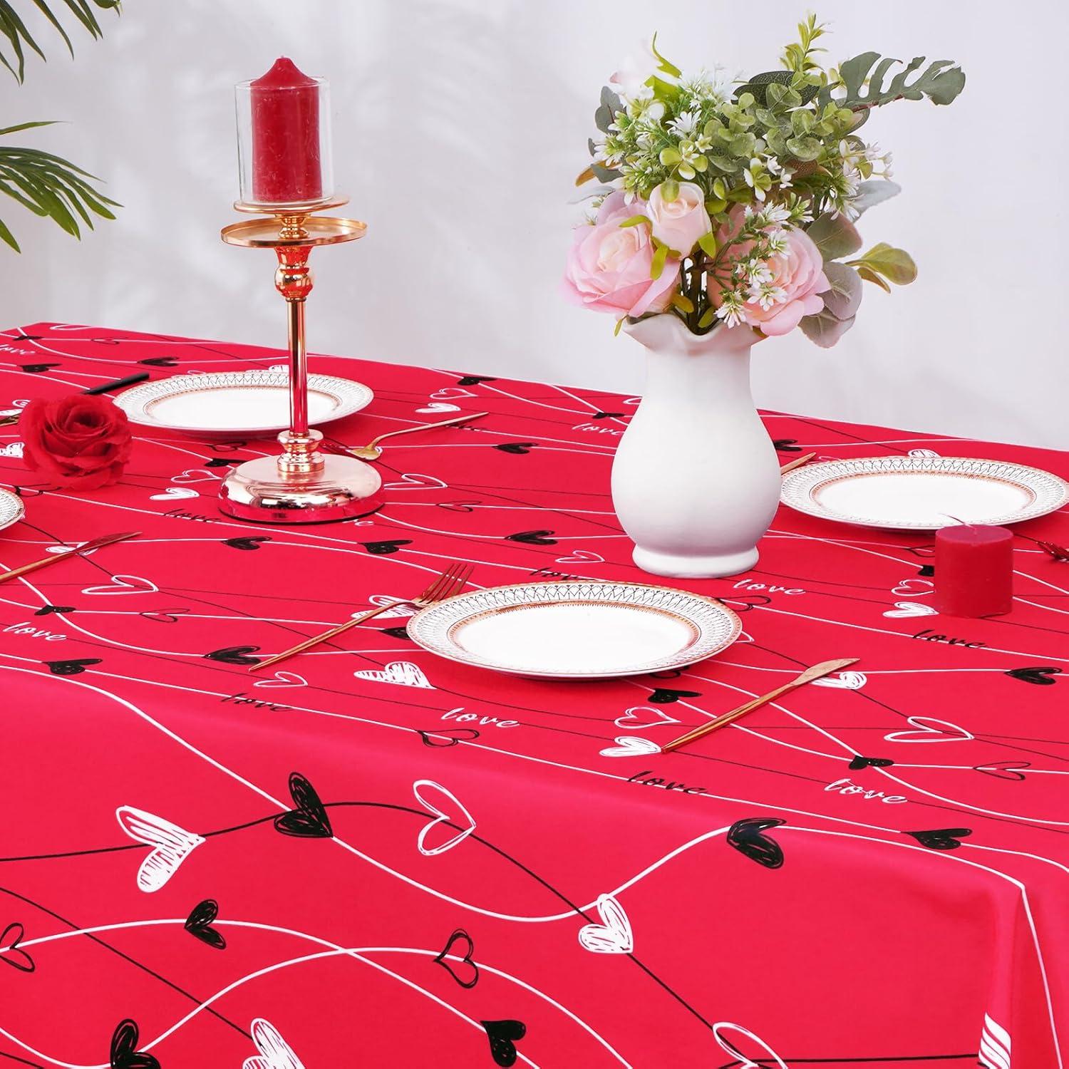 ASPMIZ Valentine’s Day Table Cloth Rectangle 60×84 Inch, Red White Vines Love Heart Tablecloth, Polyester Tablecloths Waterproof Spillproof Tablecloth for Valentines Day Wedding Party Decoration