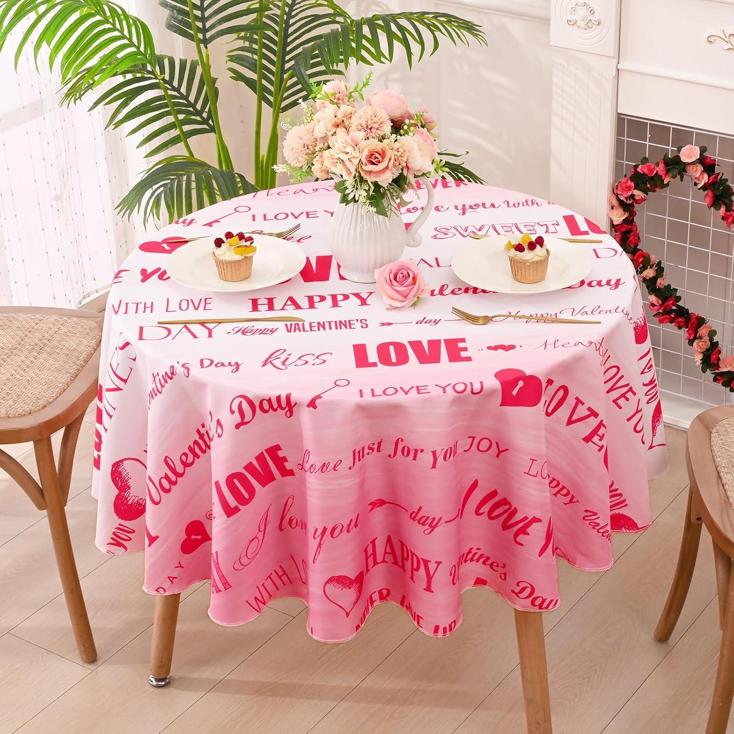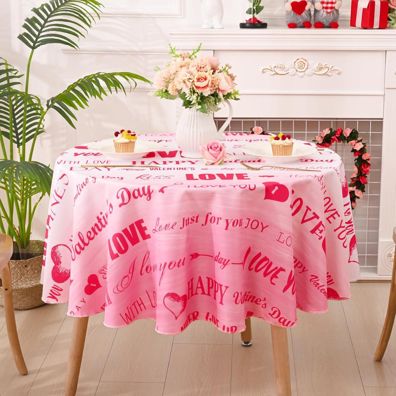 Valentine's Day Gift: Add flair to your home decor with the classic pink love themed valentines round tablecloths. Perfect as a romantic anniversary or as a gift for friends and family