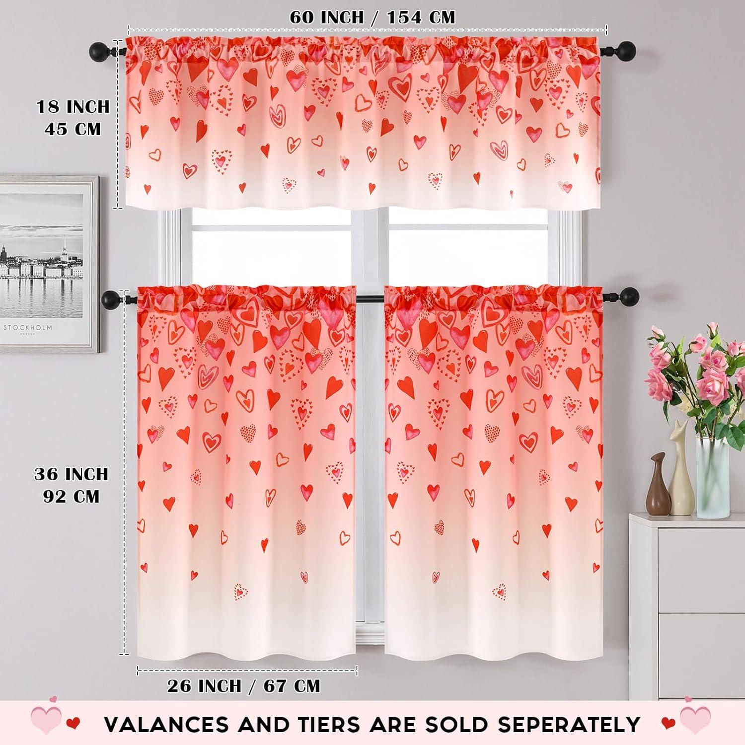 Versatile Use: Valentines day curtains provides moderate light control, creating a cozy and romantic atmosphere, perfect for Valentines evenings. Suitable for kitchen, bedroom and anywhere you want to decorate