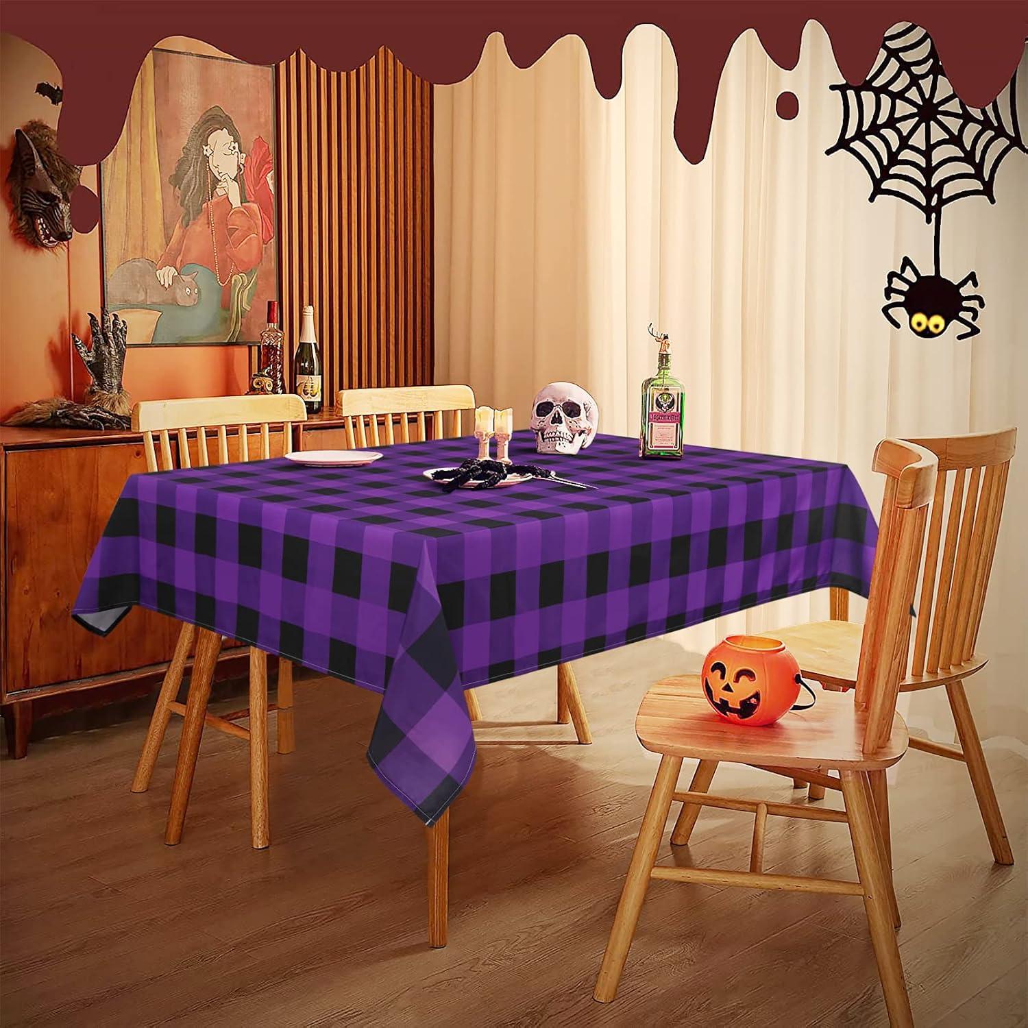 ESSENTIALS FOR HALLOWEEN: The pattern of this Halloween tablecloth is composed of purple and black plaid checkered, and this classical Halloween element is an indispensable decoration in your home, filling your table with a Halloween atmosphere.