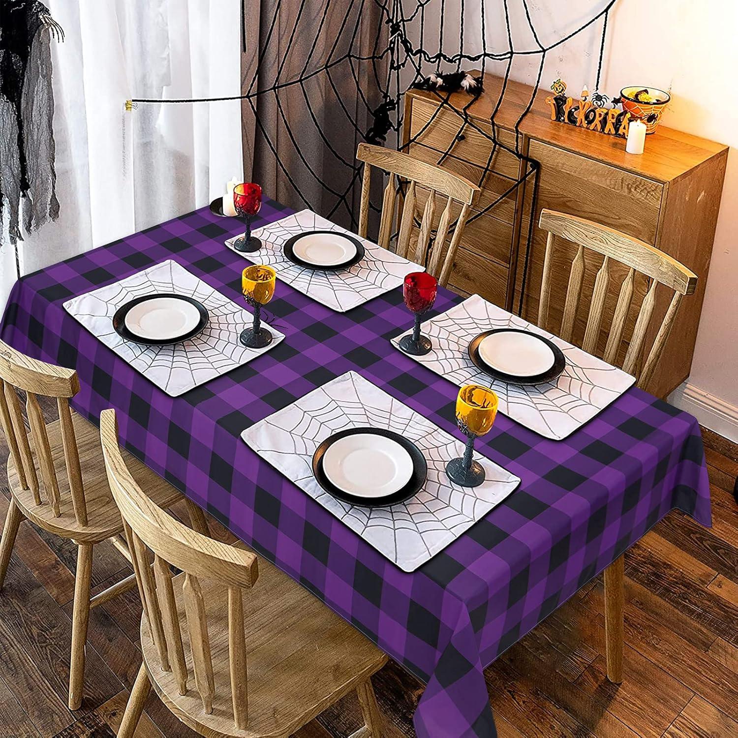 EASY TO CARE: This purple plaid Halloween table cloth is made of machine-washable fabric which can be cleaned easily. At the same time, the waterproof function of the Halloween tablecloth can make it stay away from the daily water stain.