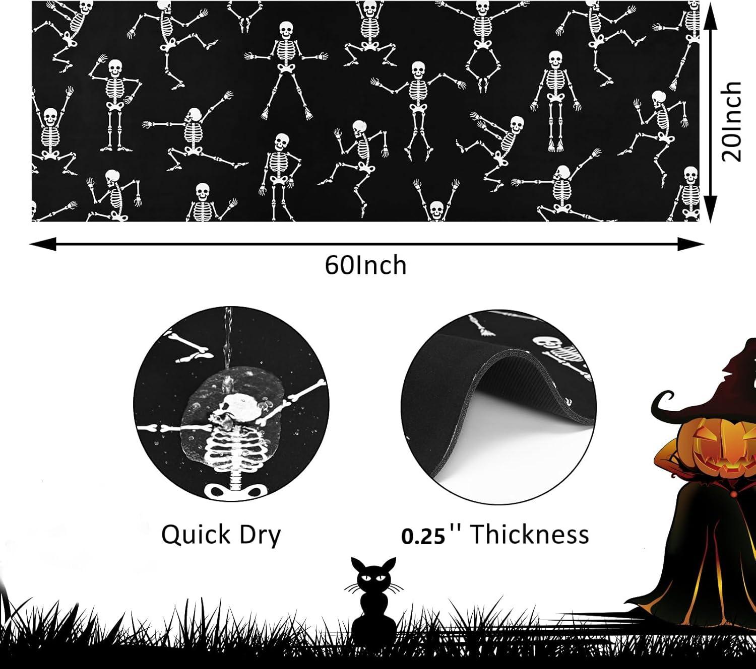 HALLOWEEN DECOR NONSLIP DESIGN: The happy Halloween runner rug is made of premium material. The laundry rug has absorbent cotton Imitation velvet surface and non-slip rubber backing. Besides, the upgraded material of laundry floor mat will not bring pungent odors when in use.