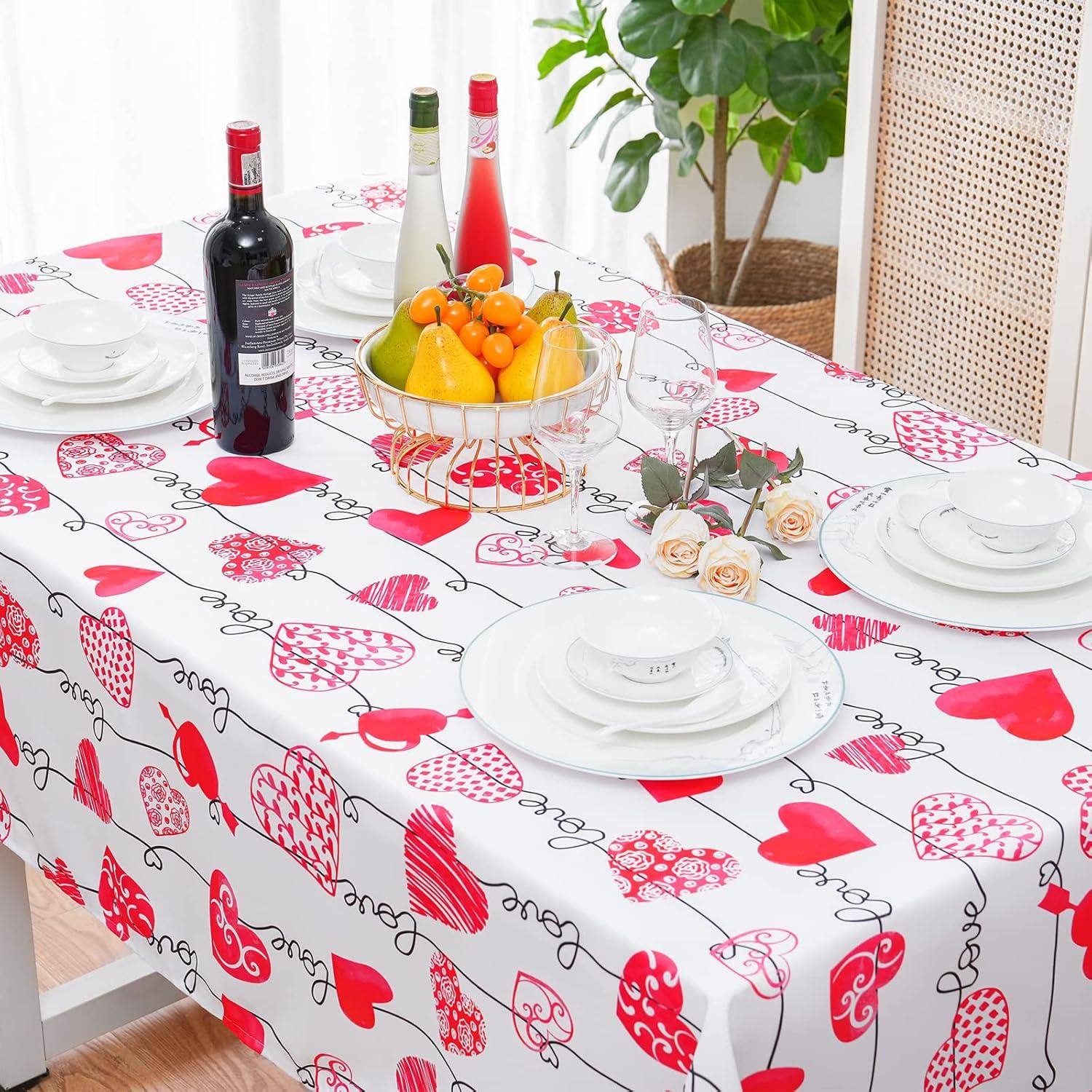 HIGH QUALITY MATERIAL: The pink and red heart table cloth is made of soft polyester, which is waterproof, stain-resistant and spill-proof. Our Valentine’s Day tablecloth can be quickly wiped clean with a wet cloth, has no strange smell and is durable, giving you a comfortable feeling at any time.