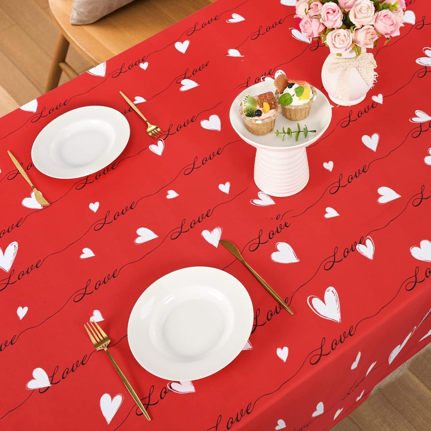 HIGH QUALITY MATERIAL: The red heart table cloth is made of soft polyester, which is waterproof, stain-resistant and spill-proof. Our red Valentine’s Day tablecloth can be quickly wiped clean with a wet cloth, has no strange smell and is durable, giving you a comfortable feeling at any time.